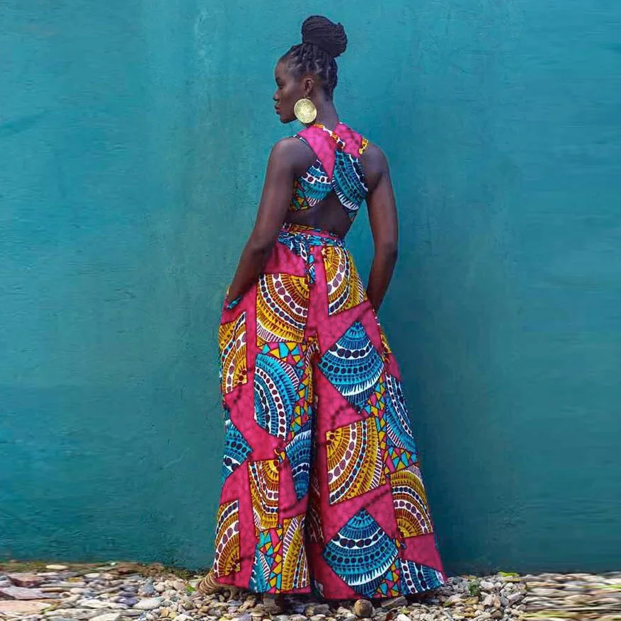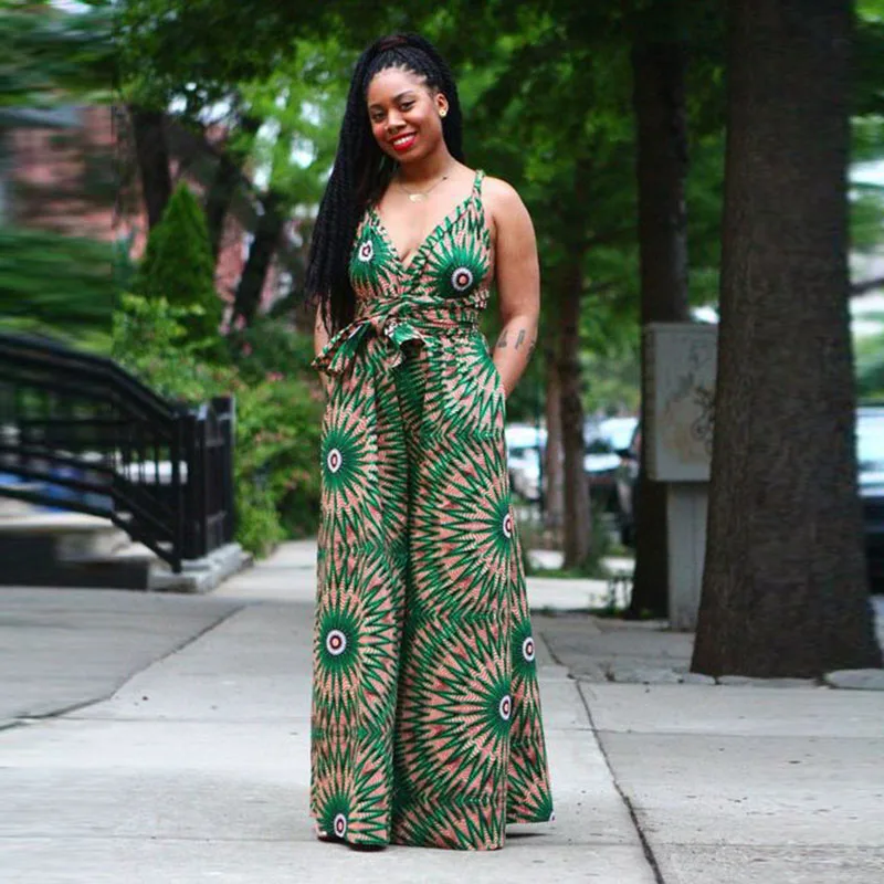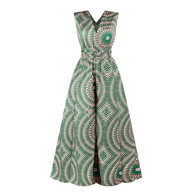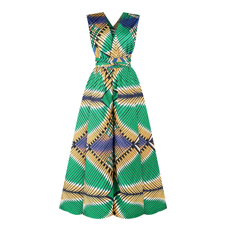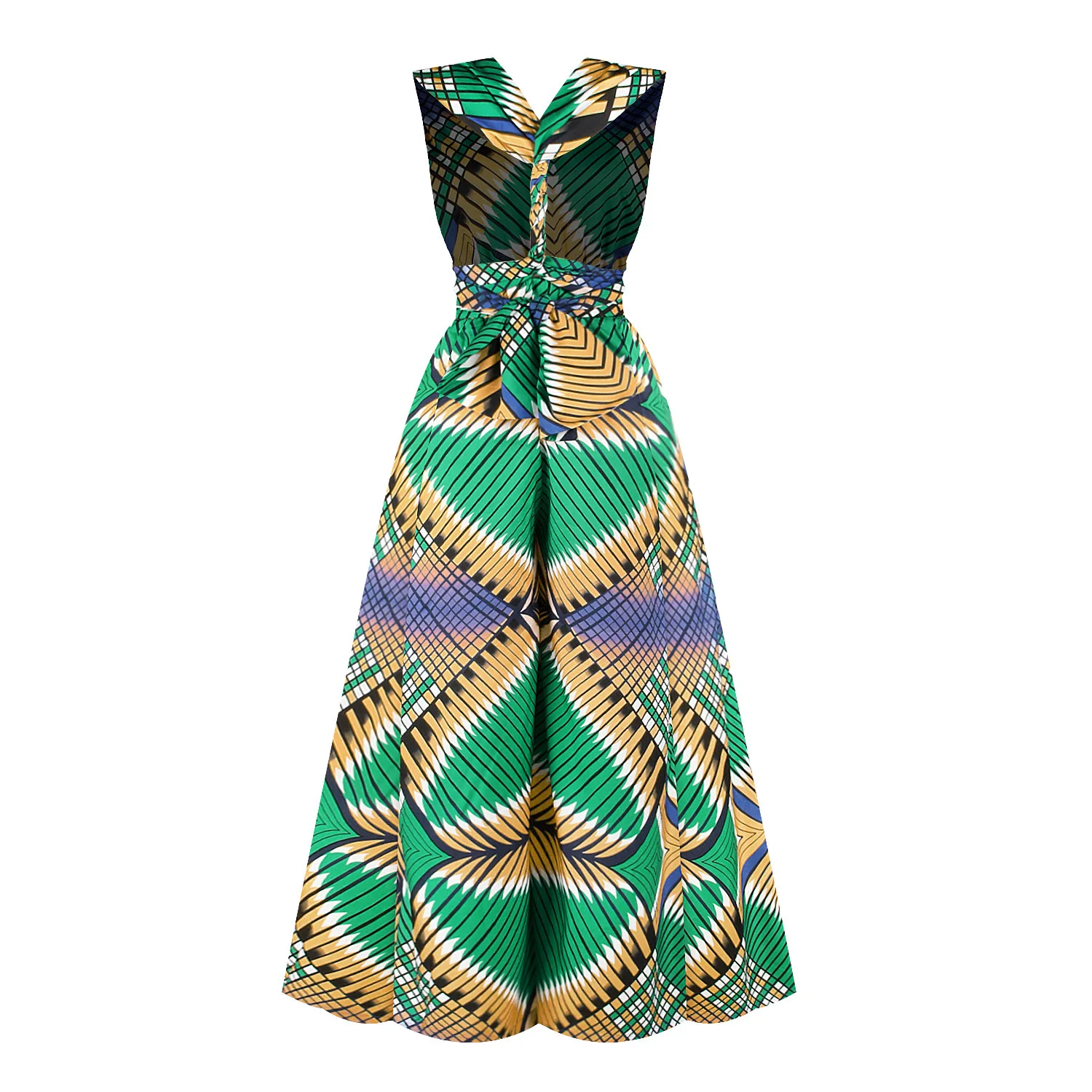 Fashion Wide-Leg Women Jumpsuit New Elegant Sexy V Neck Sleeveless Lady Party Playsuits Vintage National Print Loose Rompers