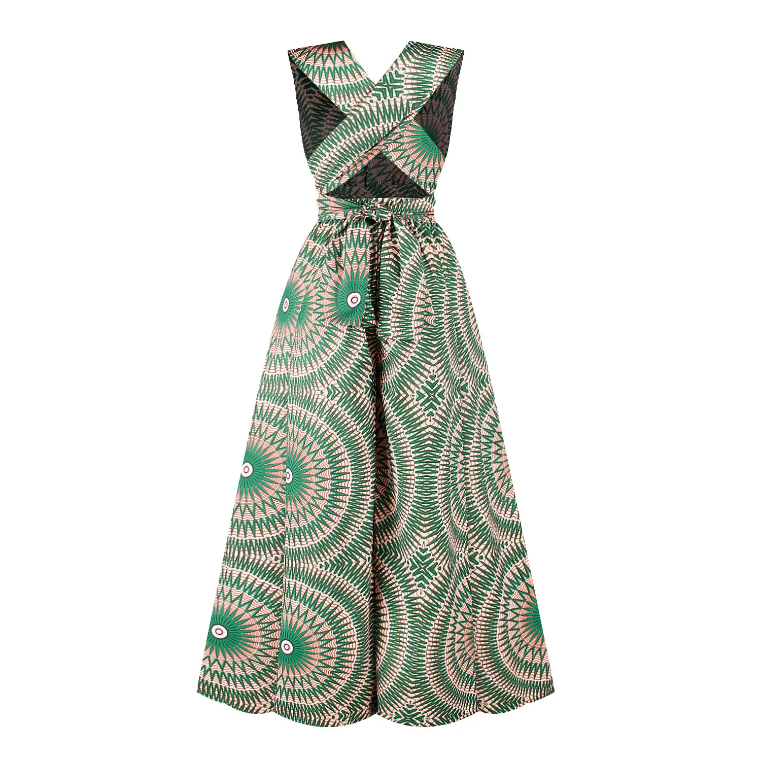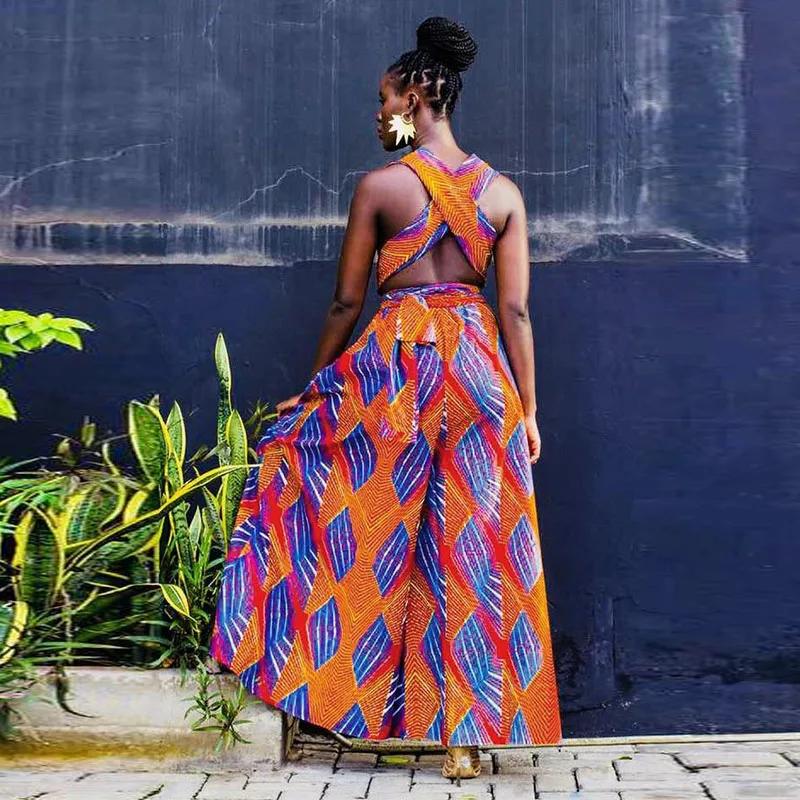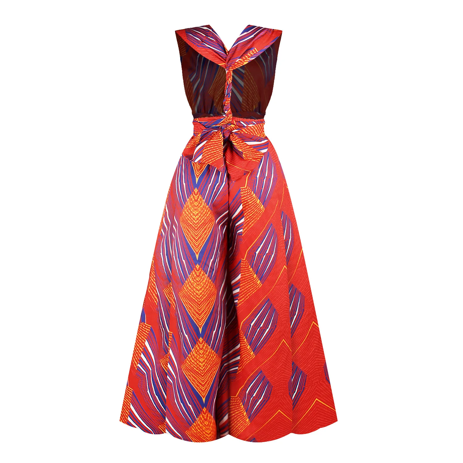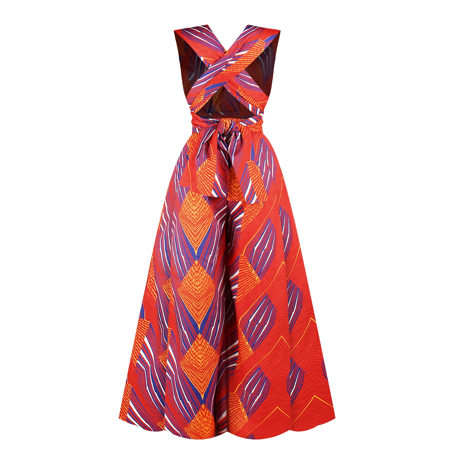 Fashion Wide-Leg Women Jumpsuit New Elegant Sexy V Neck Sleeveless Lady Party Playsuits Vintage National Print Loose Rompers