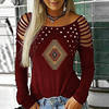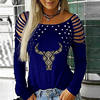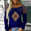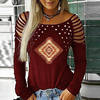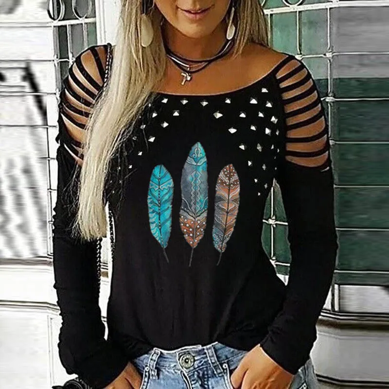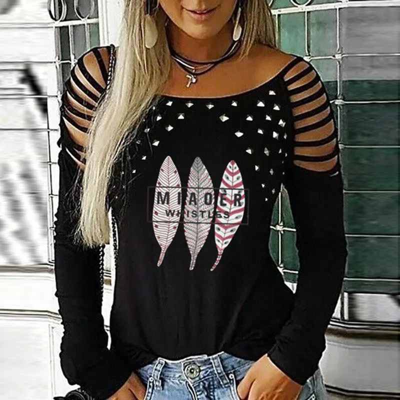 Fashion Women Blouse Spring O-neck Off Shoulder Long-sleeved Ladies Office Shirts Vintage Printed Casual Loose Pullover Tops