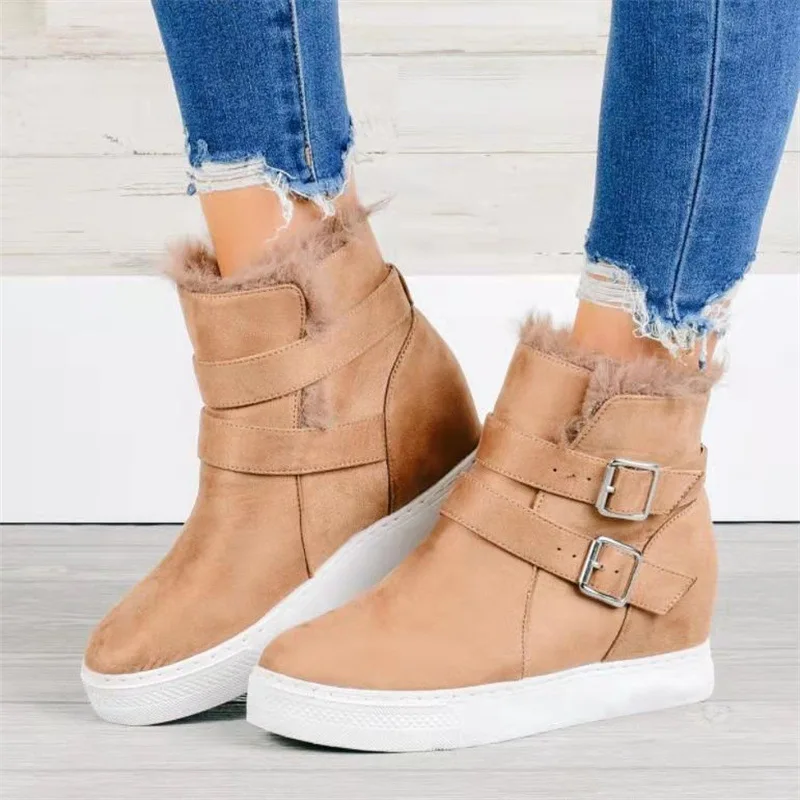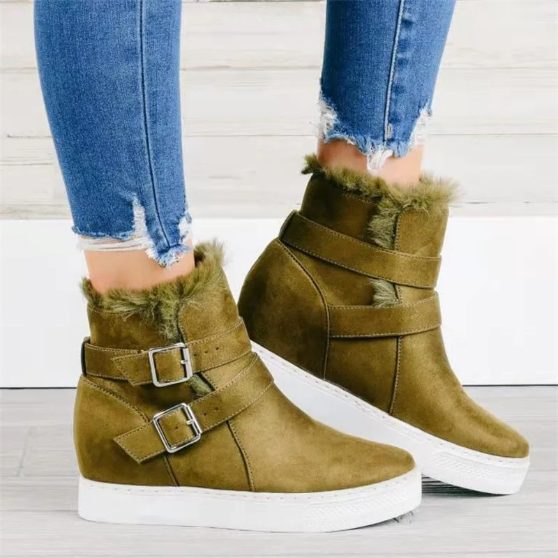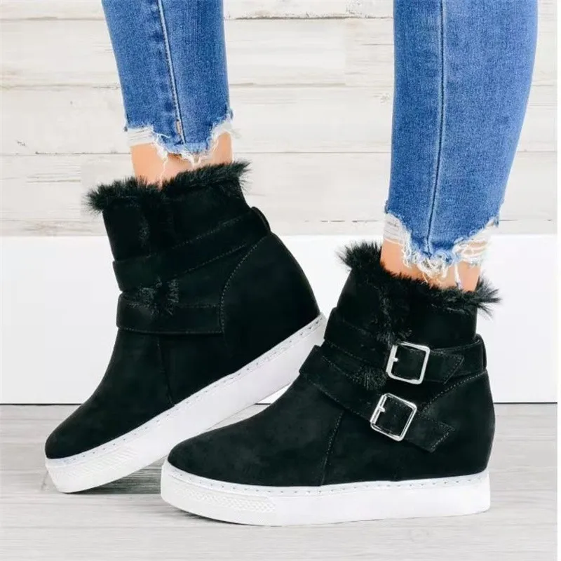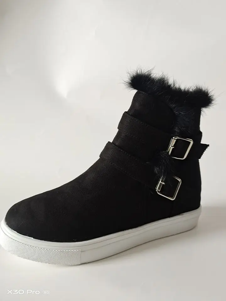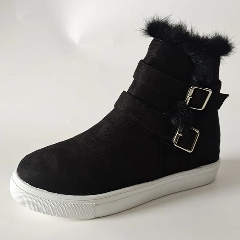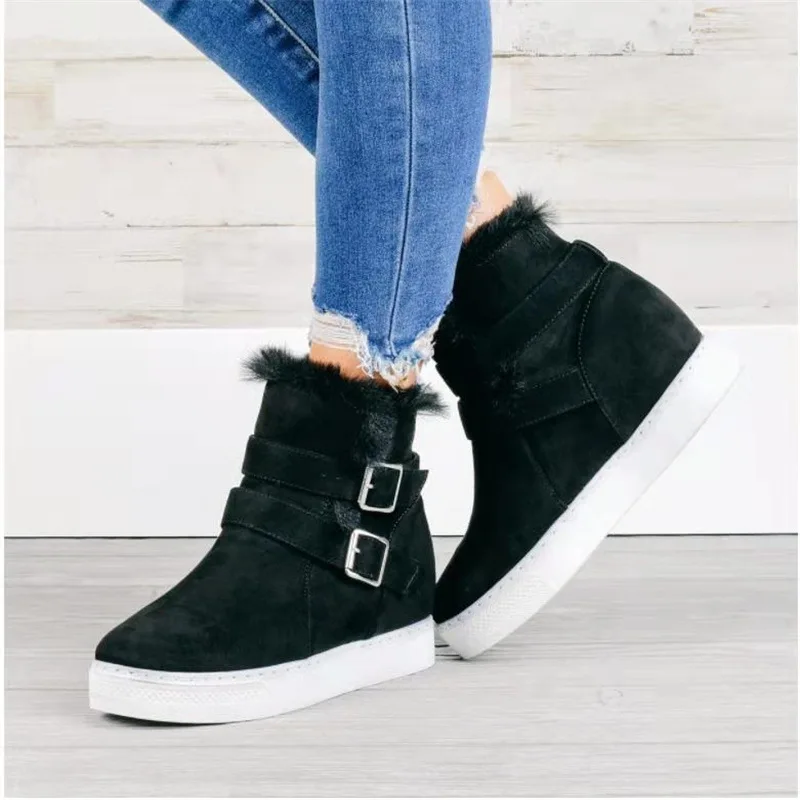 Fashion Women Boots Flat Ankle Boots Buckle Snow Boots Winter Plus Velvet Buckle Causal Platform Shoes Large Size 41 42 43 Botas