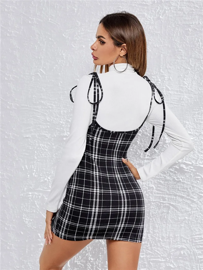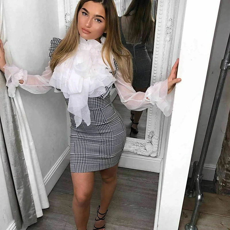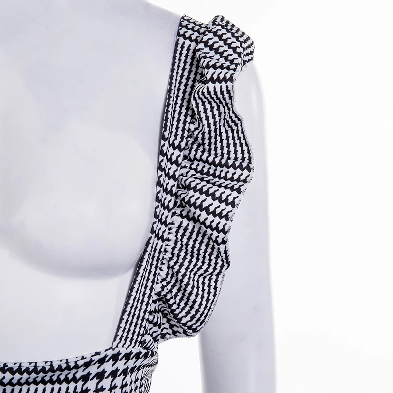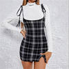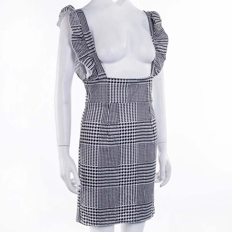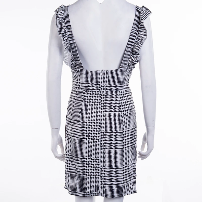 Fashion Women Dress Check Dog Tooth Frill Ruffle Pinafore High Waist Bodycon Party Mini Dress Holiday Casual Slim Dress vestidos