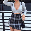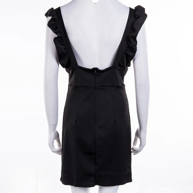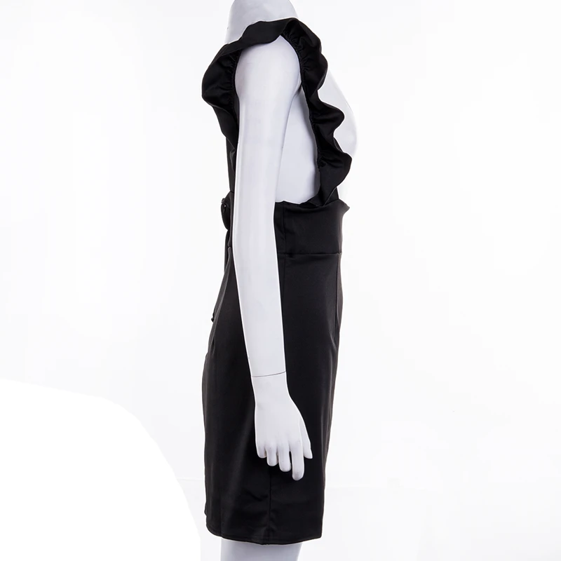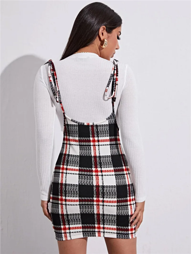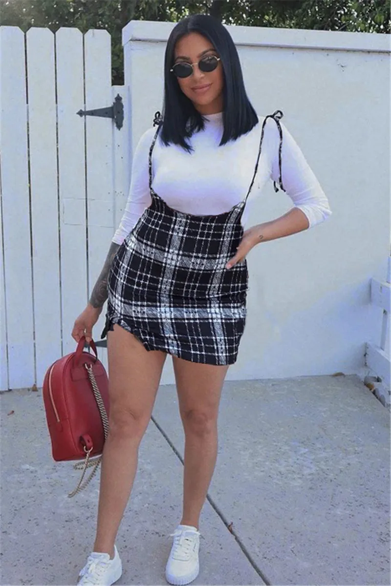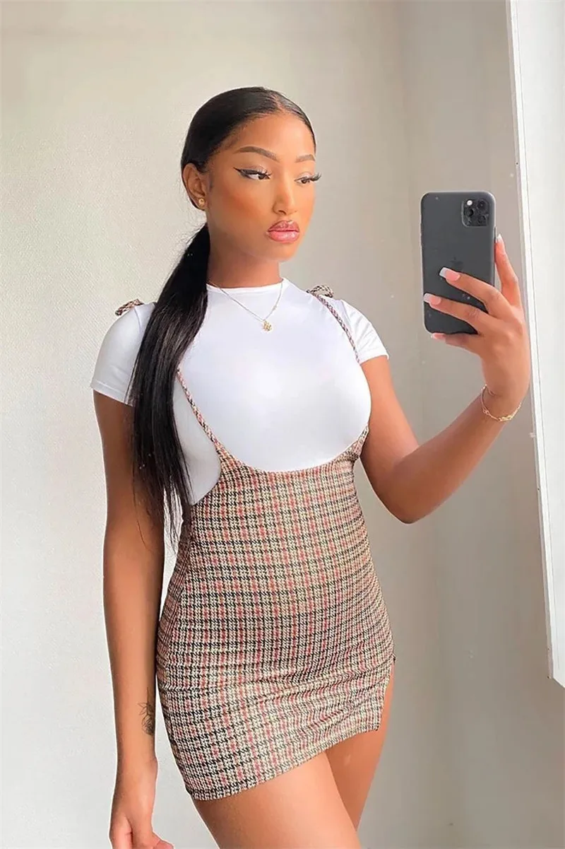 Fashion Women Dress Check Dog Tooth Frill Ruffle Pinafore High Waist Bodycon Party Mini Dress Holiday Casual Slim Dress vestidos
