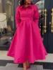Fashion Women Pleated A-Line Dress Turn Down Collar Long Sleeve Pockets Autumn Elegant Solid Button Vintage Evening Female Dress