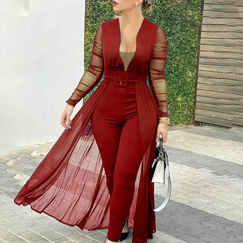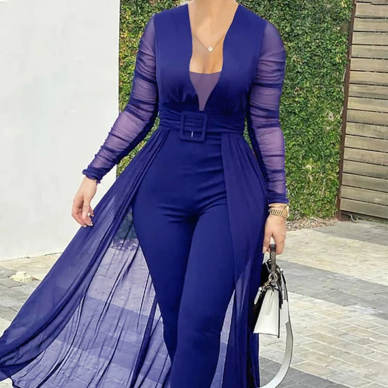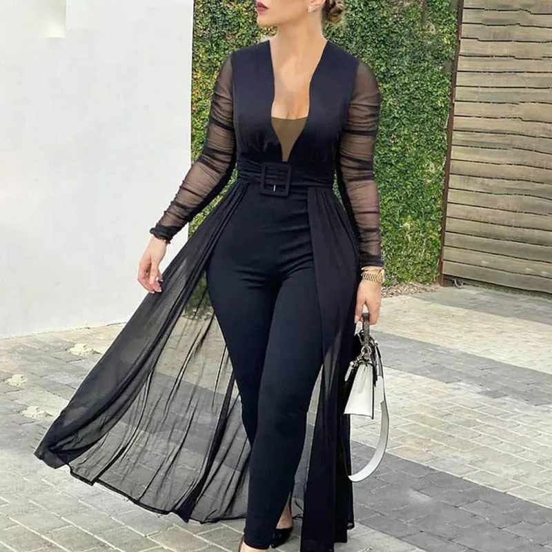 Fashion Women Rompers 2022 Spring Sexy Deep V-neck Long-Sleeve Slim Jumpsuit Vintage Solid Casual Long Pants Ladies Playsuits