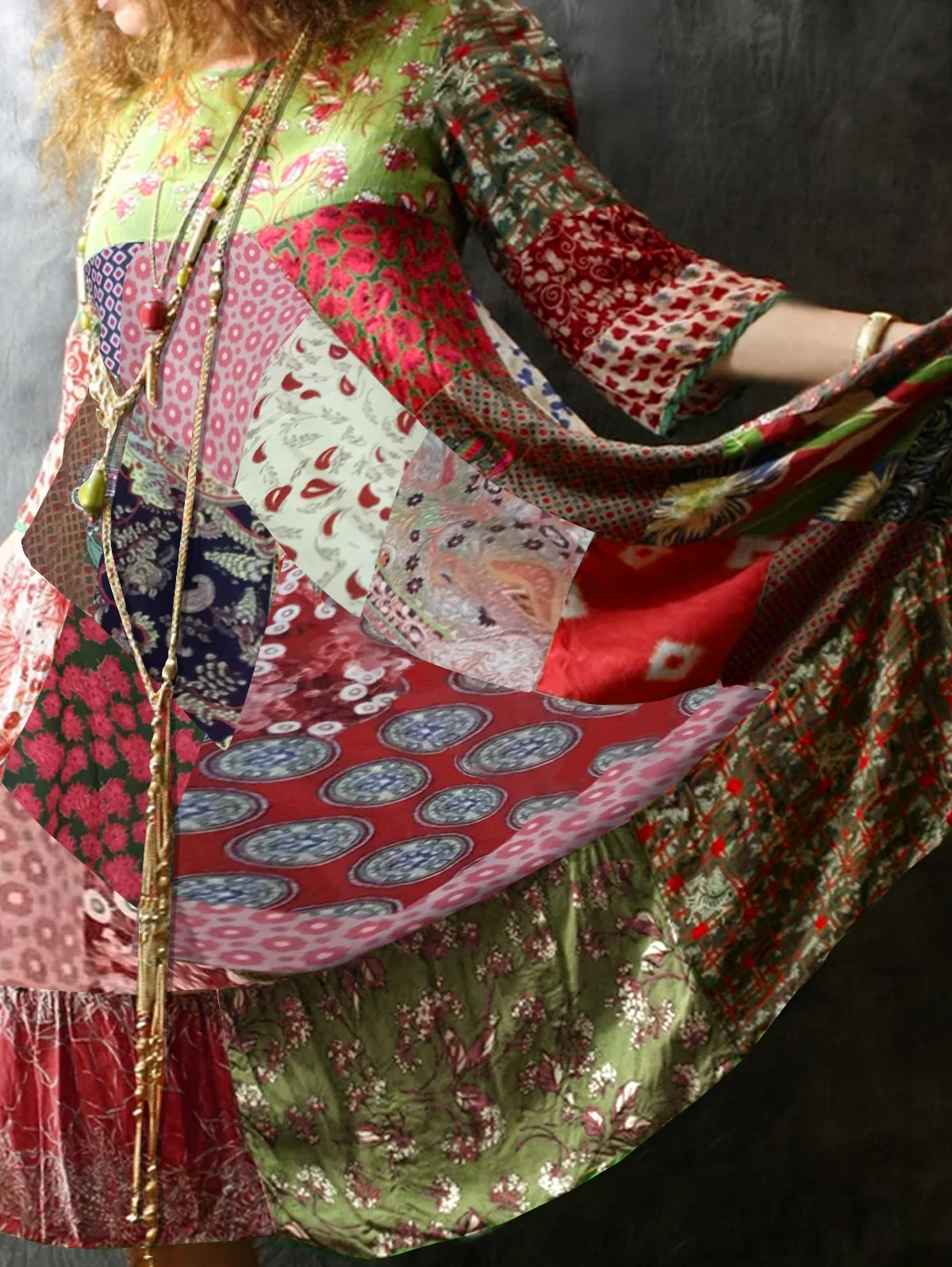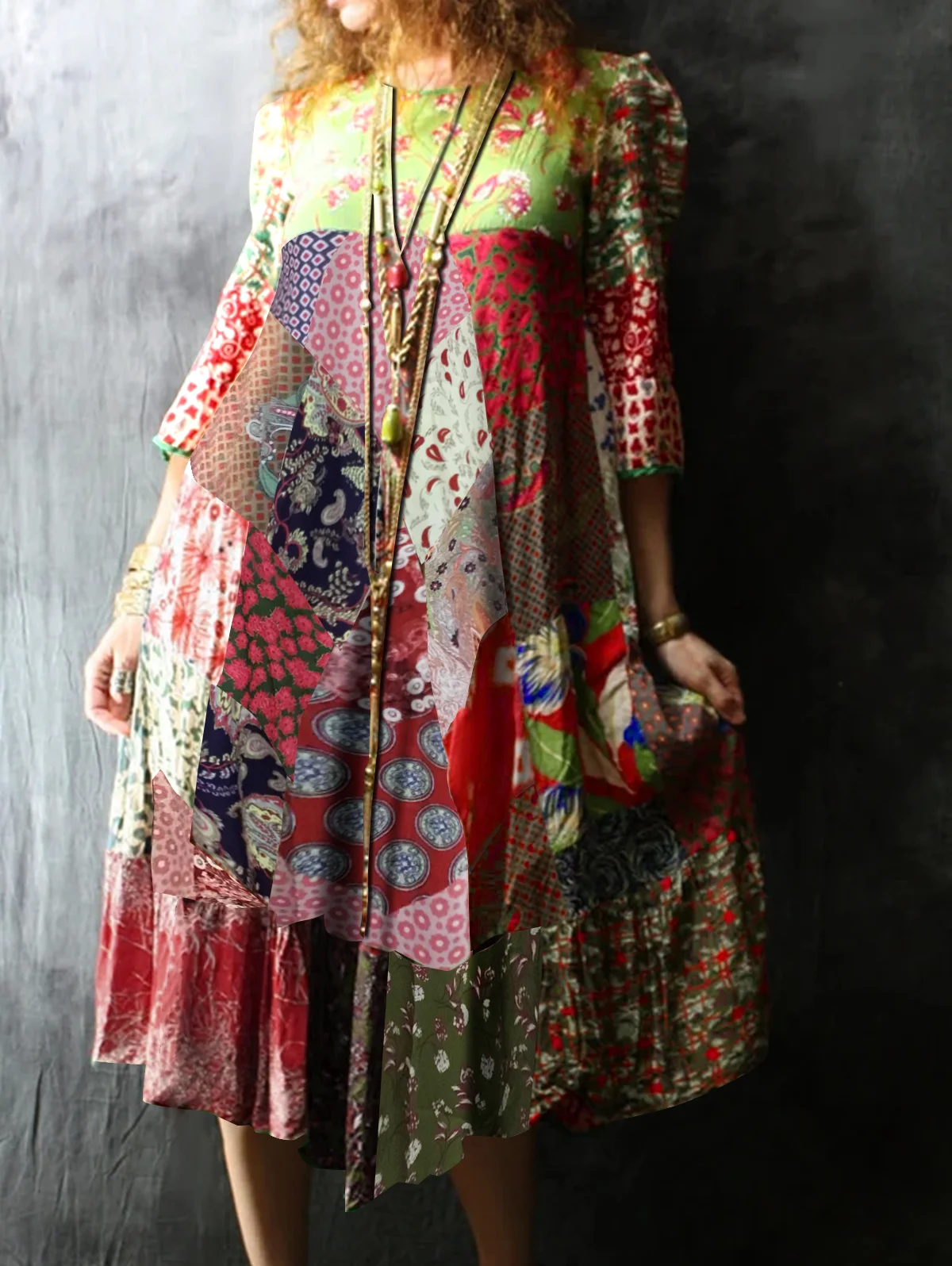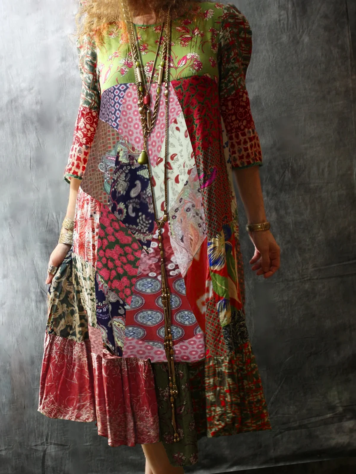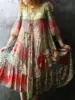 Fashion Women’s Long Dress Vintage Print Crew Neck Loose Bohemian Women’s 3/4 Sleeve Dress Summer Loose Midi Dress Robe 2025