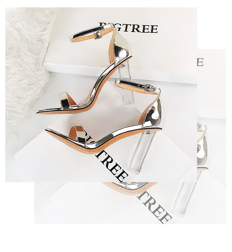 Fashionable Summer Sexy Nightclub High Heels Transparent Crystal with Super High Heel Open Toe Sandals Luxurious Cool