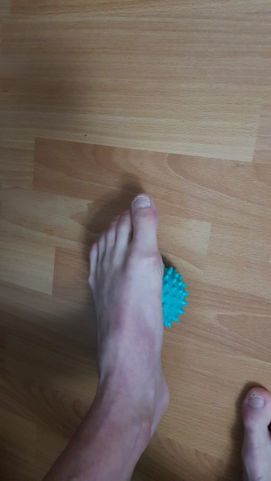 The ball is very tight, does not sell at all. Came in a general package with other goods, the package from this product was cut, it's like something's been pushed. The foot kneads well, straight twitches sometimes))