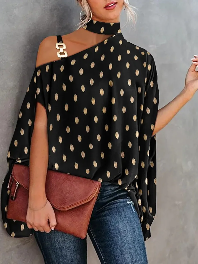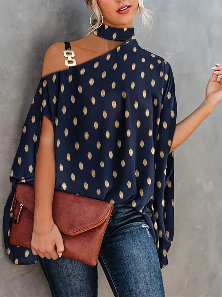 Feather Print Chain Strap Cold Shoulder Tops Women Blouses