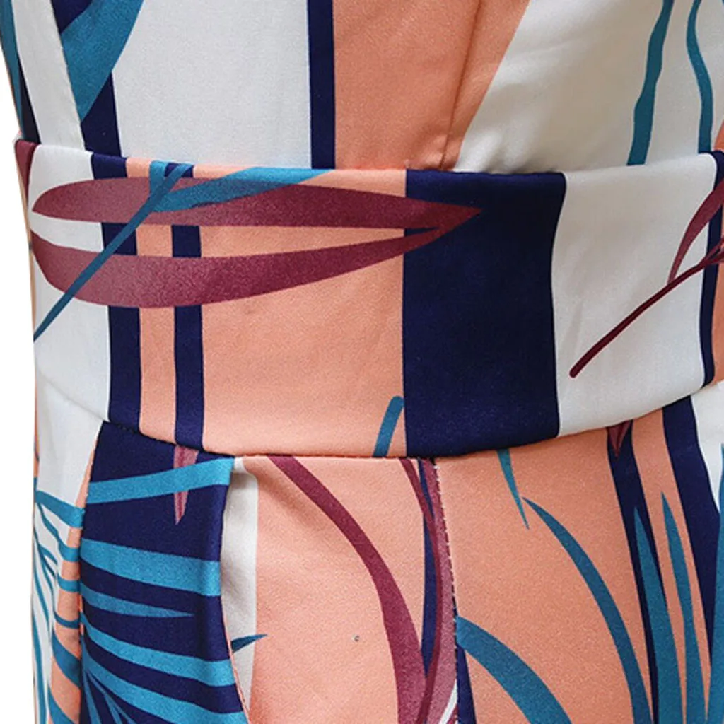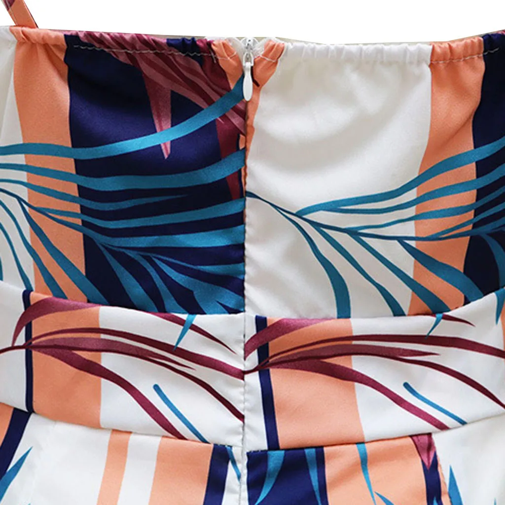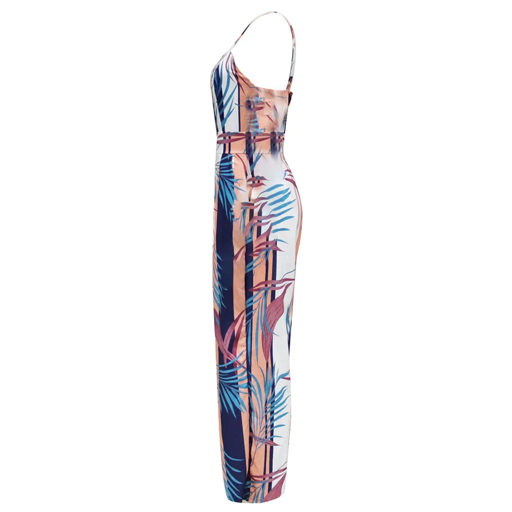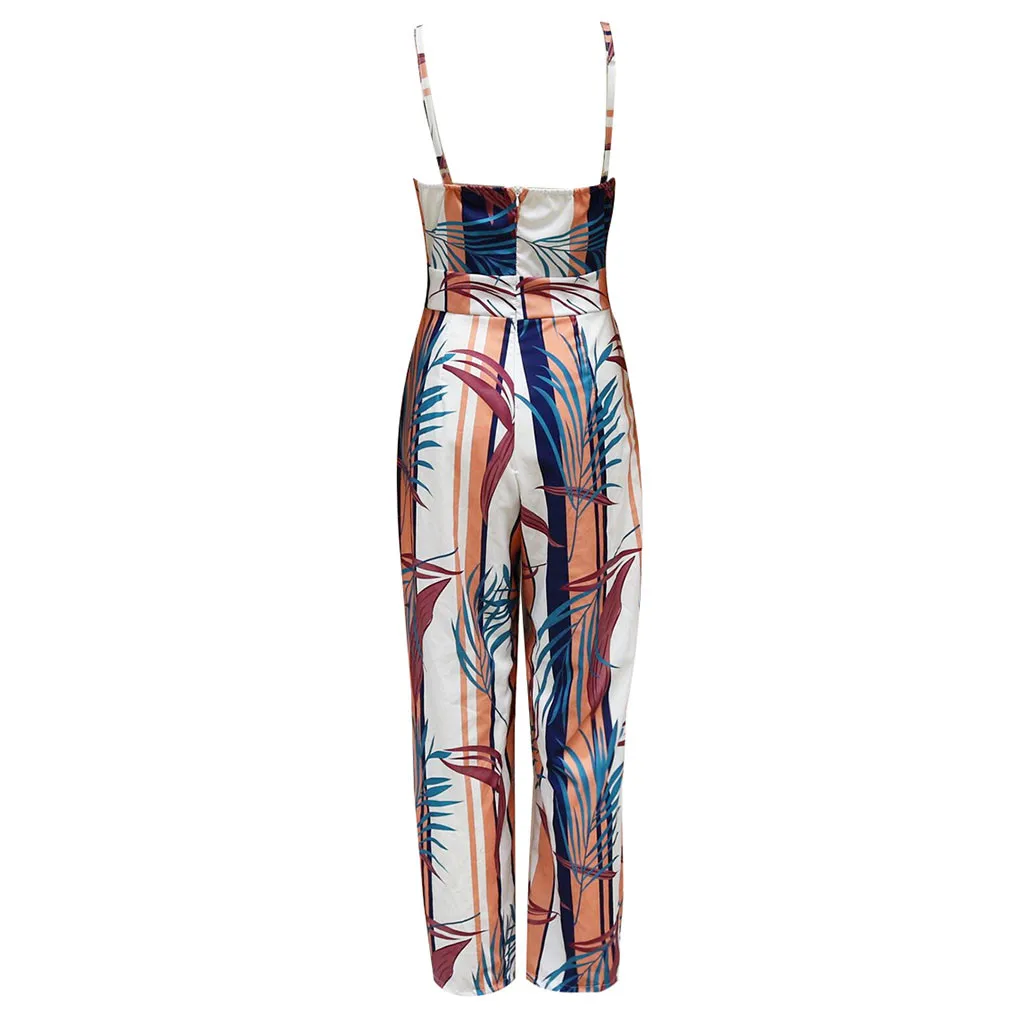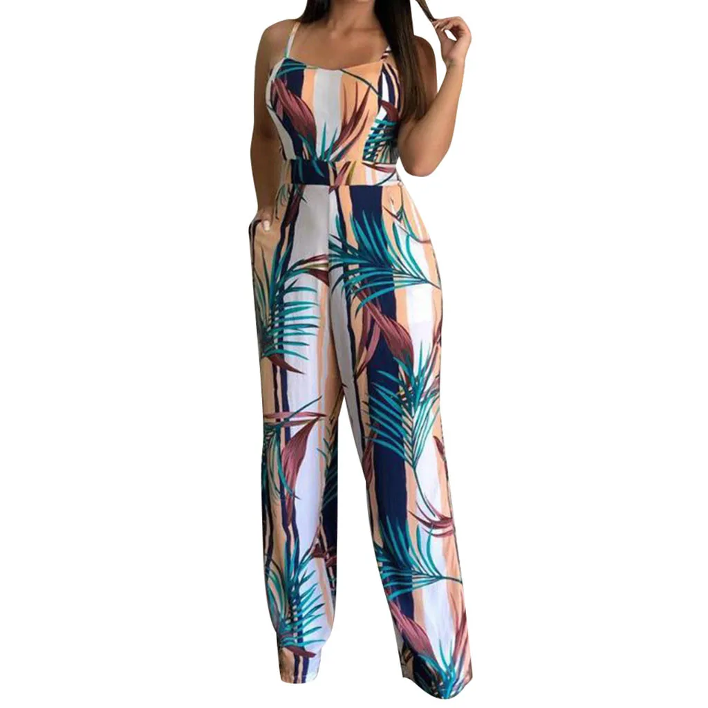 Feitong Women Sleeveless Leaf Print Casual Clubwear Wide Leg Pants Bodysuit Women Playsuit Rompers Womens Jumpsuit Long Trousers
