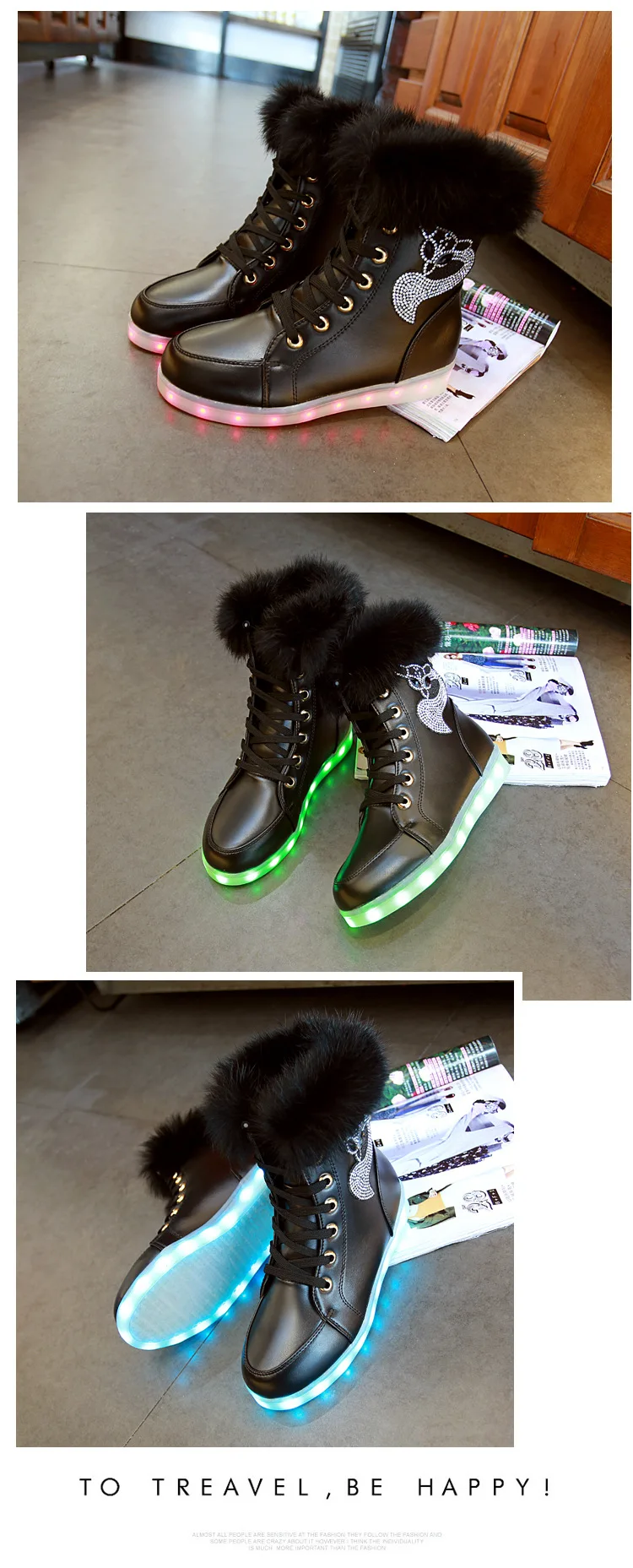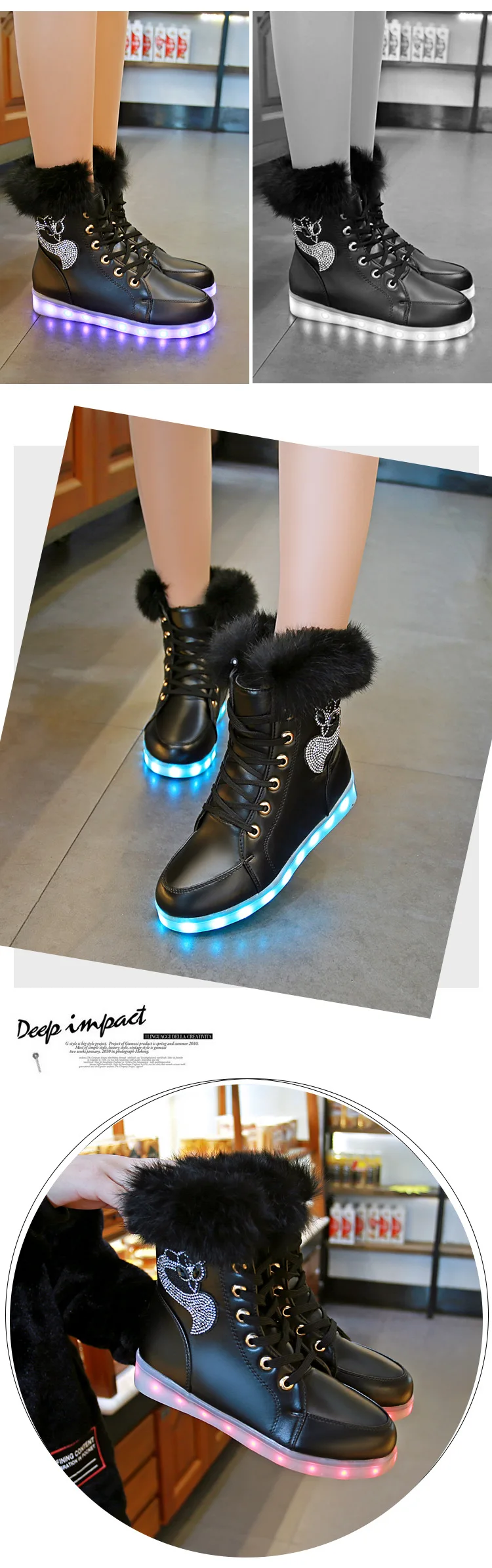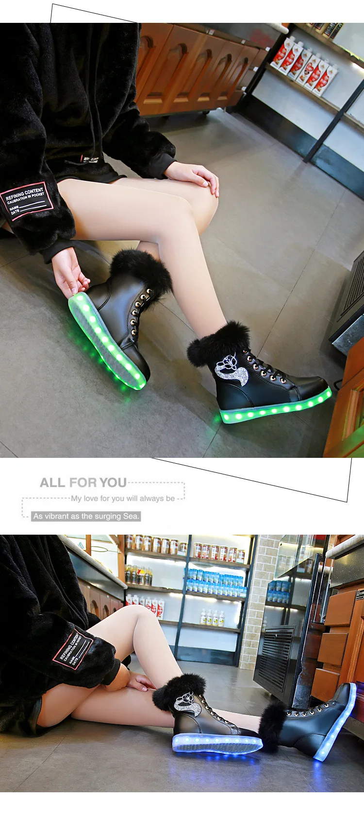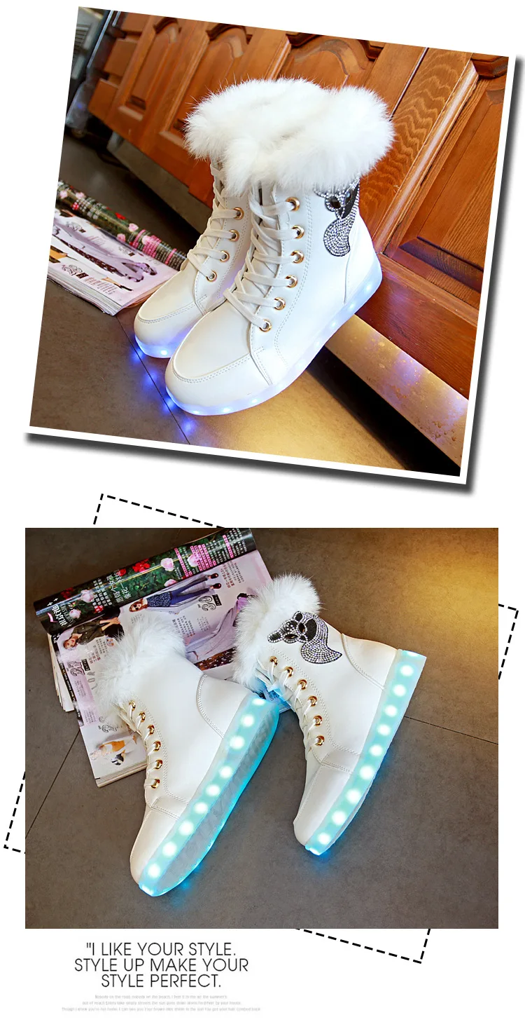 Fleece Snow Boots Women UBS LED Light Shoes Casual Rabbit Hair Ankle Boots Shoes Winter Boots Warm Ladies Flat Shoes Mujer