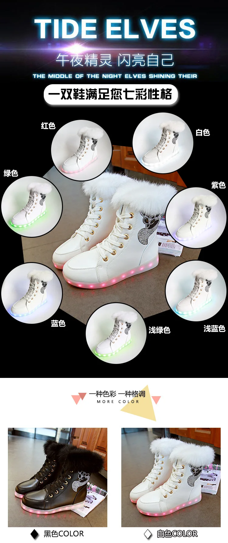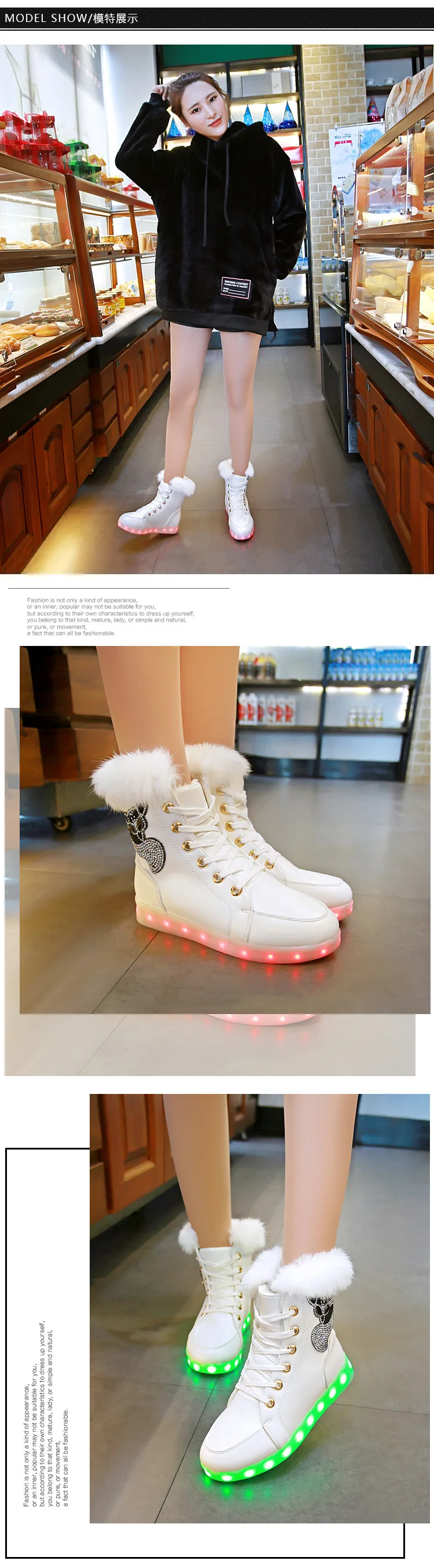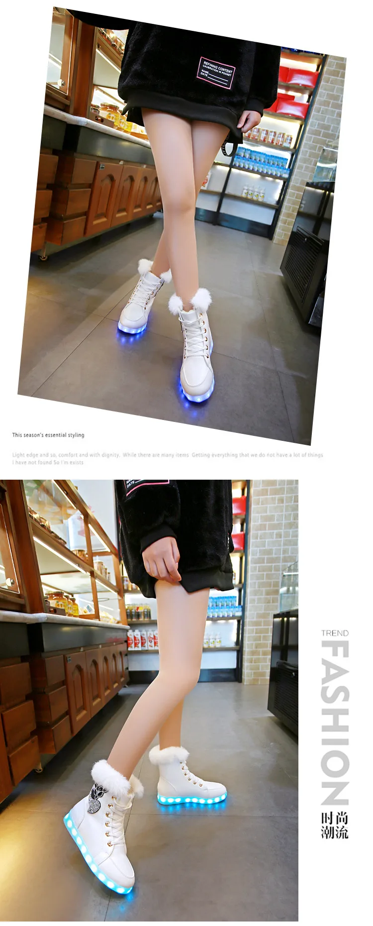 Fleece Snow Boots Women UBS LED Light Shoes Casual Rabbit Hair Ankle Boots Shoes Winter Boots Warm Ladies Flat Shoes Mujer
