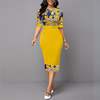 Floral Print Patchwork Yellow Elegant Office Lady Dress For Women 2020 Fashion O Neck Slim Business Formal Dress Party Vestidos