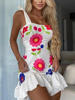 Floral Print Sleeveless Thick Strap Summer Dress Women Slim Ruffles Mini Dress