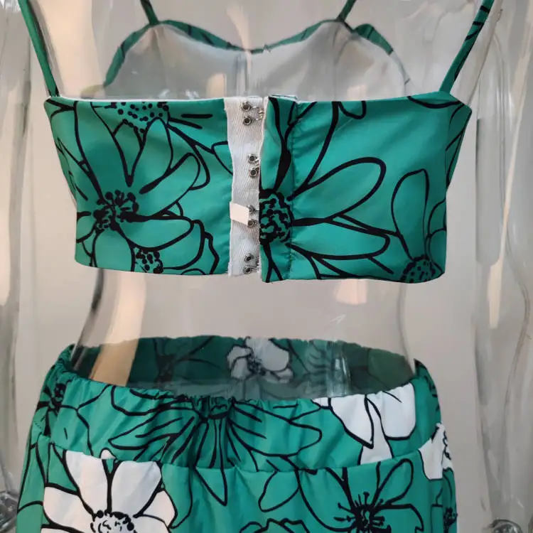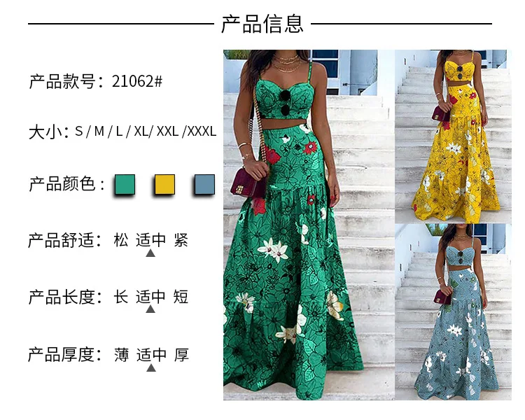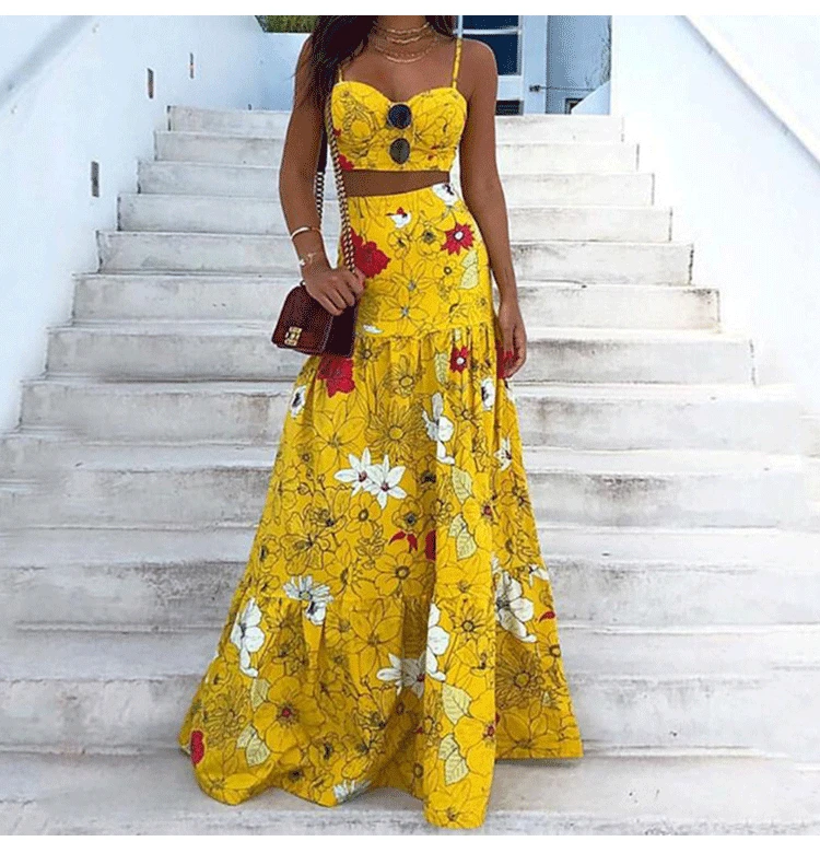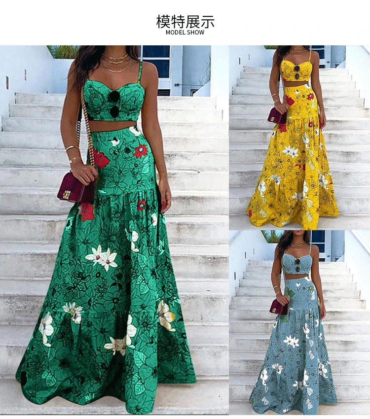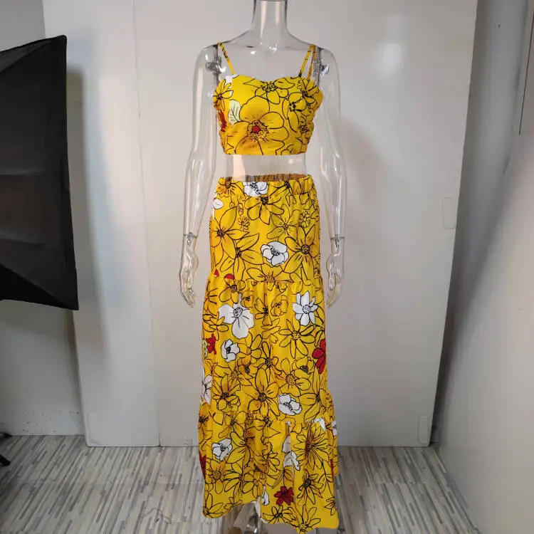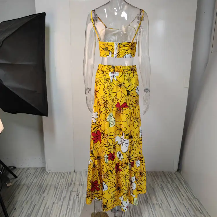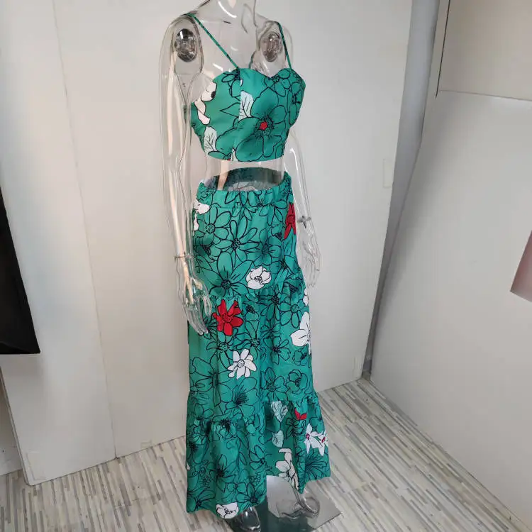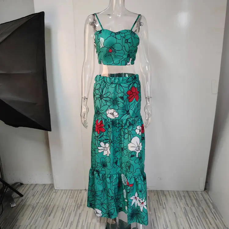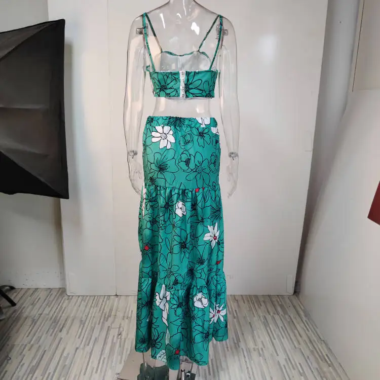 Floral Print Two Piece Set Women Sexy Spaghetti Strap Crop Top Maxi Skirt Floral Suit Women Summer Dress Sets Vestidos De Mujer