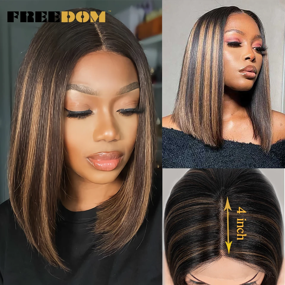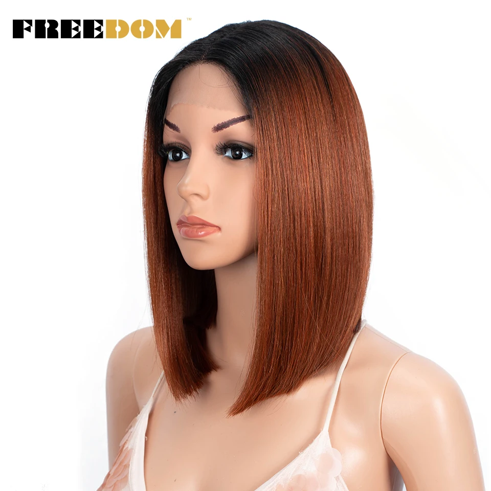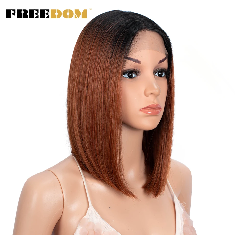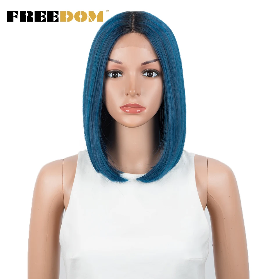 FREEDOM Bob Wigs Synthetic Straight Lace Wigs Short Omber Brown Blue Red Green Ginger Lace Wig Cosplay Wigs For Black Women