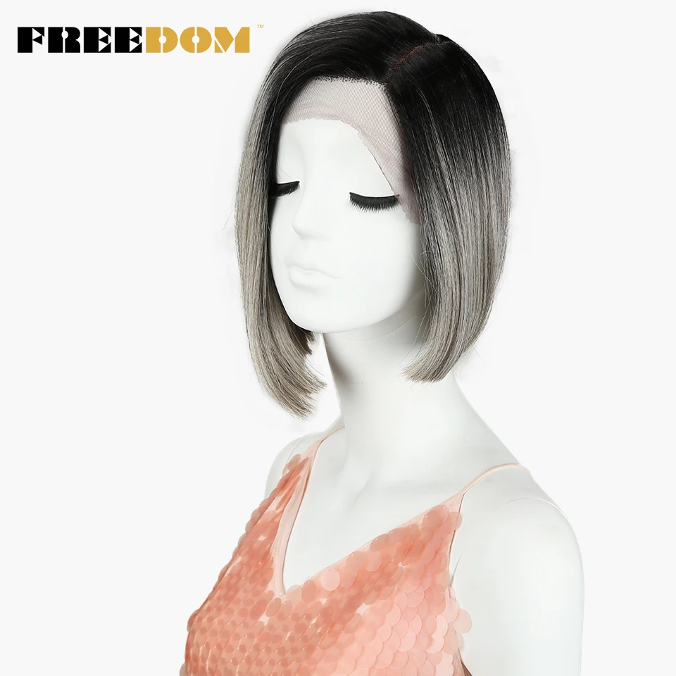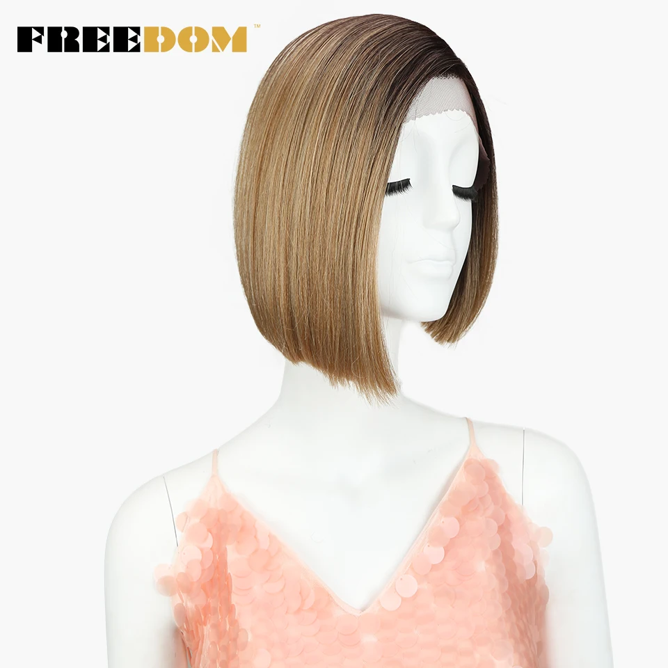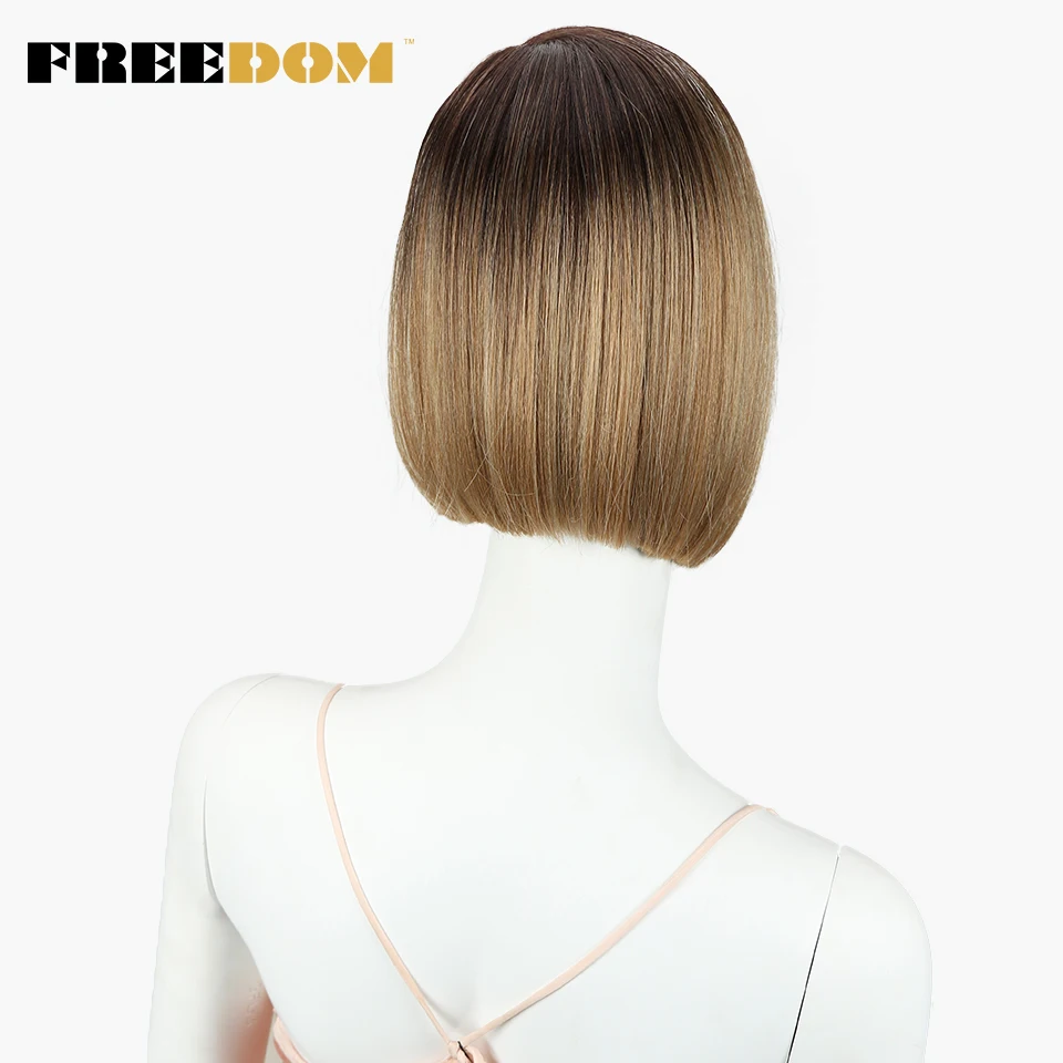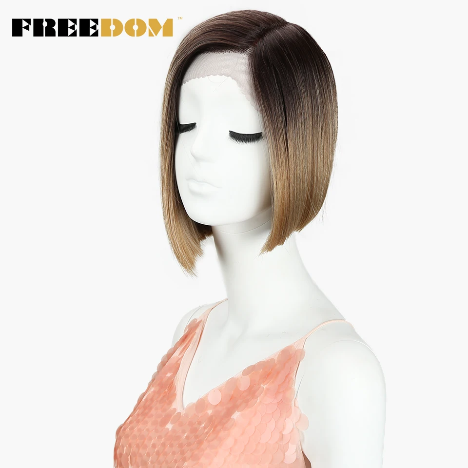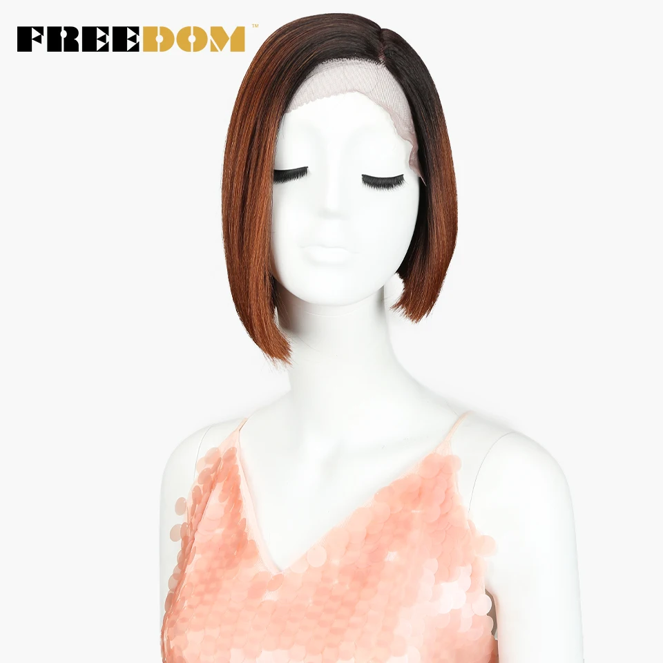 FREEDOM Colorful Short Bob Straight Wigs For Black Women Ombre Dark Roots Brown Synthetic Lace Wig Natural Hair wigs Glueless