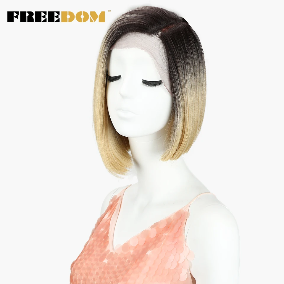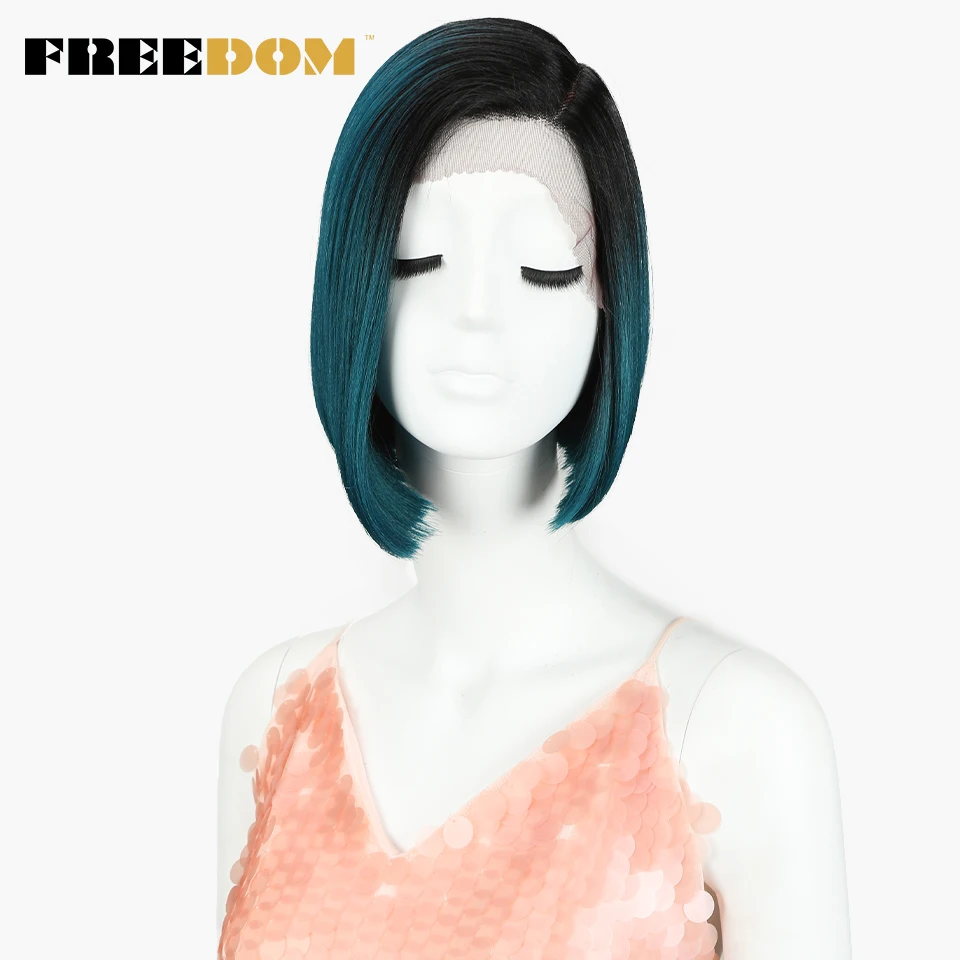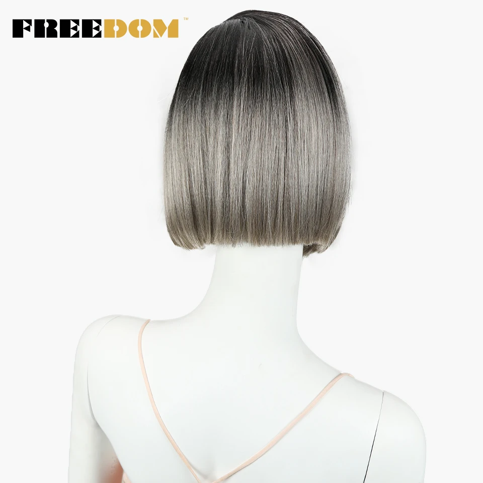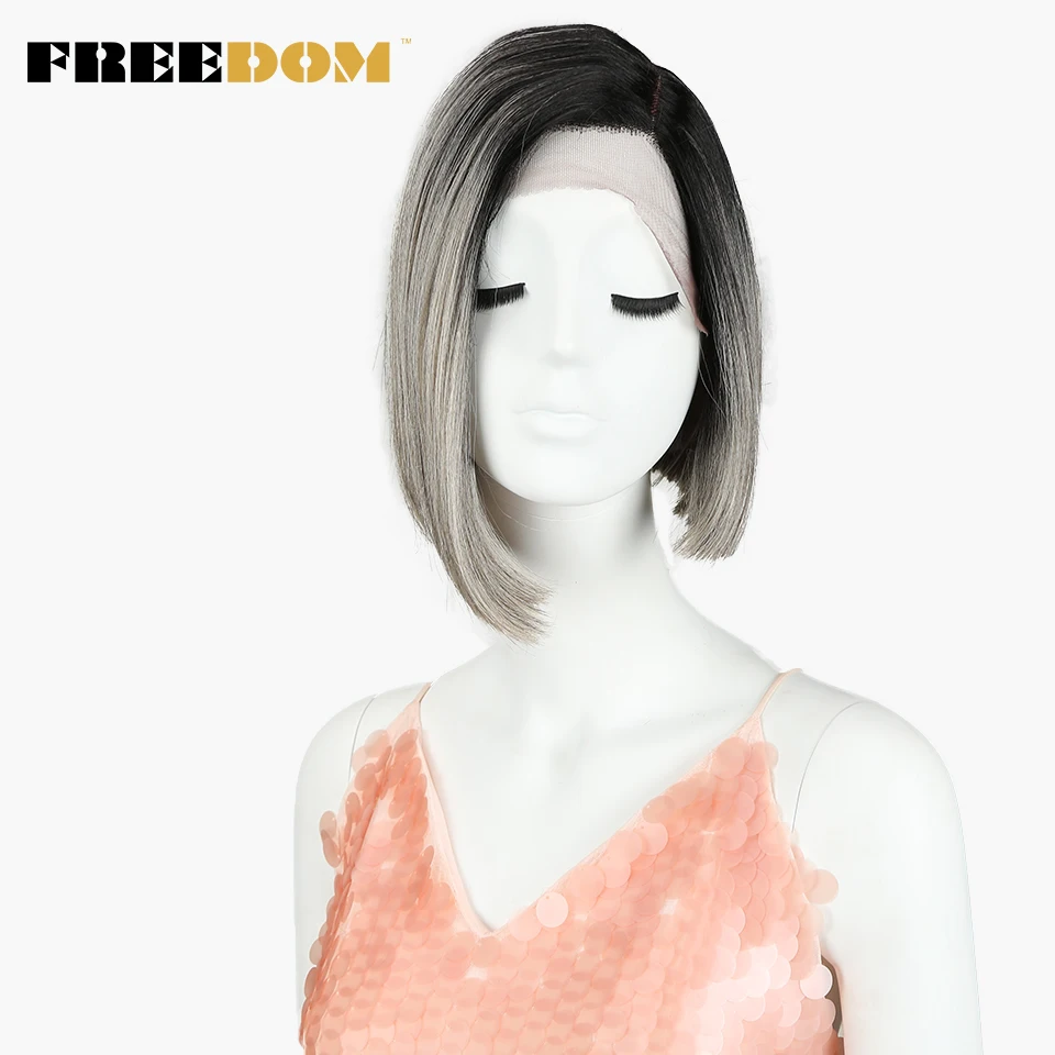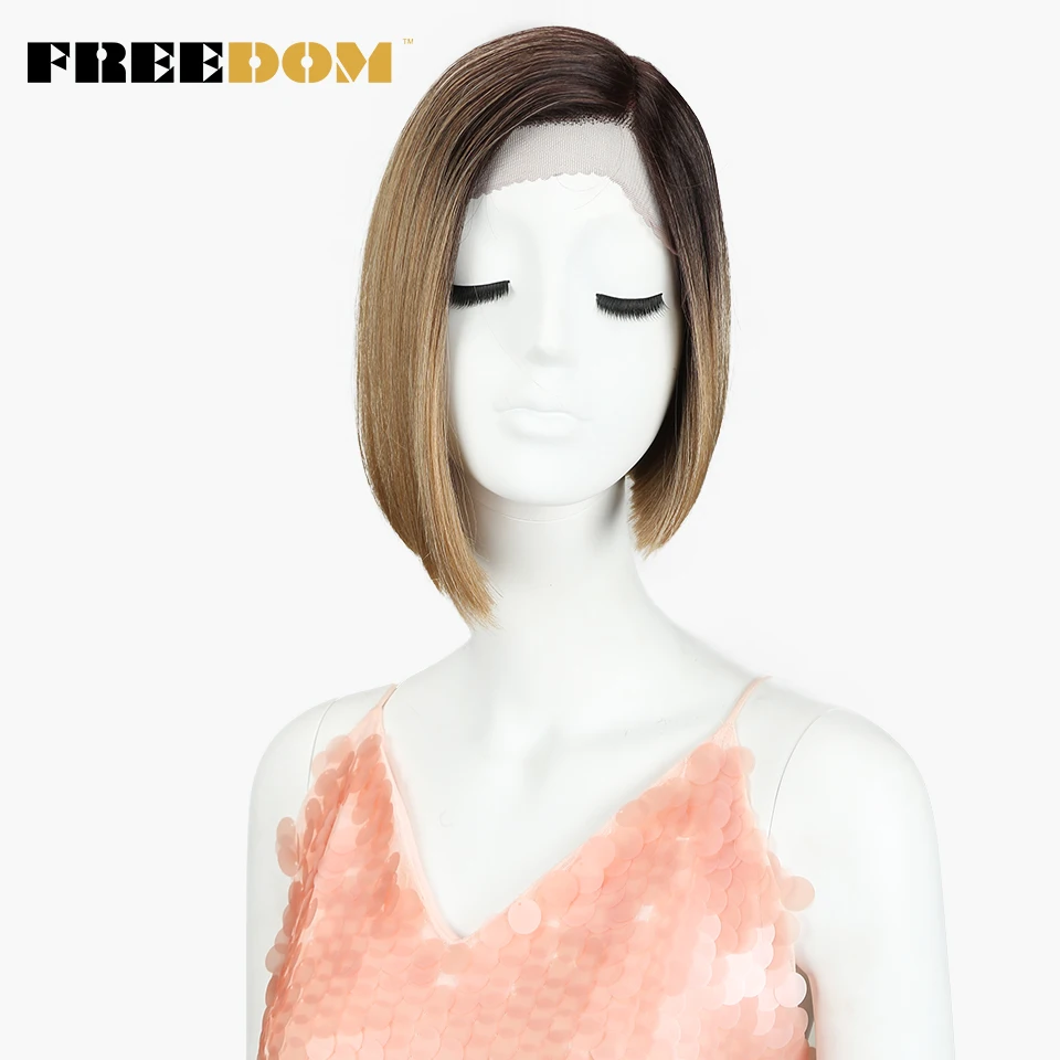 FREEDOM Colorful Short Bob Straight Wigs For Black Women Ombre Dark Roots Brown Synthetic Lace Wig Natural Hair wigs Glueless