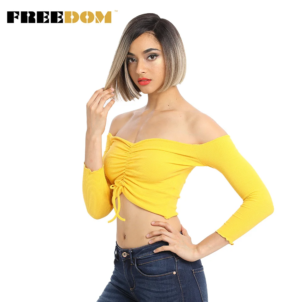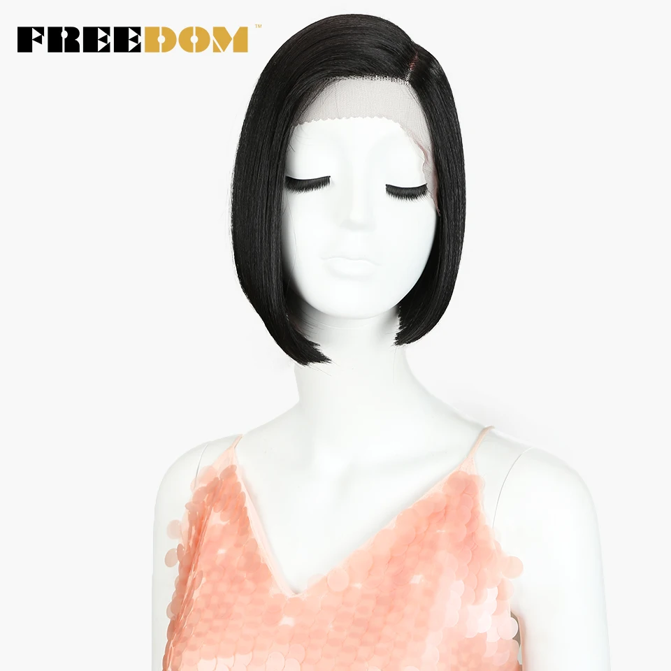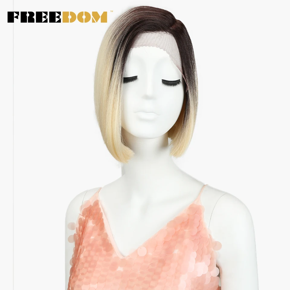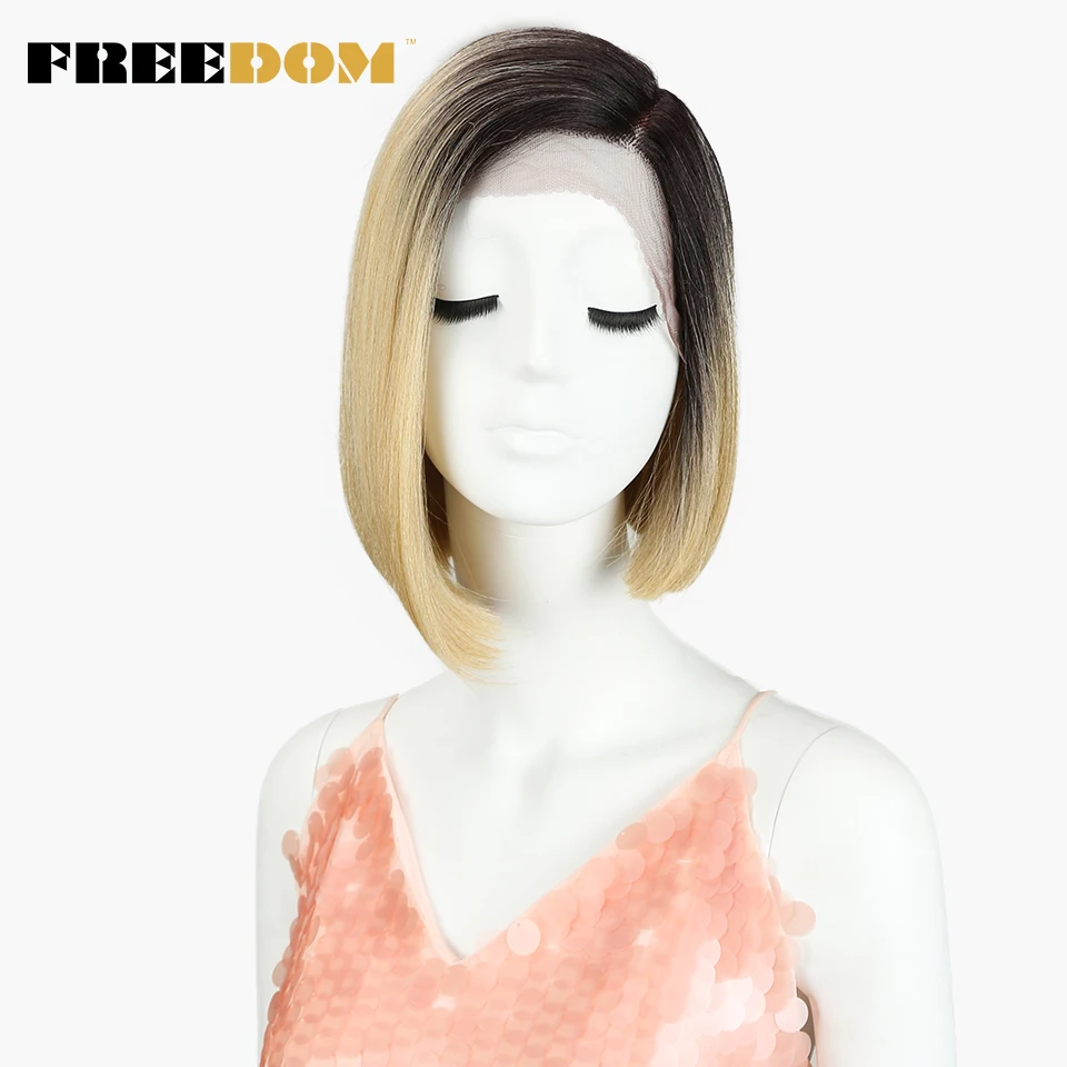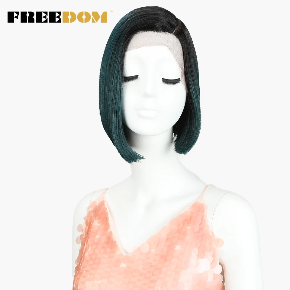 FREEDOM Colorful Short Bob Straight Wigs For Black Women Ombre Dark Roots Brown Synthetic Lace Wig Natural Hair wigs Glueless