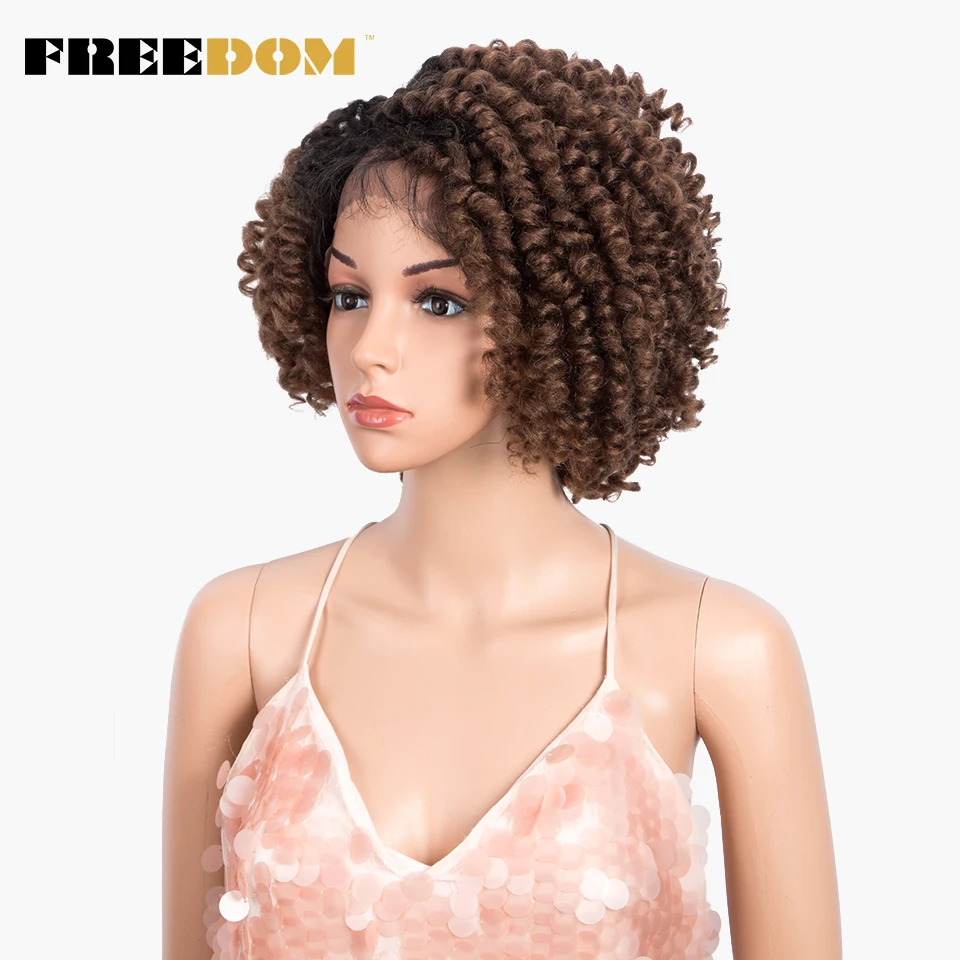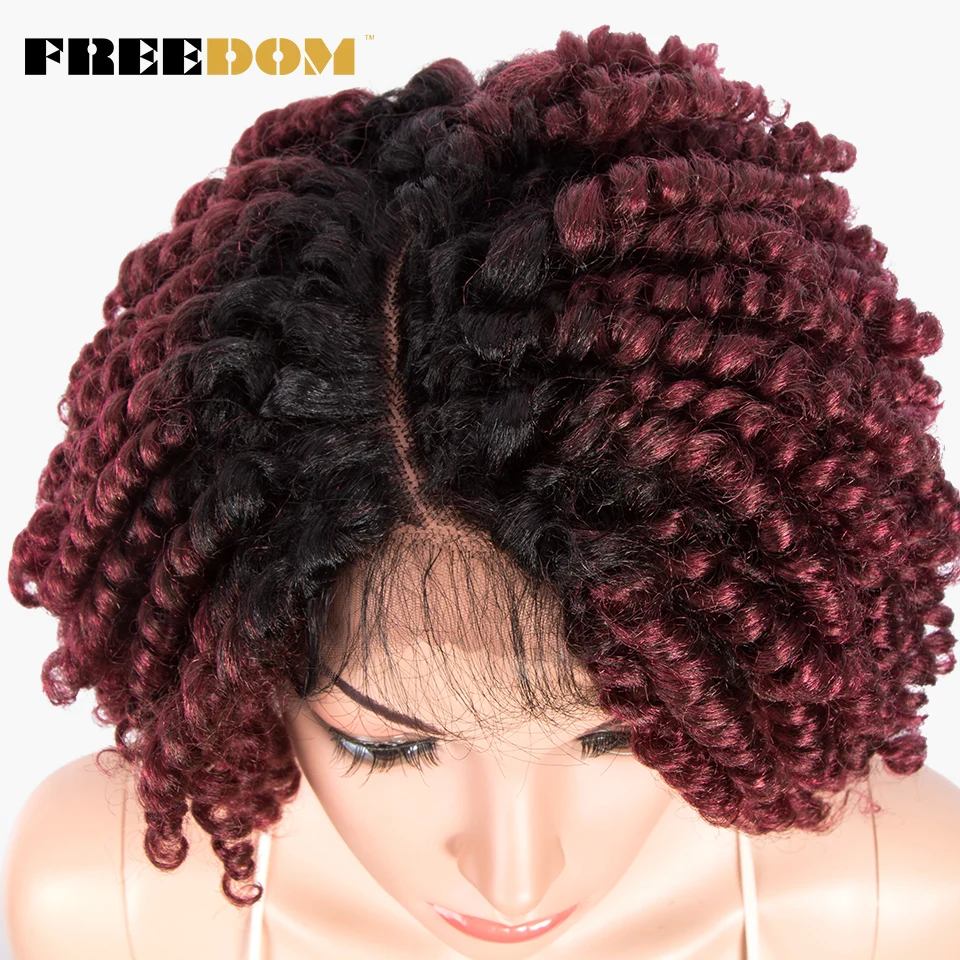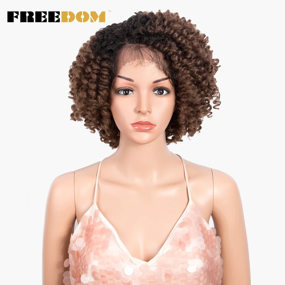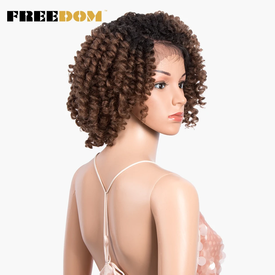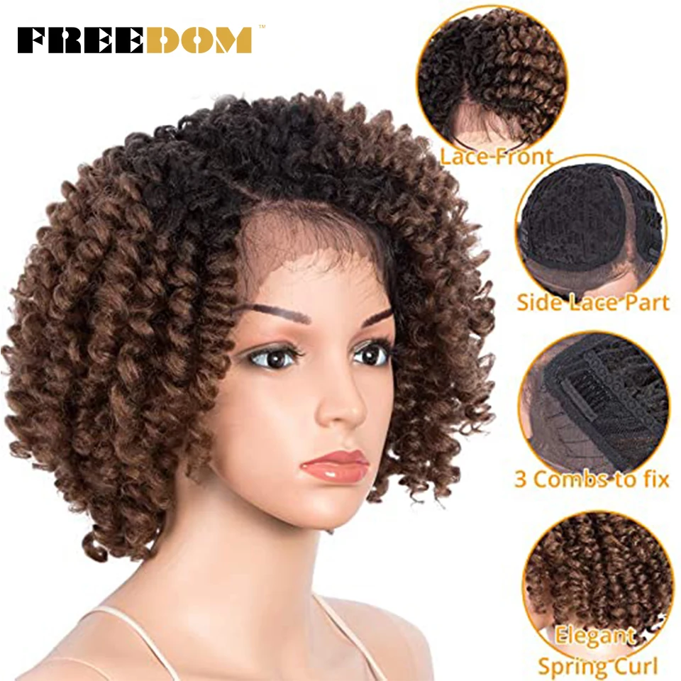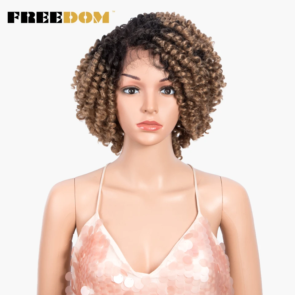 FREEDOM Curly Synthetic Lace Wigs For Black Women 12inch Short Curly Wig With Baby Hair Part Lace Ombre WIg Heat Resistant