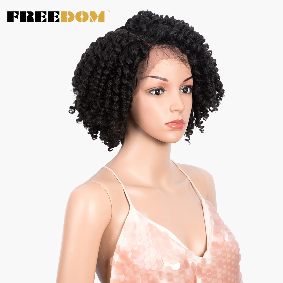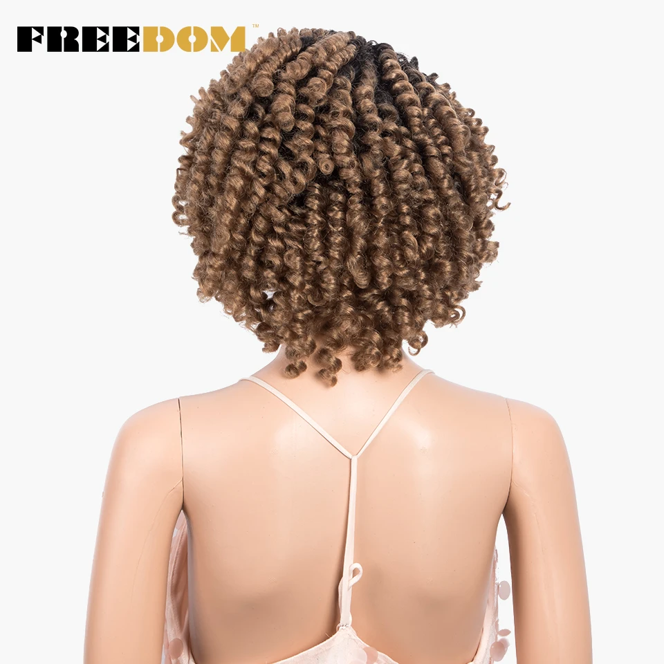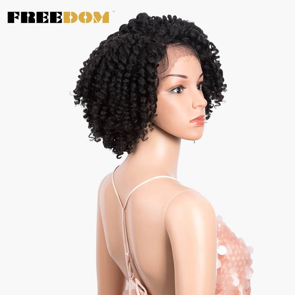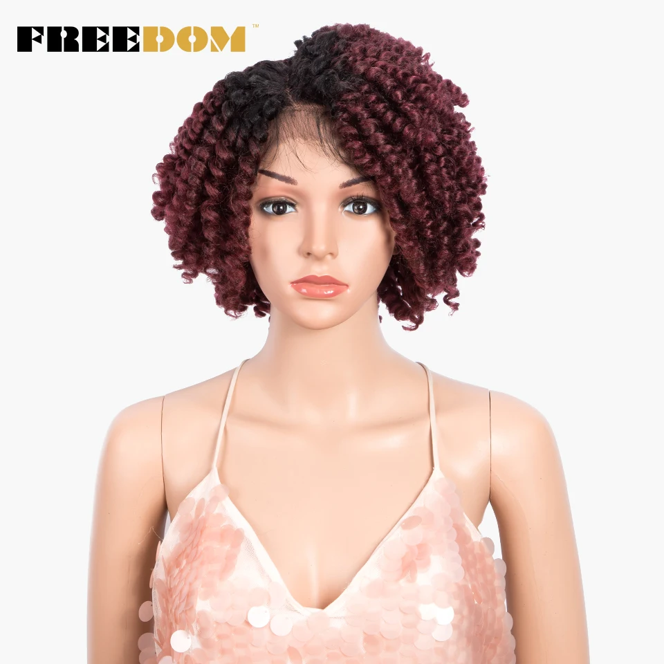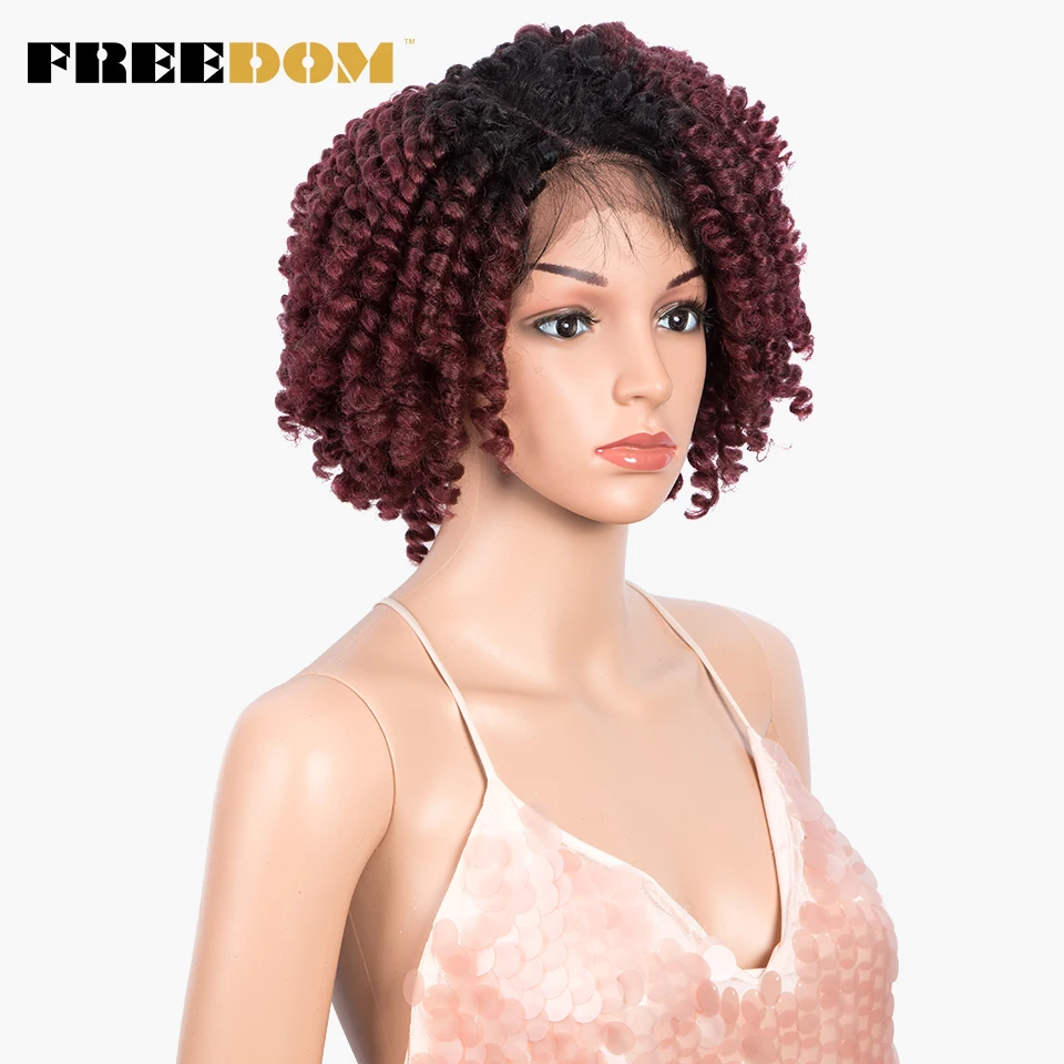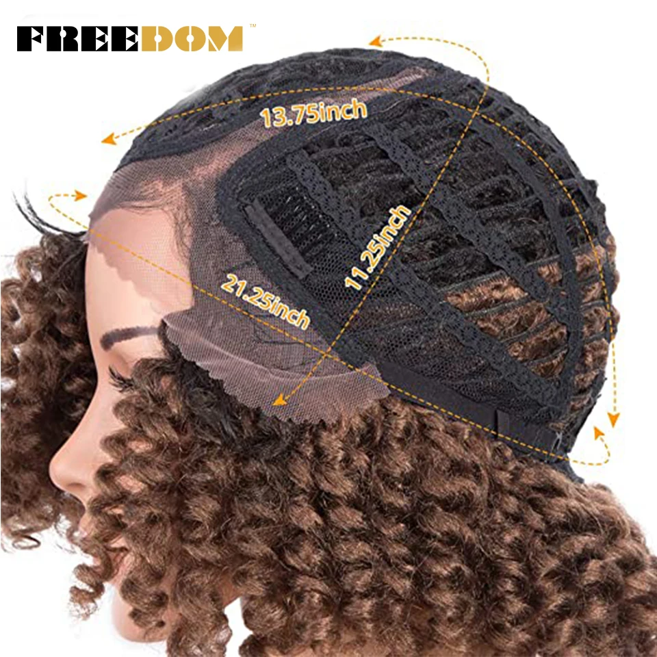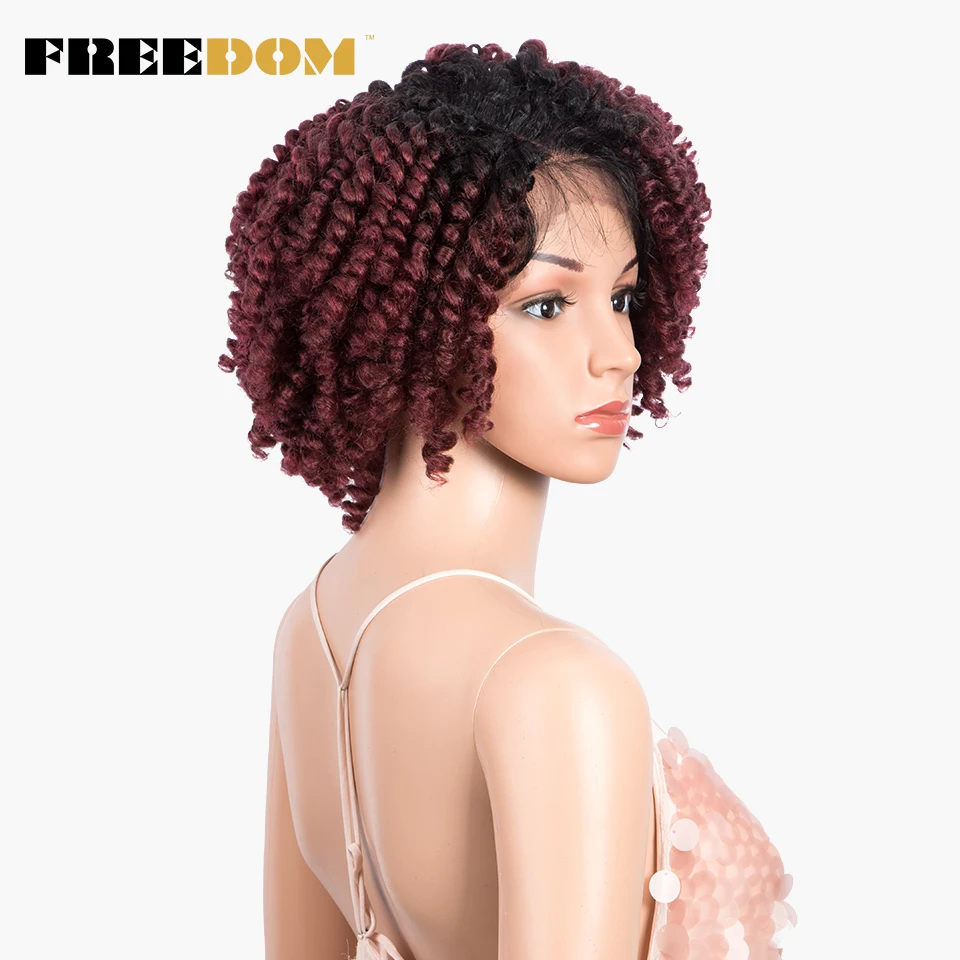 FREEDOM Curly Synthetic Lace Wigs For Black Women 12inch Short Curly Wig With Baby Hair Part Lace Ombre WIg Heat Resistant