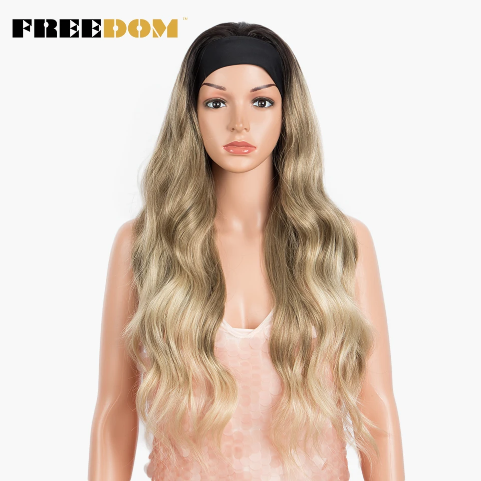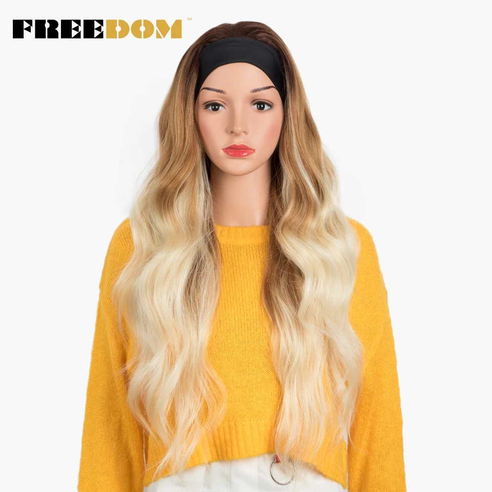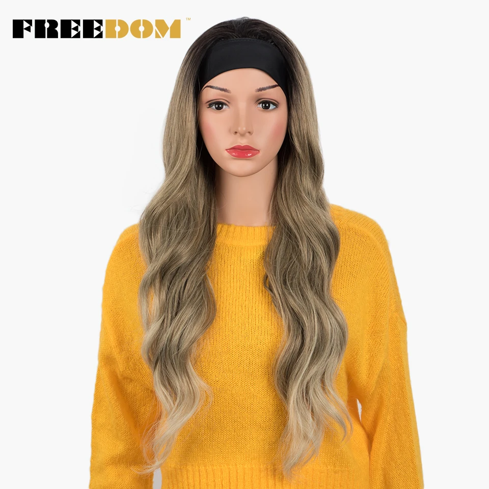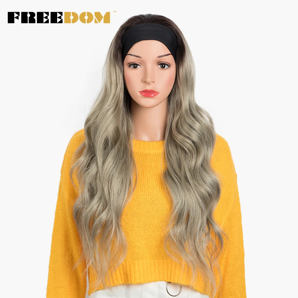 FREEDOM Long Wavy Headband Wig For Black Women None Replacement Ombre Blonde Brown Grey Body Wave Synthetic Headband Wig