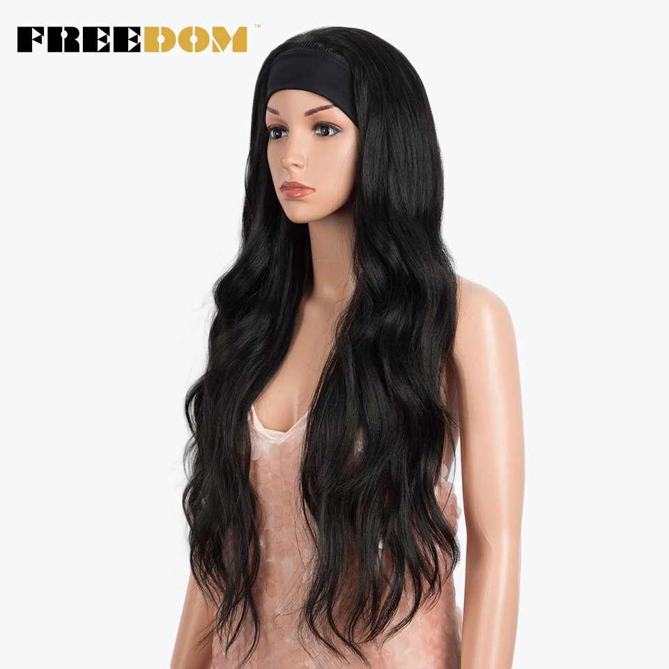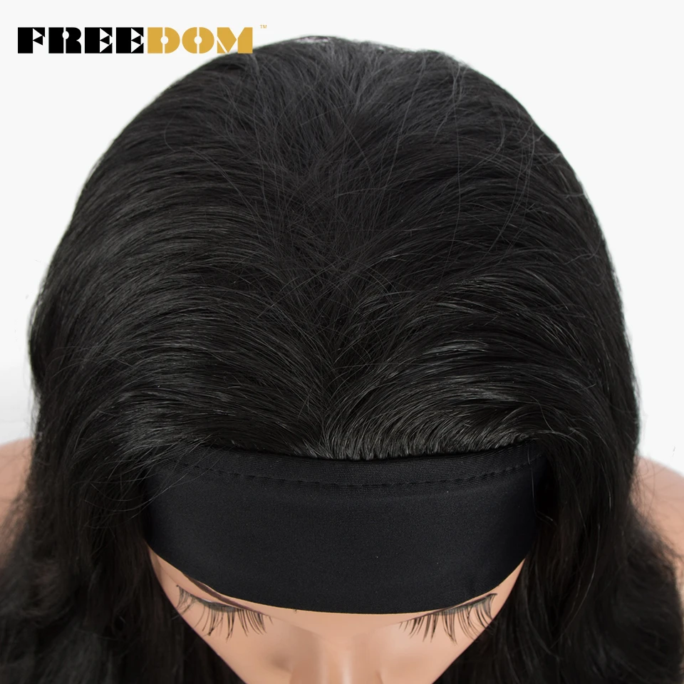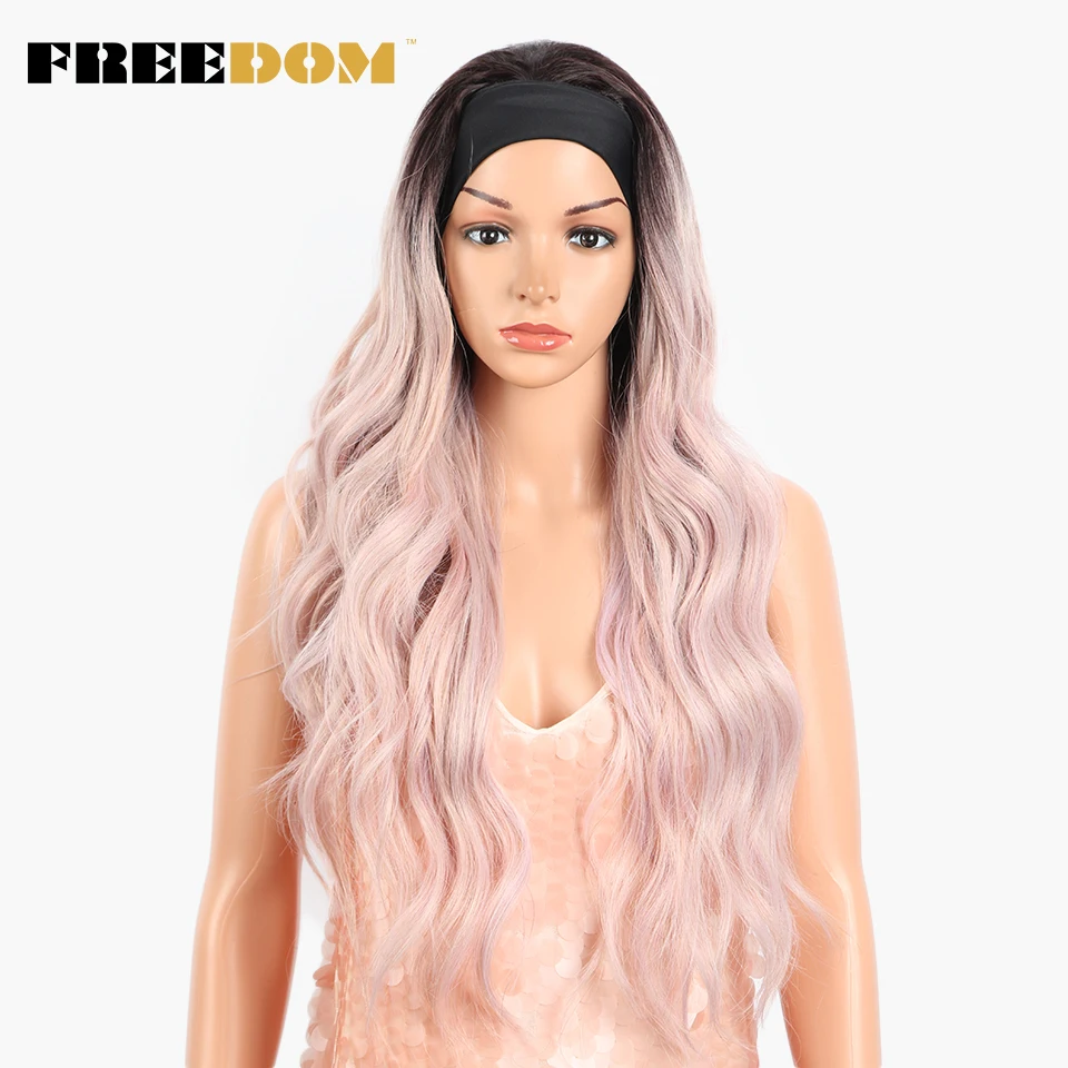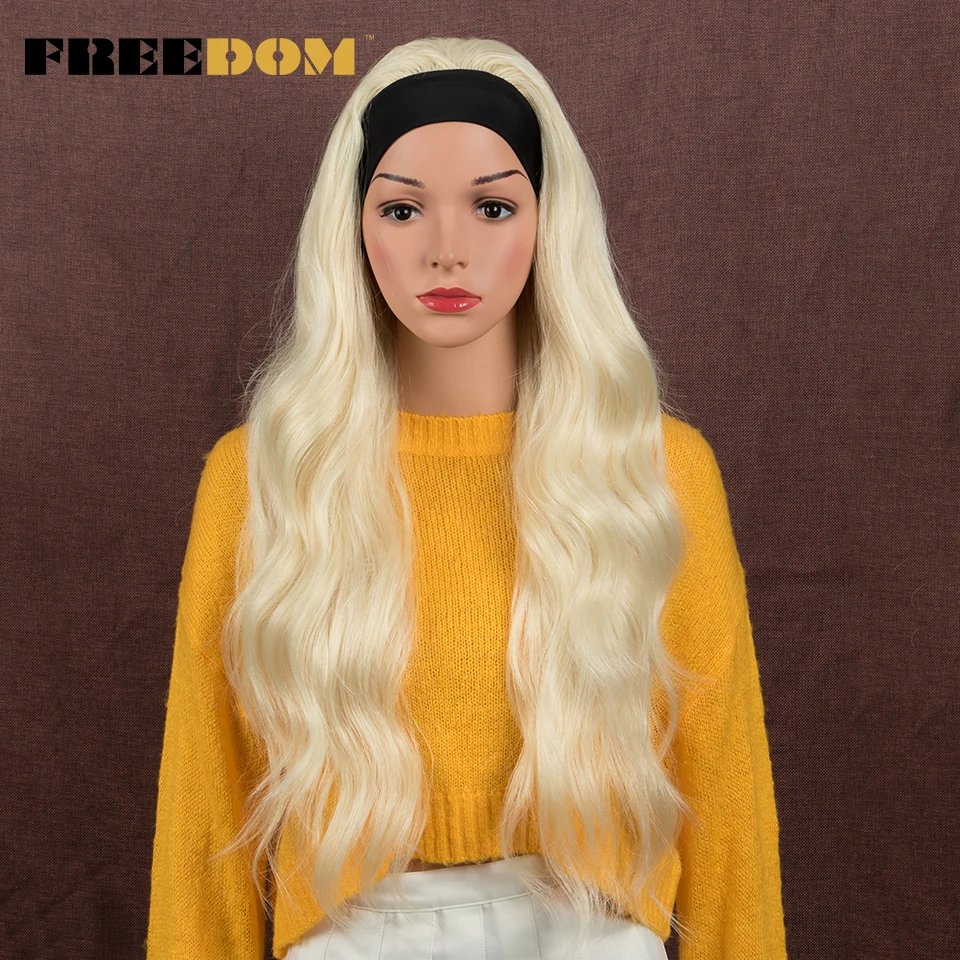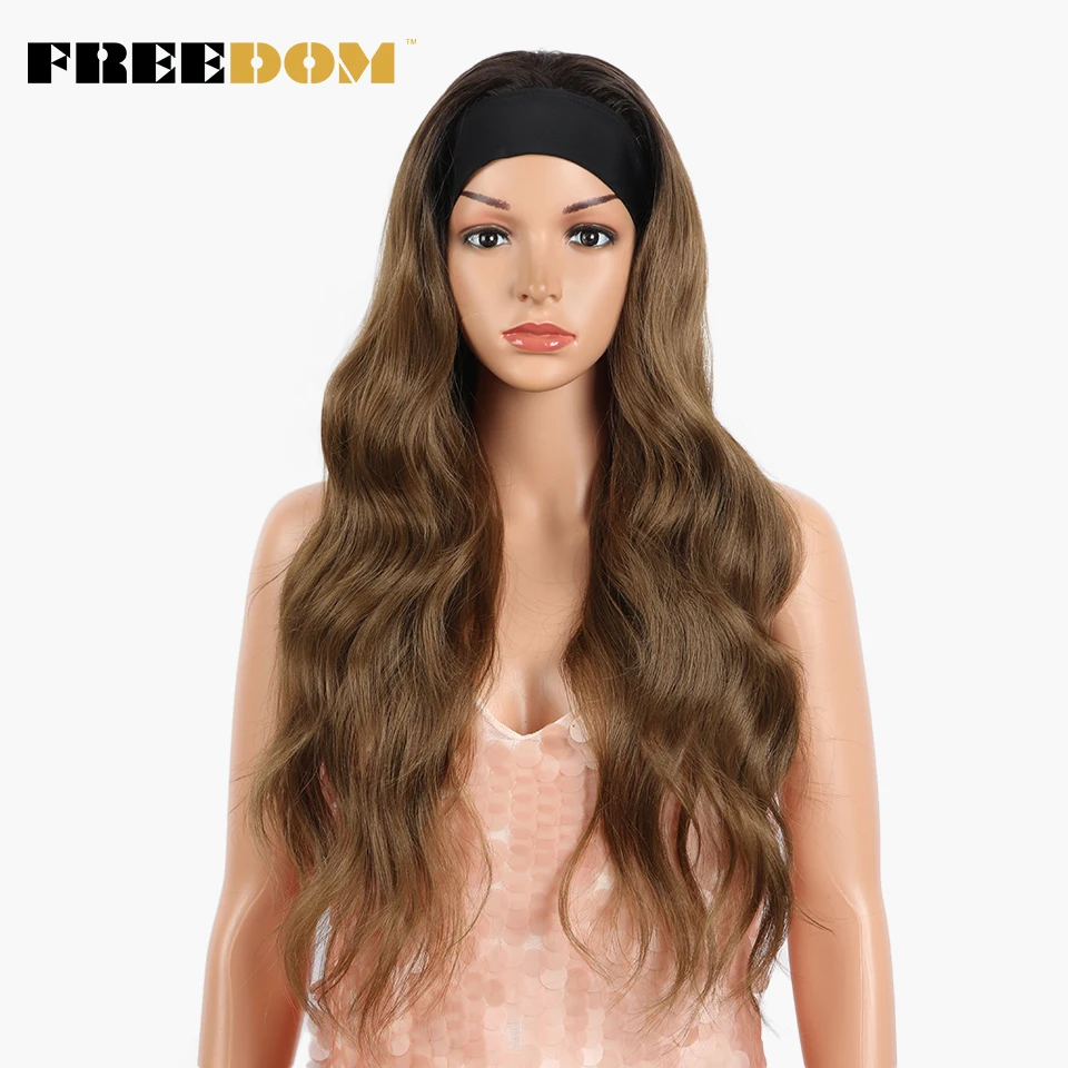 FREEDOM Long Wavy Headband Wig For Black Women None Replacement Ombre Blonde Brown Grey Body Wave Synthetic Headband Wig