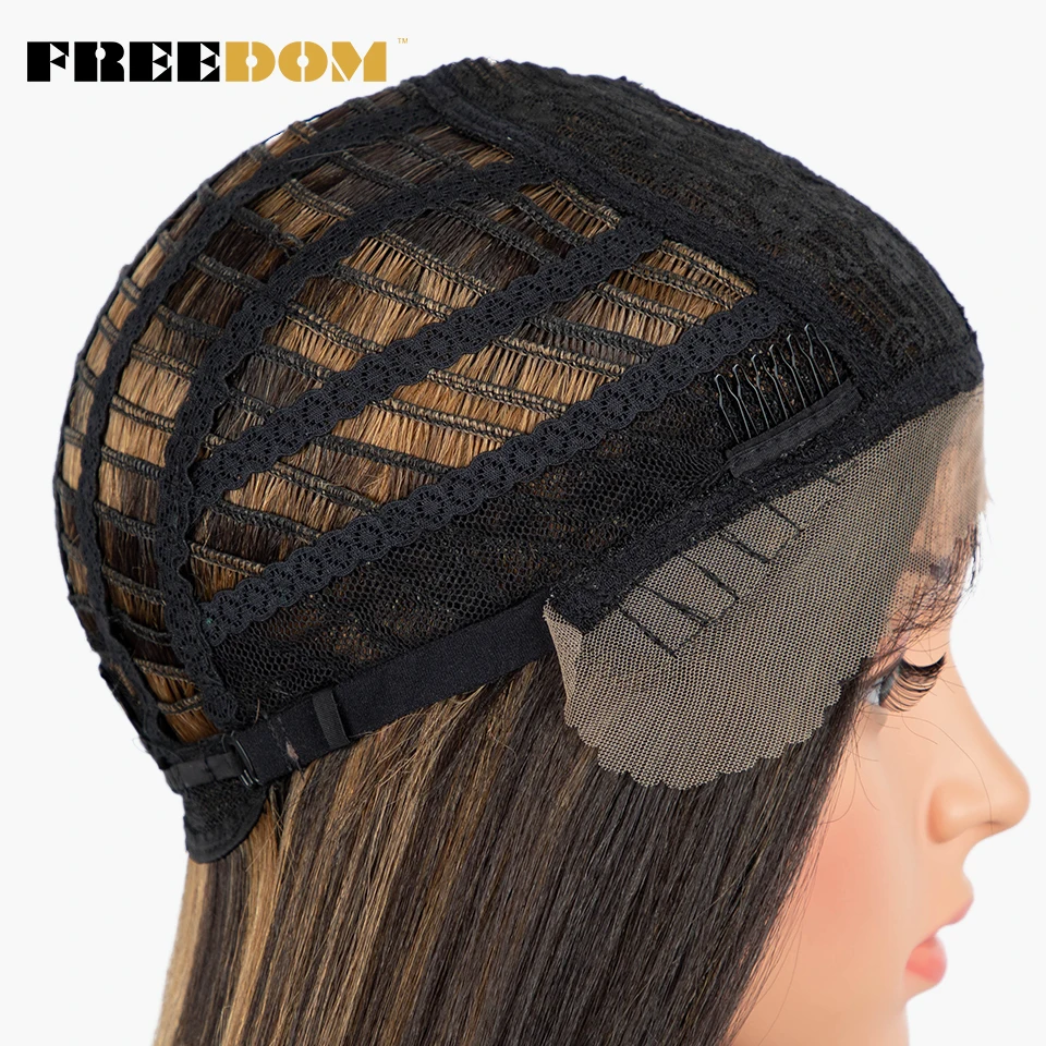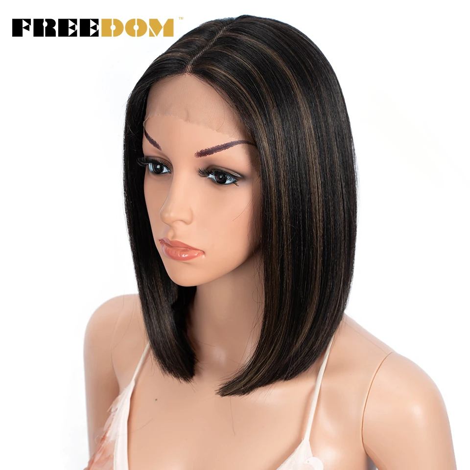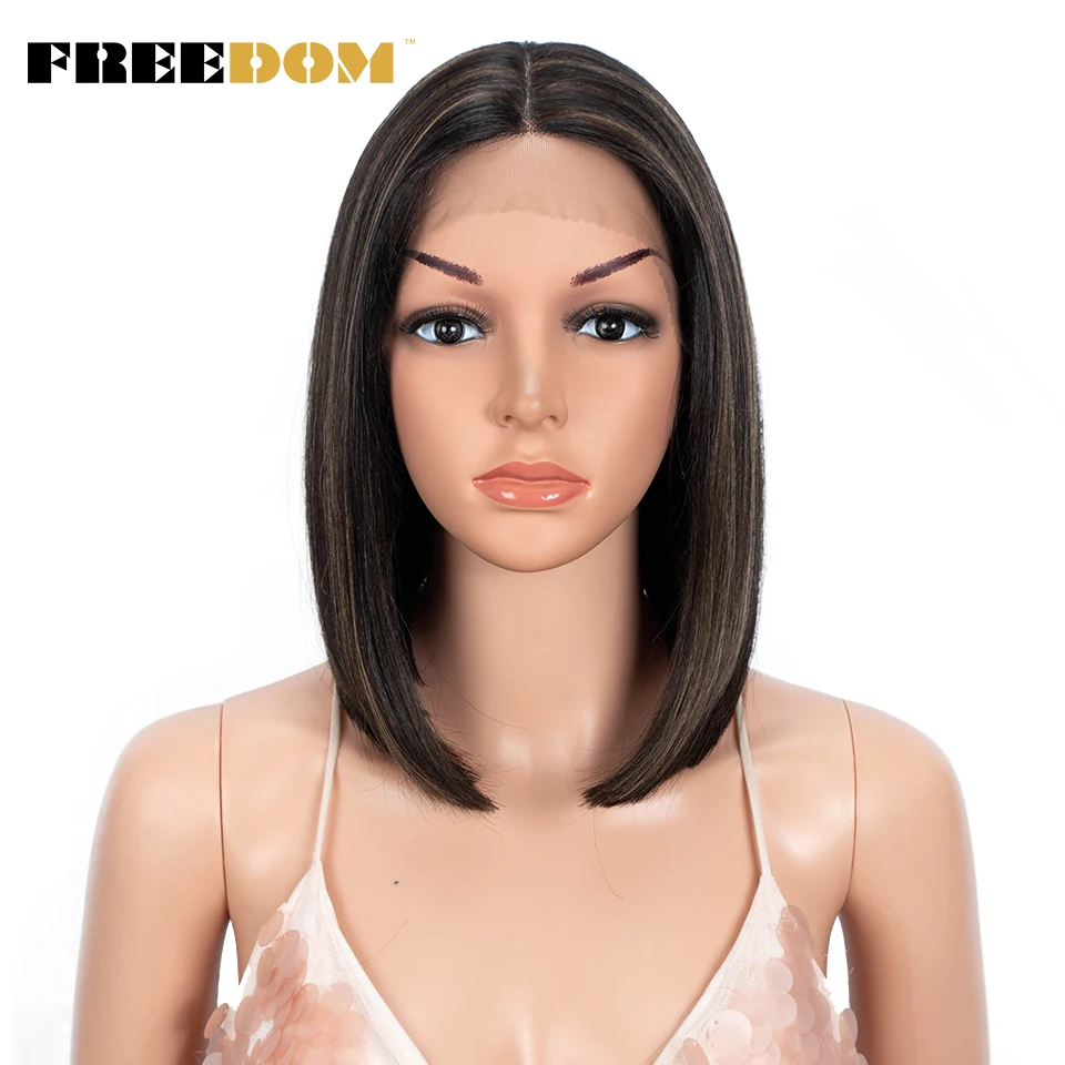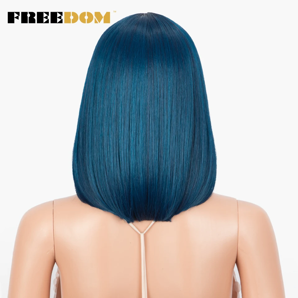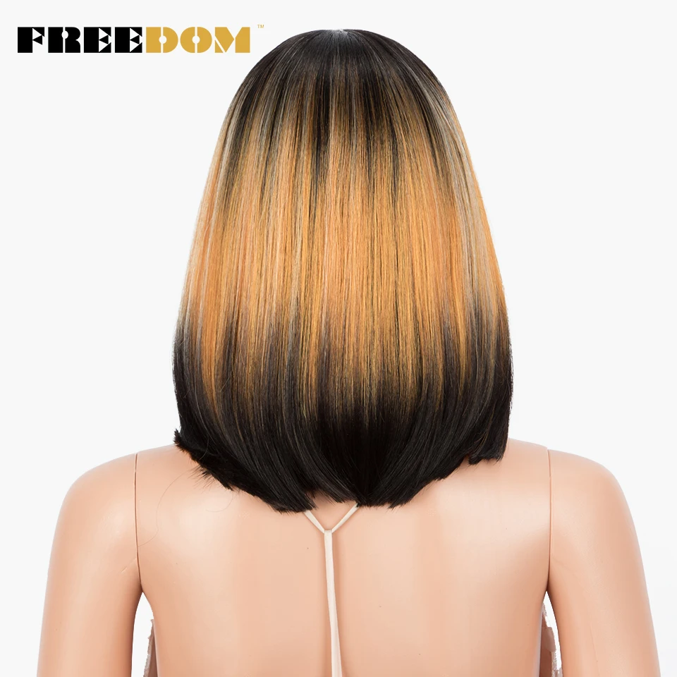 FREEDOM Short Bob Synthetic Lace Wig Straight Ombre Blue Pink Ginger Blonde Lace Wigs For Black Women Middle Part Cosplay Wig