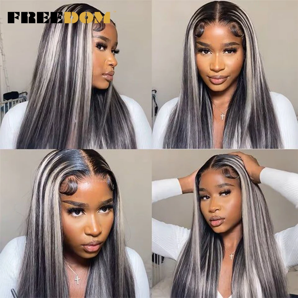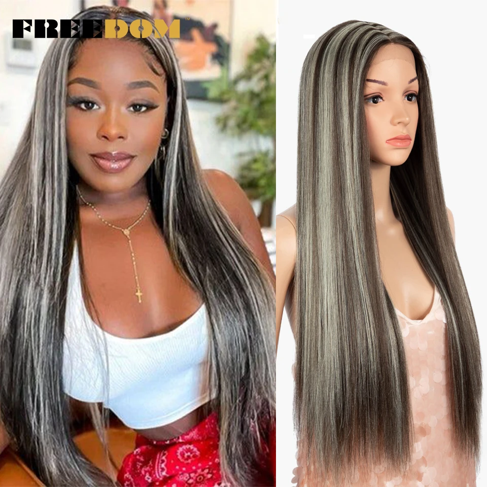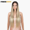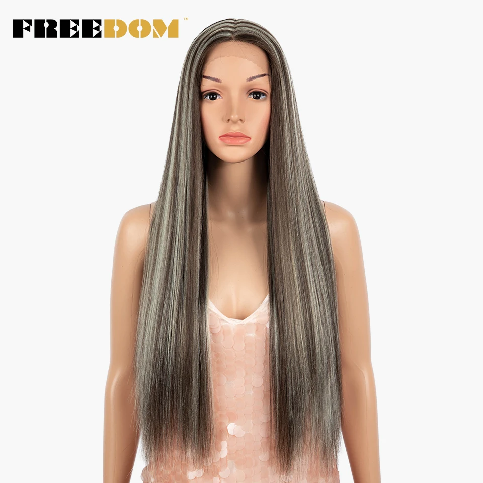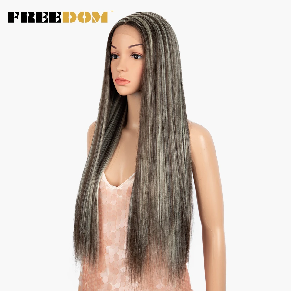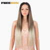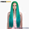 FREEDOM Straight Synthetic Lace Wigs Rainbow Green blue Colorful Ombre Long Straight Hair 30 Inch Heat Resistant Cosplay Wigs