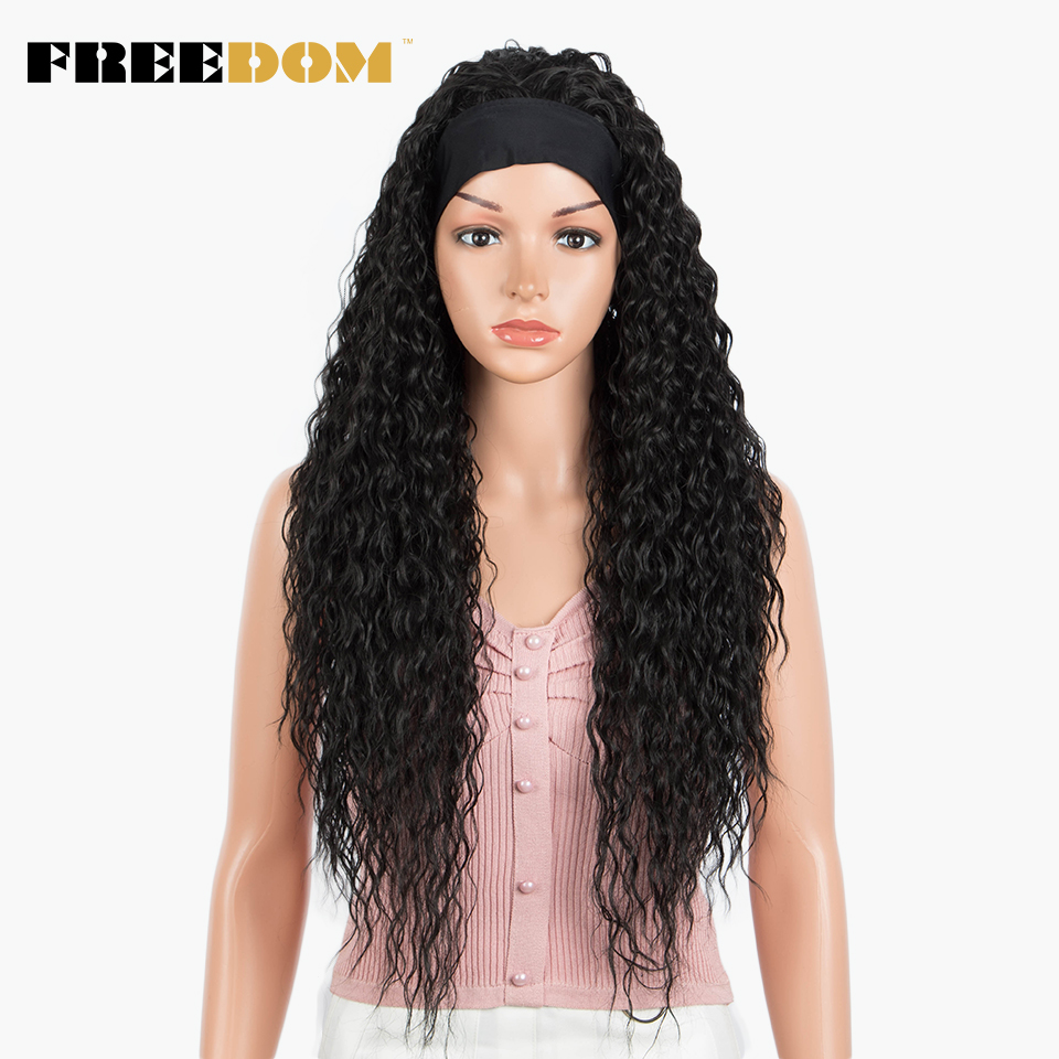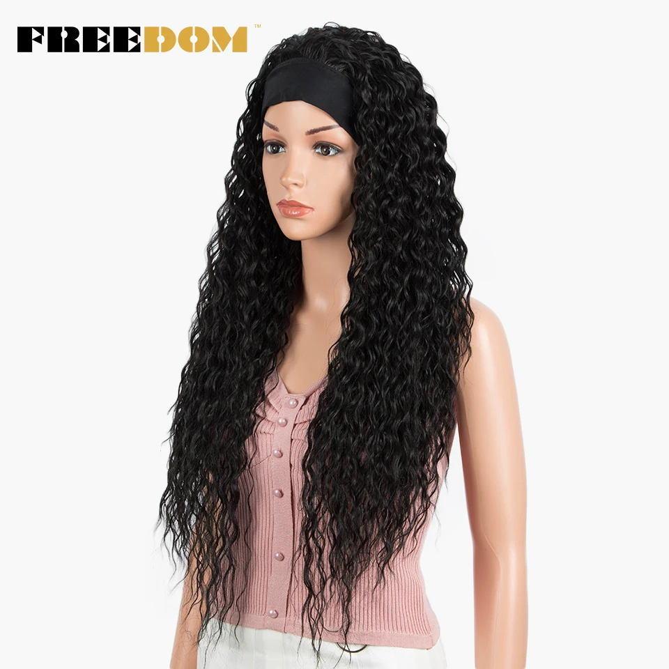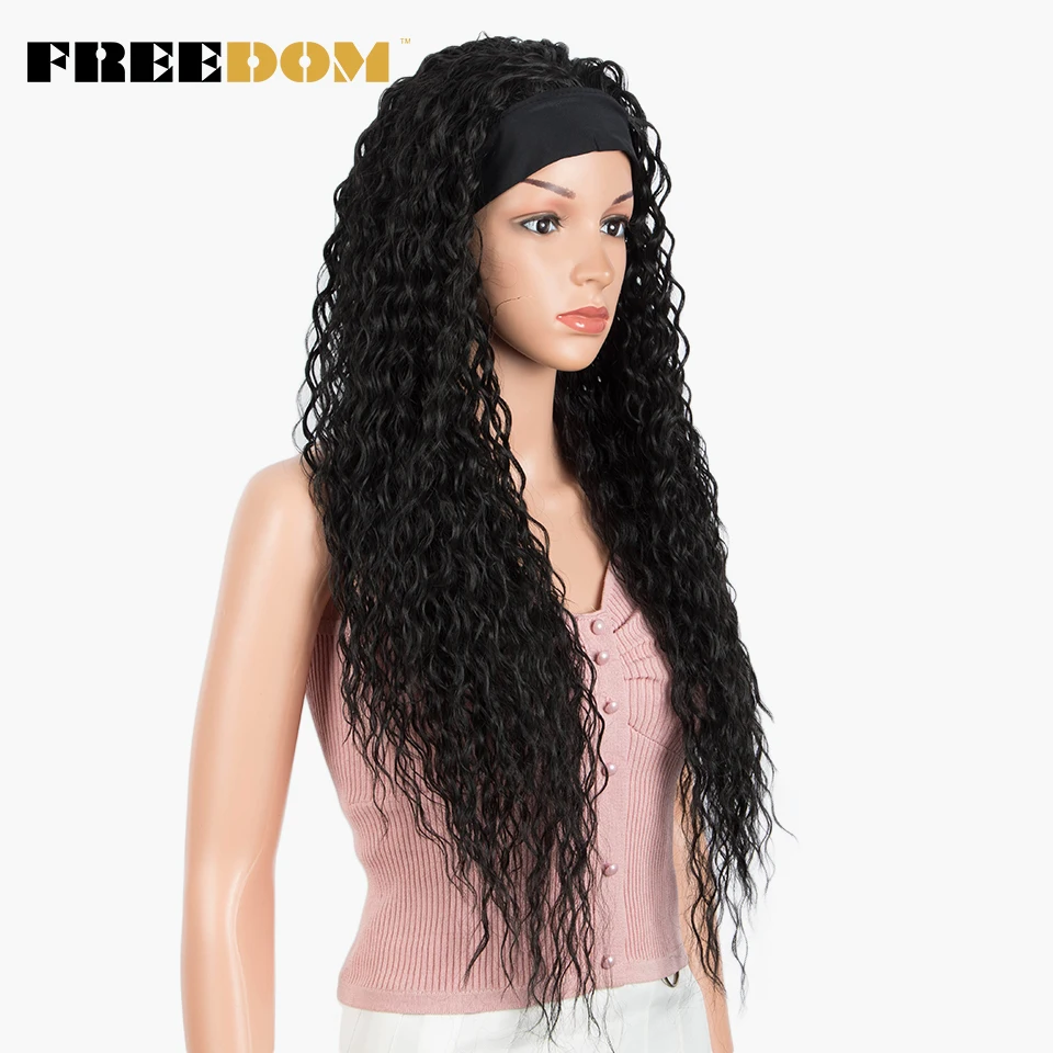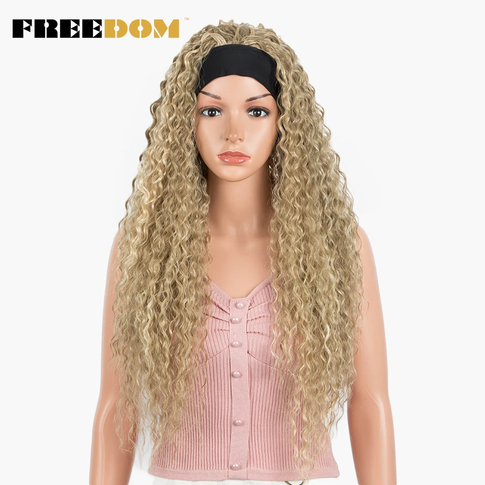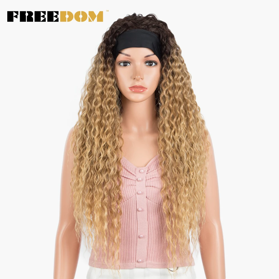 FREEDOM Synthetic Headband Wig Super Soft Long Ombre Blonde Curly Wigs 30 inch Deep Curly Wave Cosplay Wigs Heat Resistant Fiber