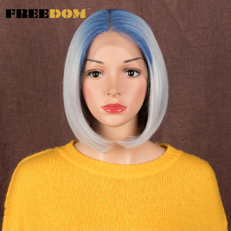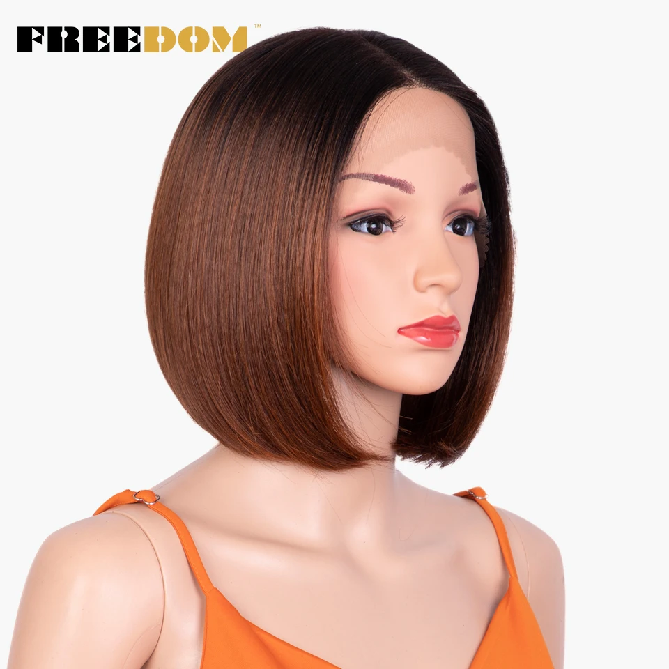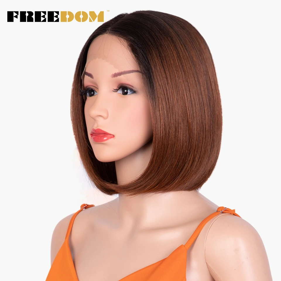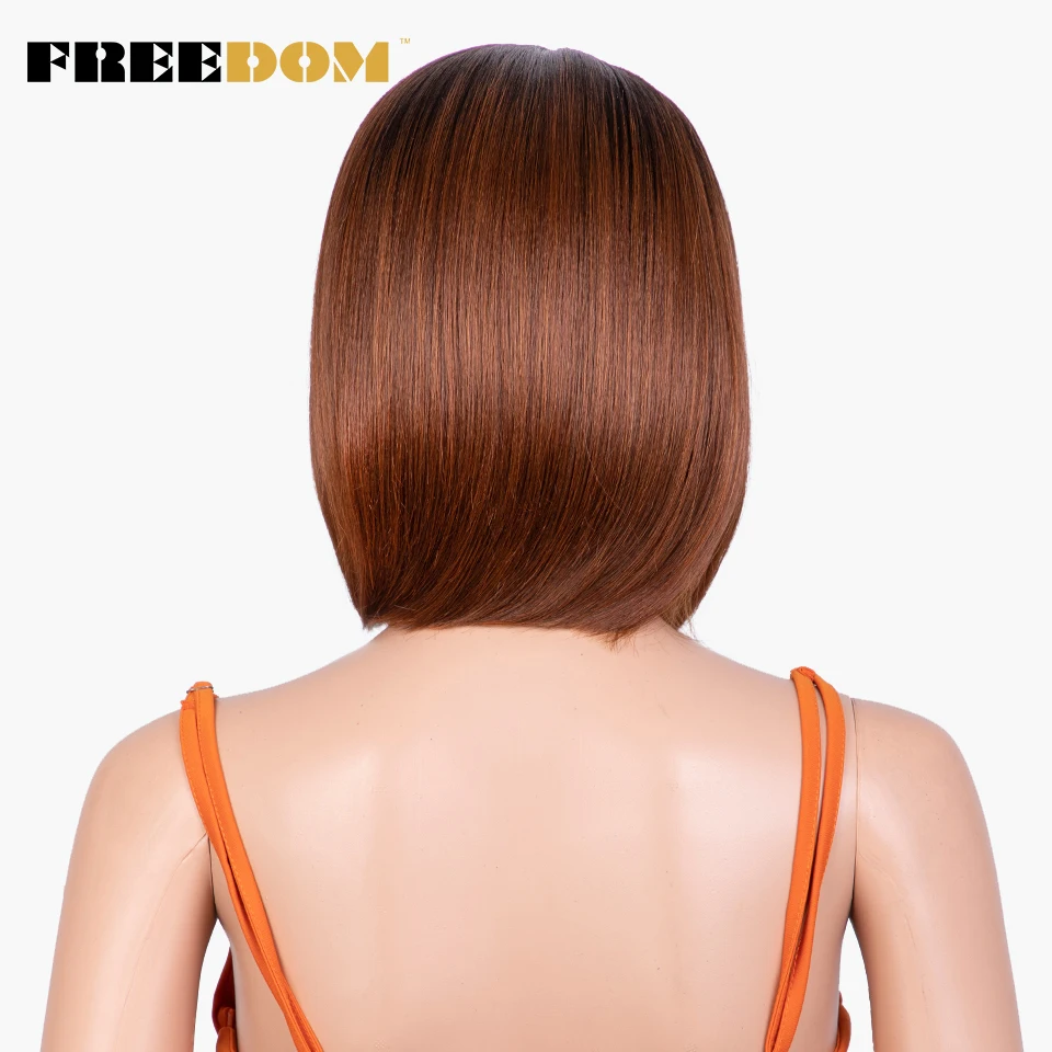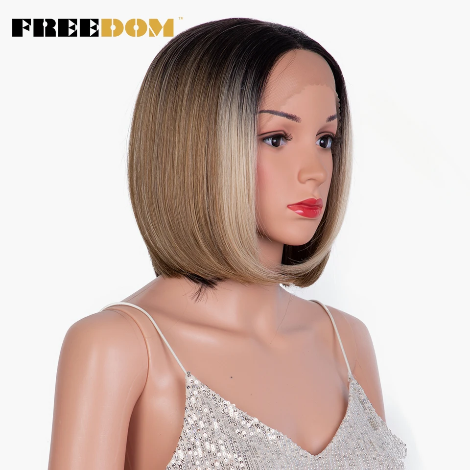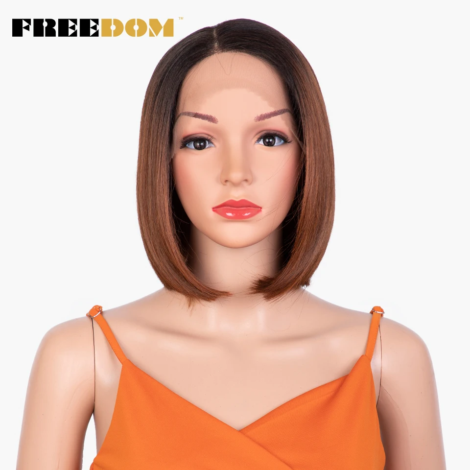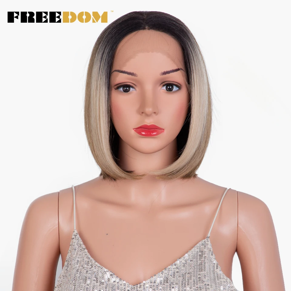FREEDOM Synthetic Lace Front Wig 12 inch Straight Short Bob Wig 4X4 Lace Wig Ombre Blonde Wigs For Black Women Cosplay Wig