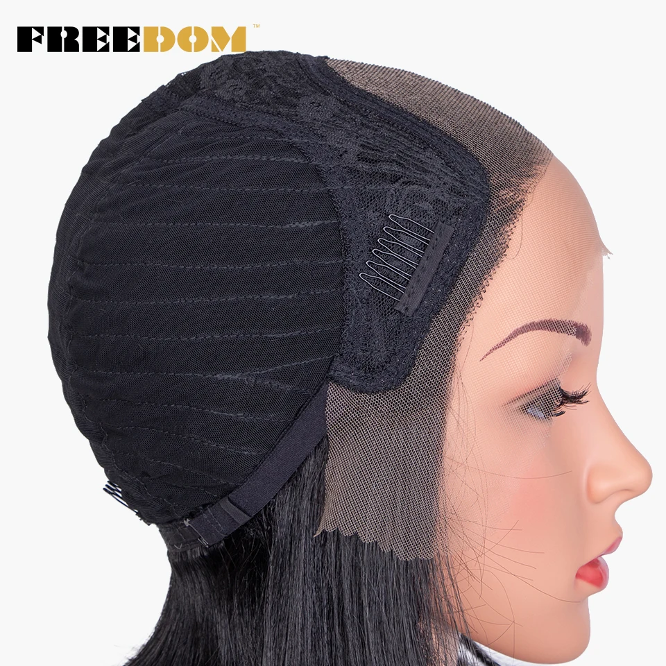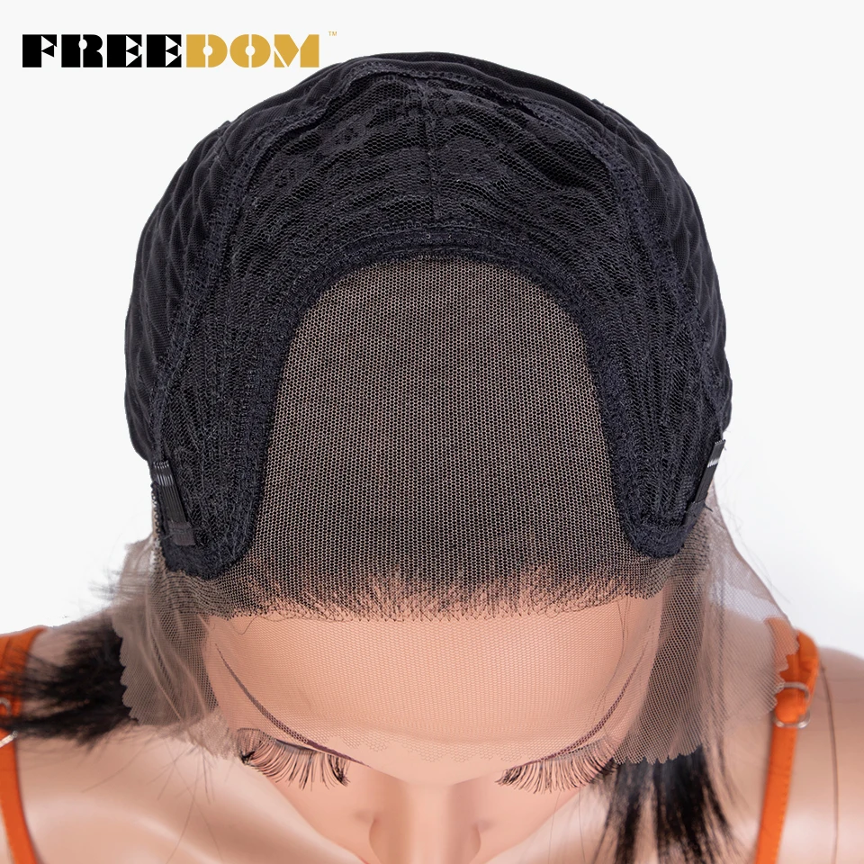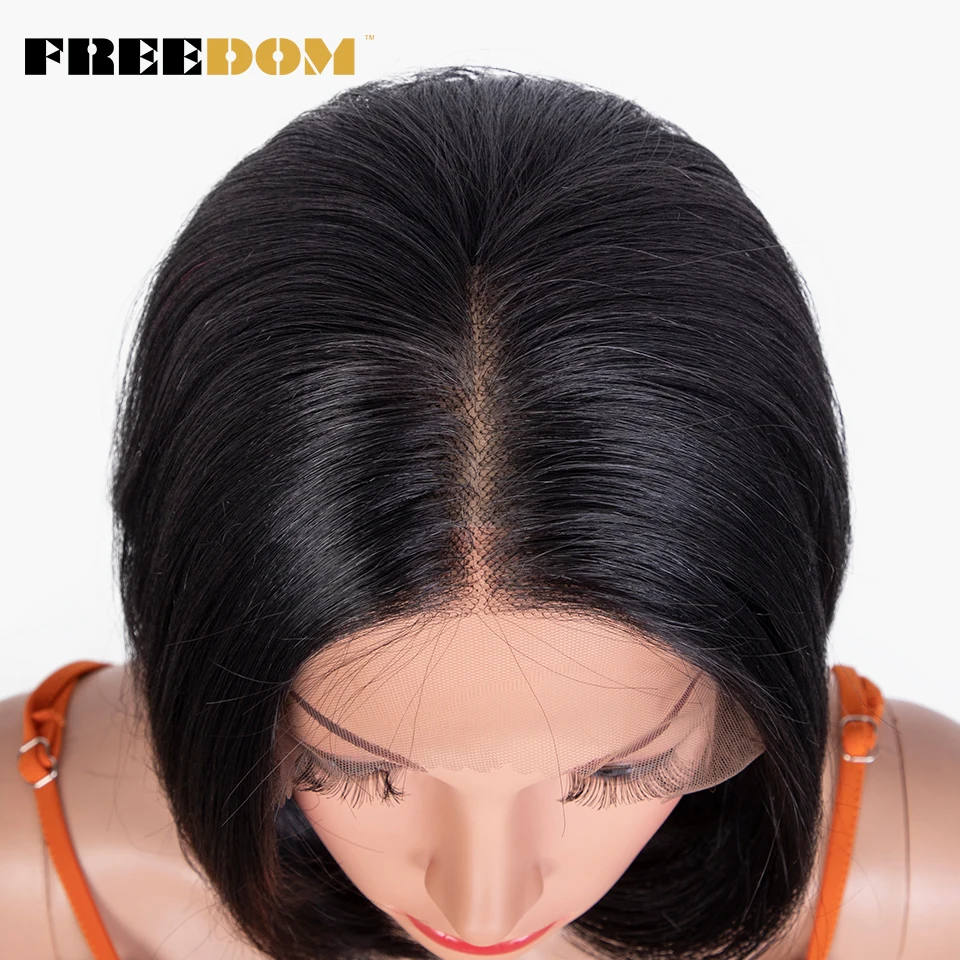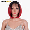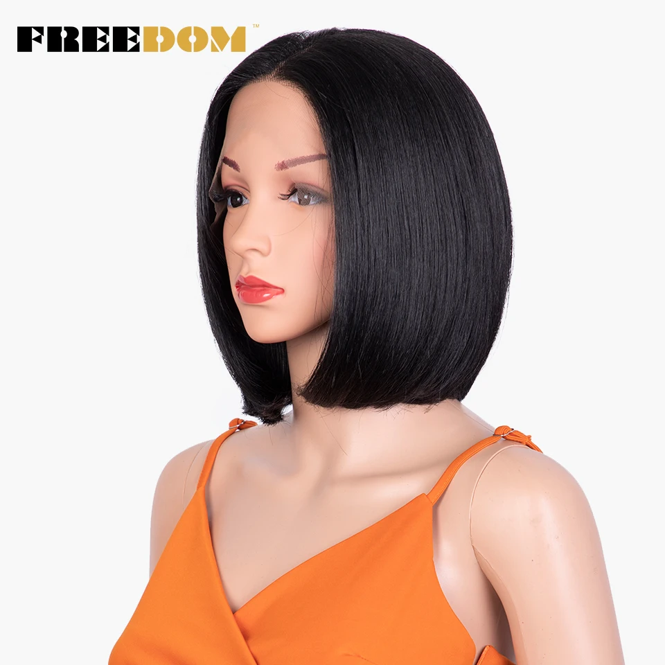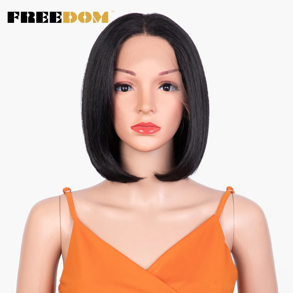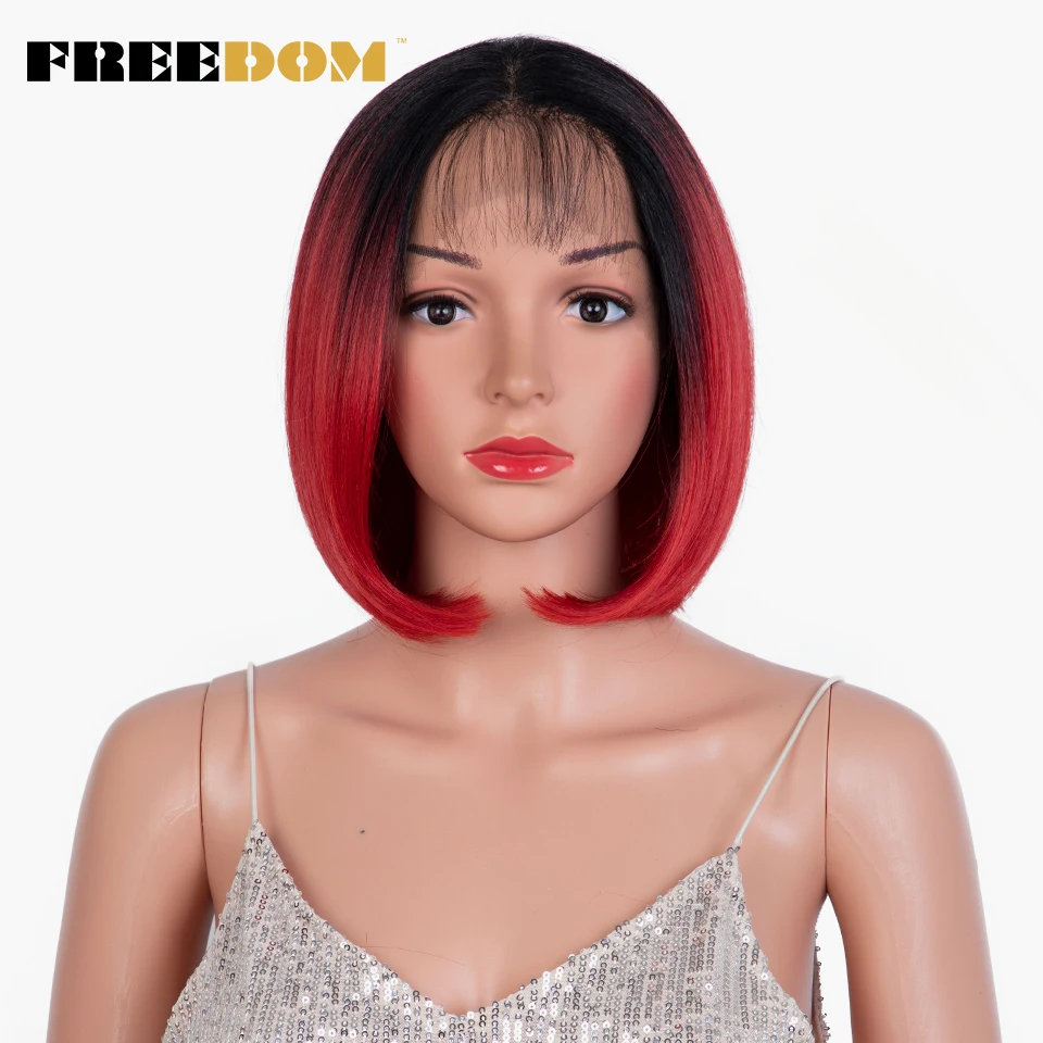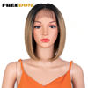 FREEDOM Synthetic Lace Front Wig 12 inch Straight Short Bob Wig 4X4 Lace Wig Ombre Blonde Wigs For Black Women Cosplay Wig