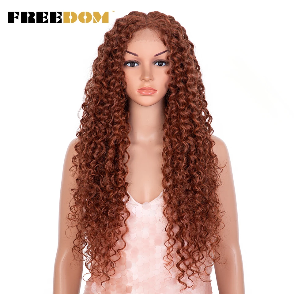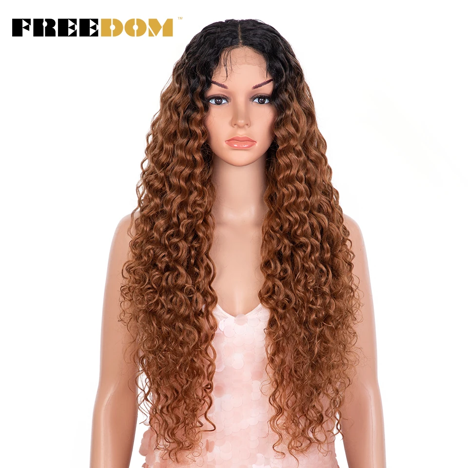 FREEDOM Synthetic Lace Front Wig Long Curly Wig 30 inch Ombre Blonde Ginger Lace Wigs For Black Women Cosplay Wigs