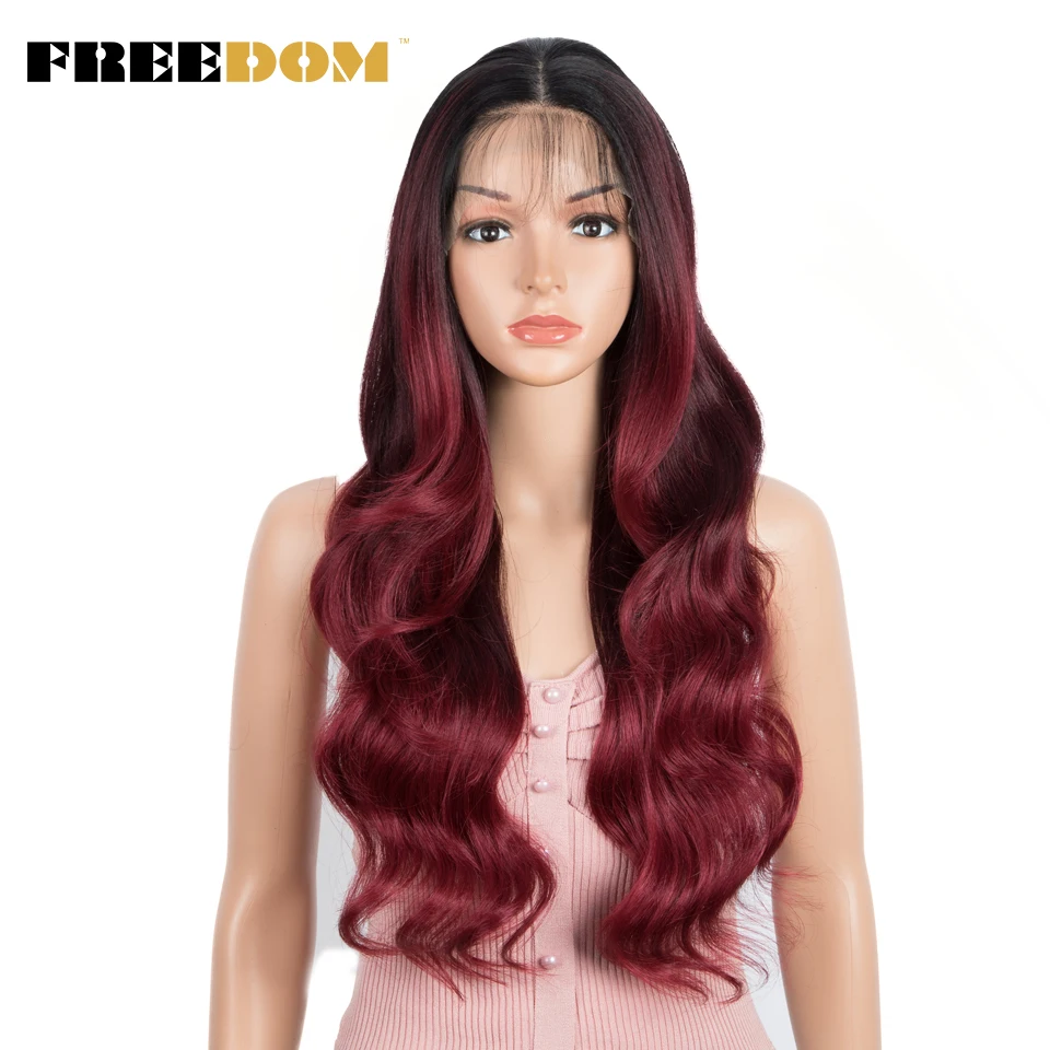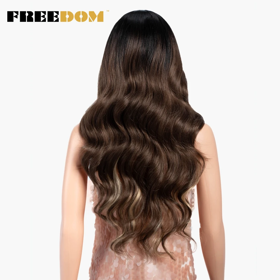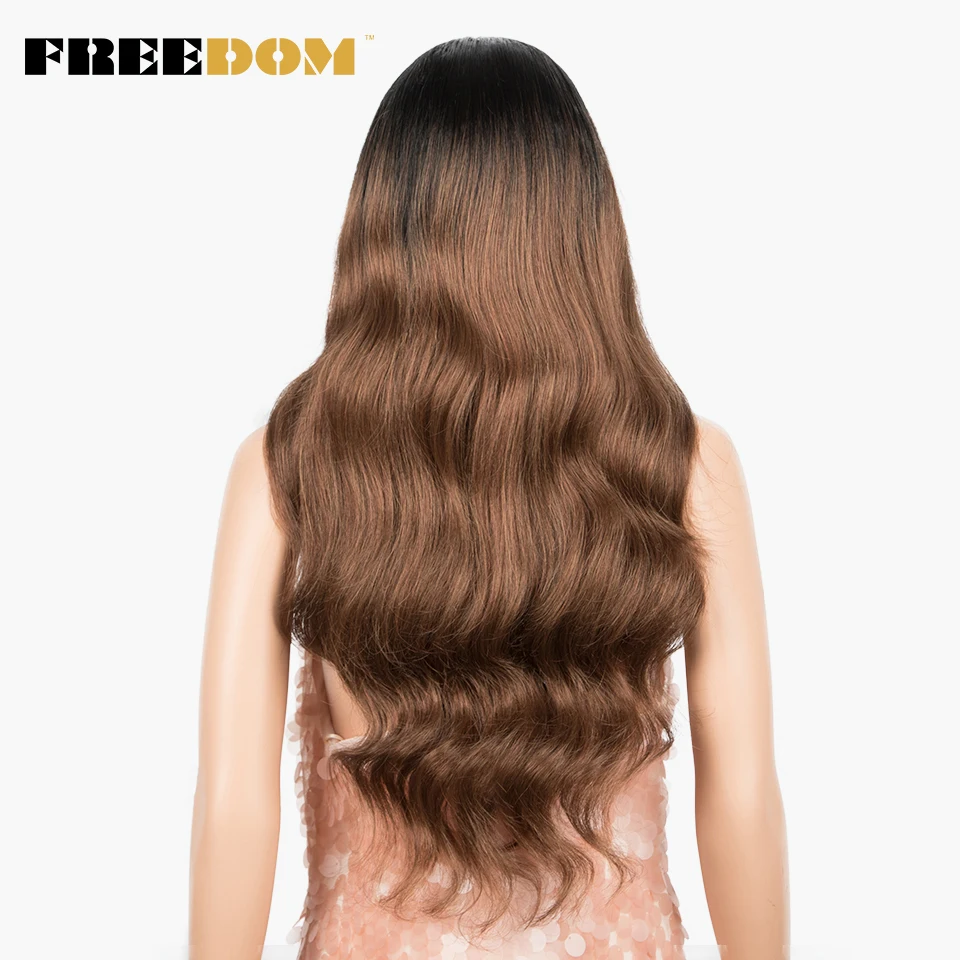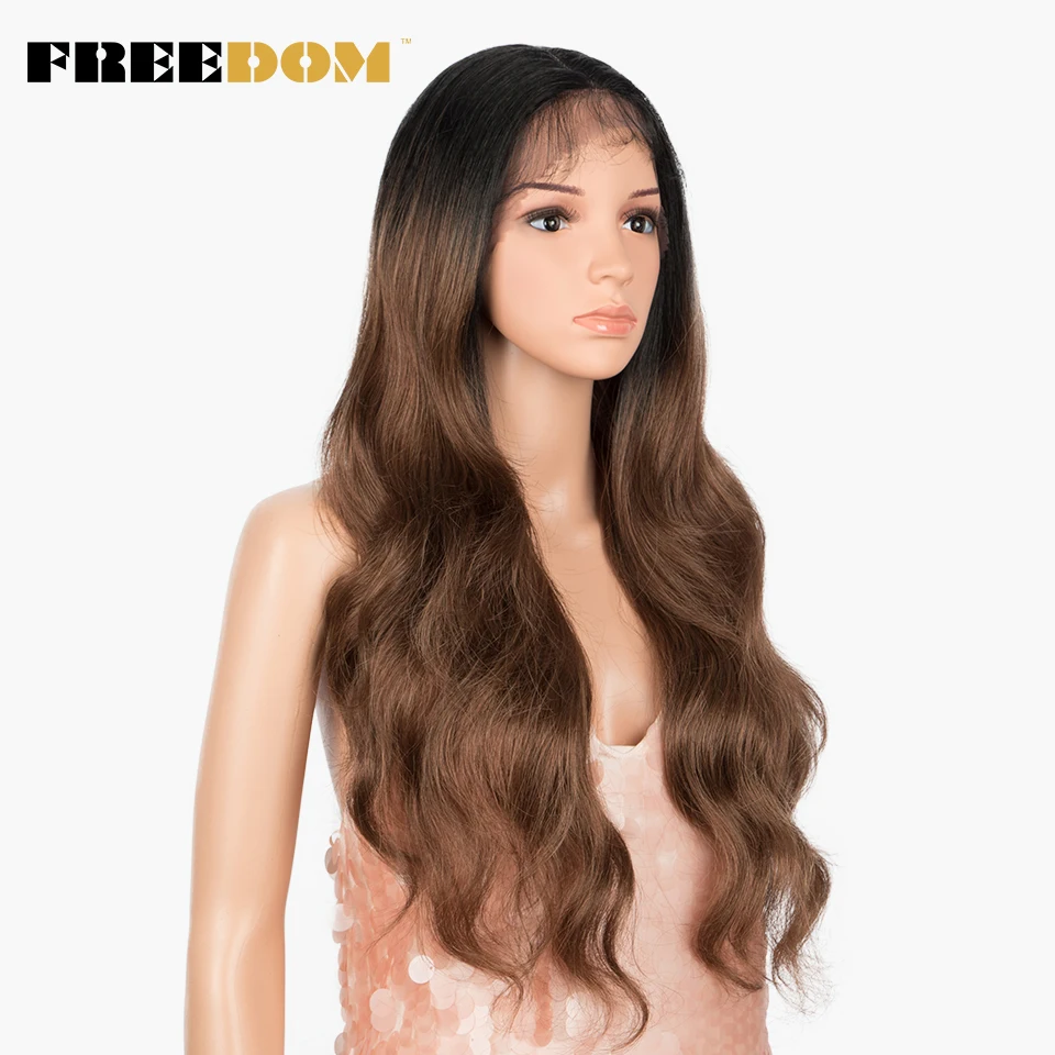 FREEDOM Synthetic Lace Front Wigs Body Wave Ombre Blonde Brown Ginger Lace Wigs For Black Women Heat Resistant Cosplay Wigs