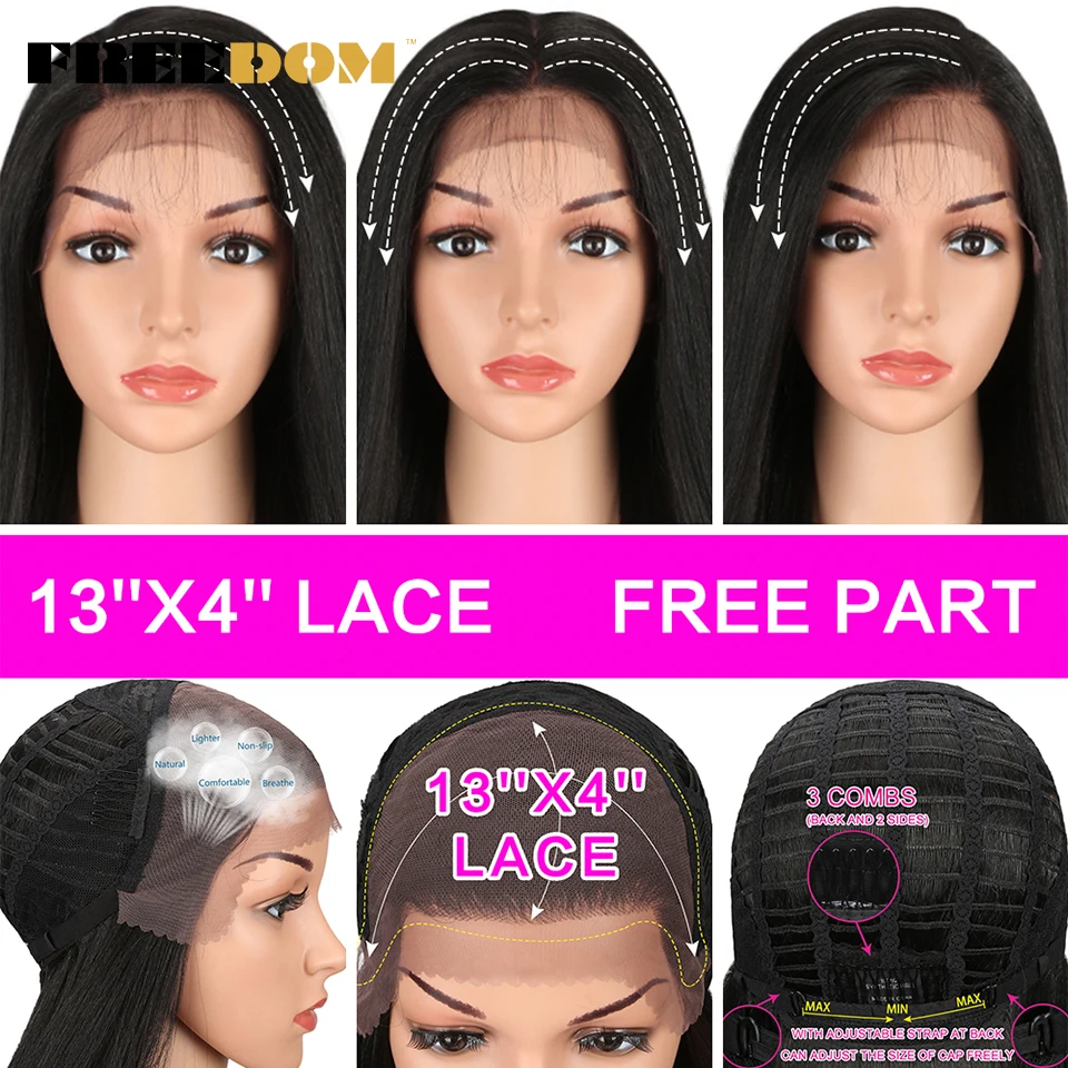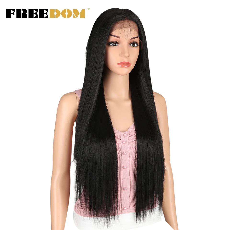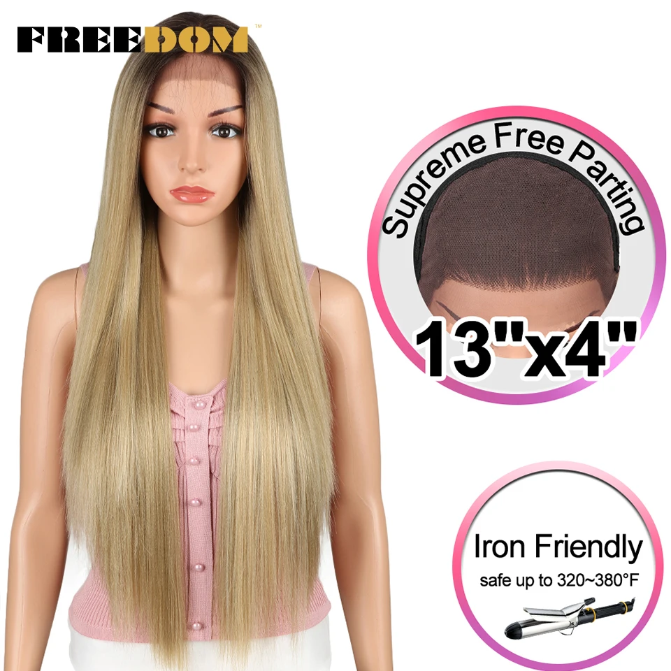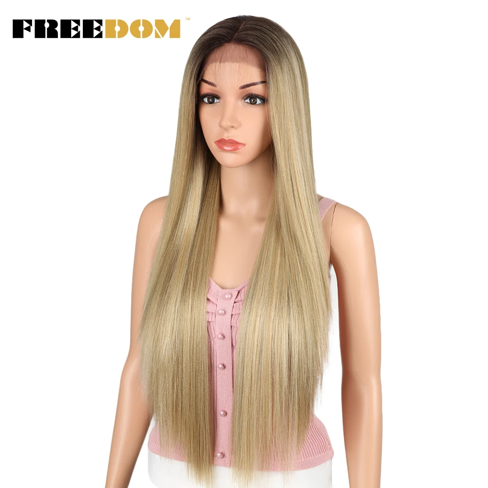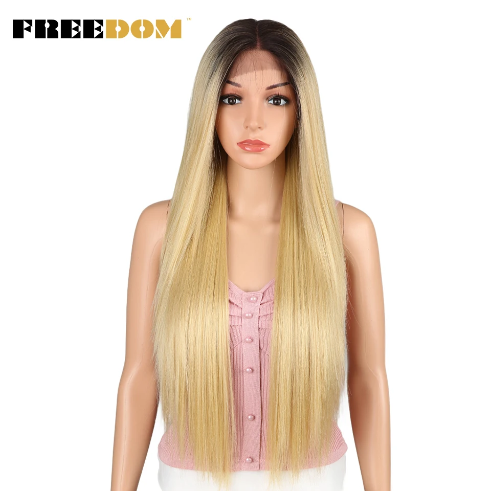 FREEDOM Synthetic Lace Front Wigs For Black Women 32inch Long Straight Wigs Ombre Blond Cosplay Wig Free Part Synthetic Lace Wig