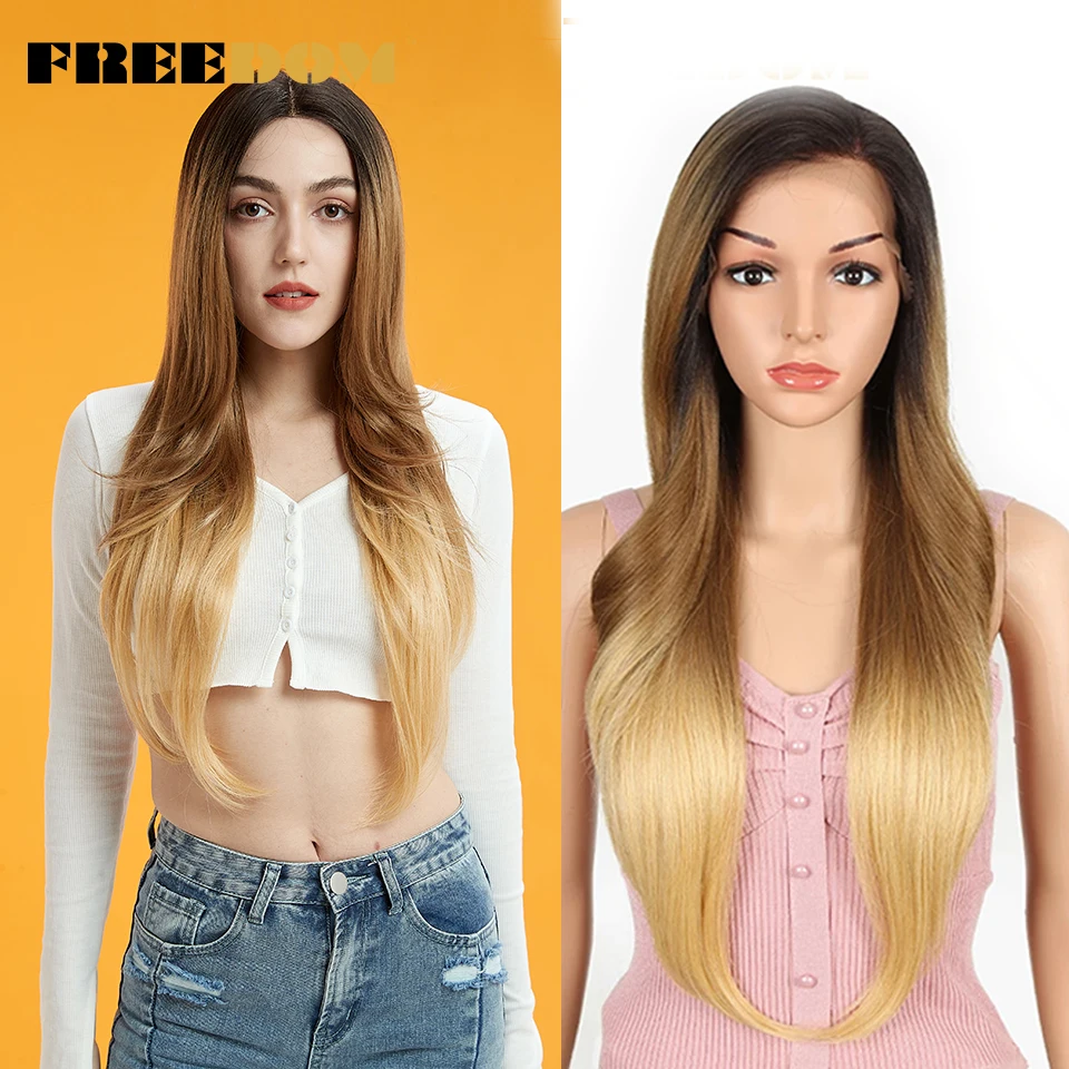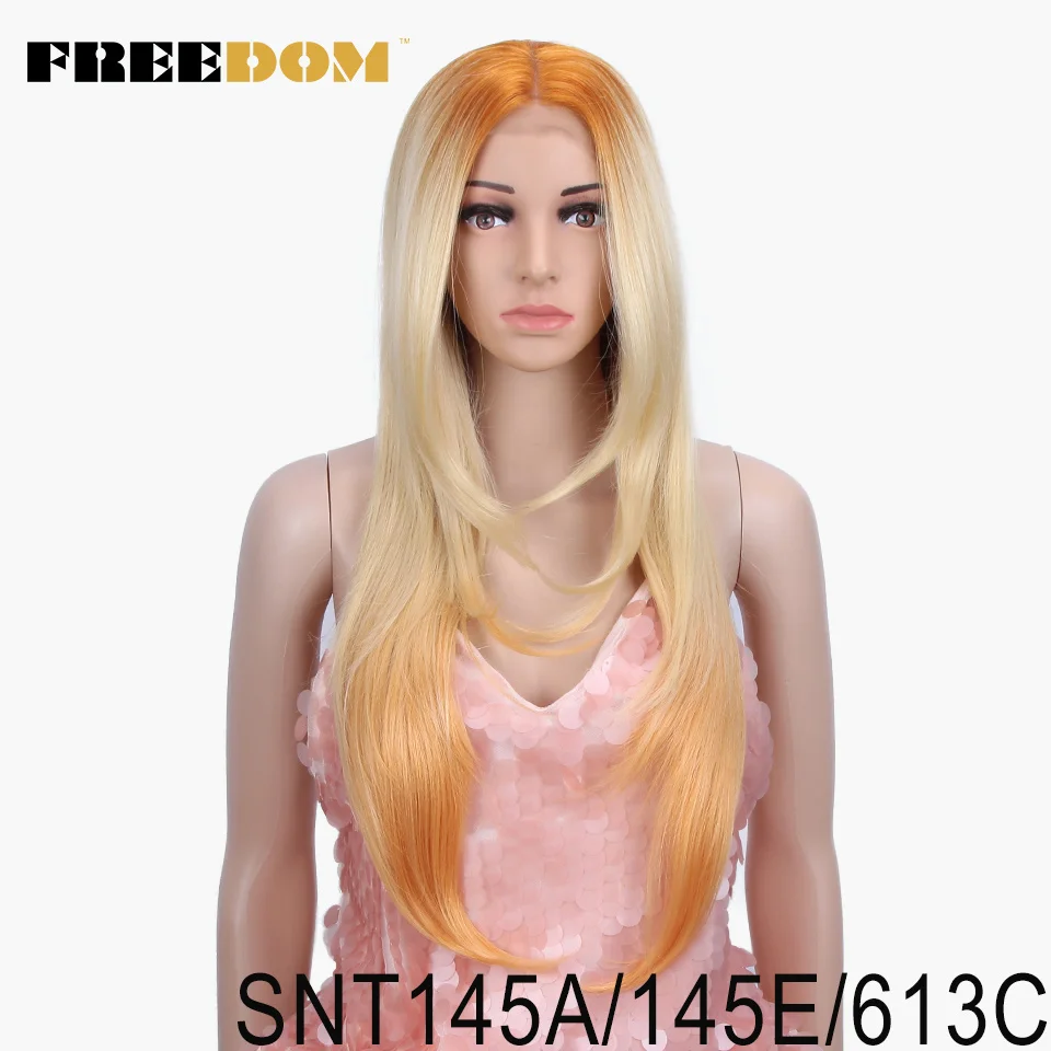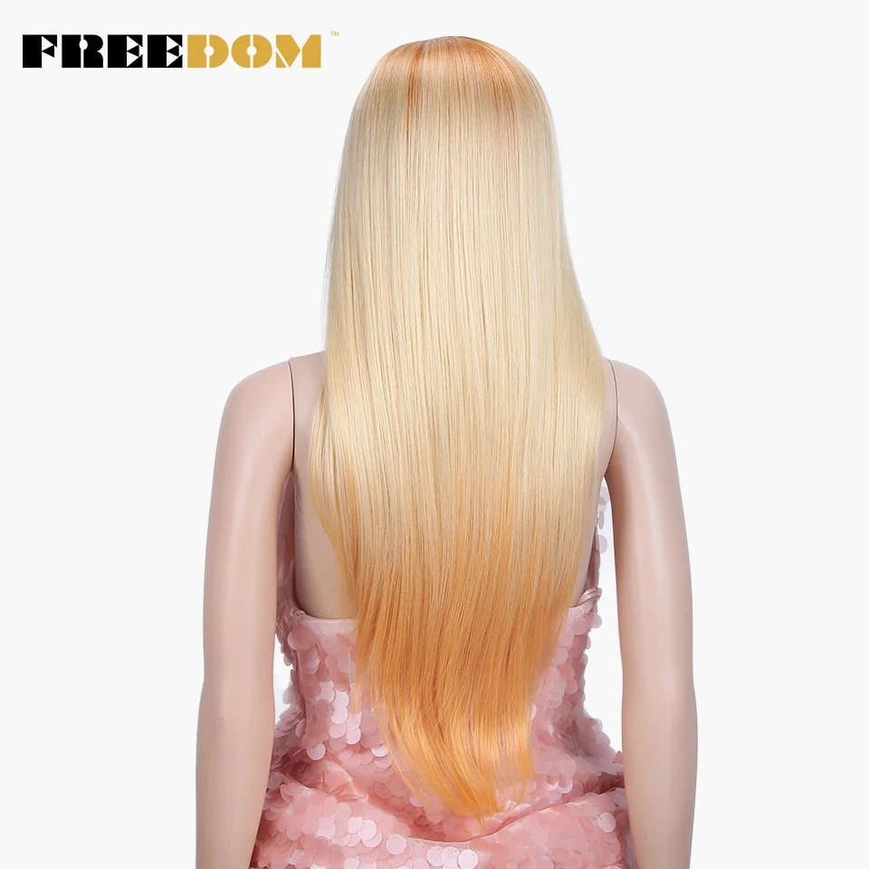 FREEDOM Synthetic Lace Front Wigs For Black Women Heat Resistant Straight 613 Orange Ombre Blonde 13×4 Lace Front Cosplay Wigs