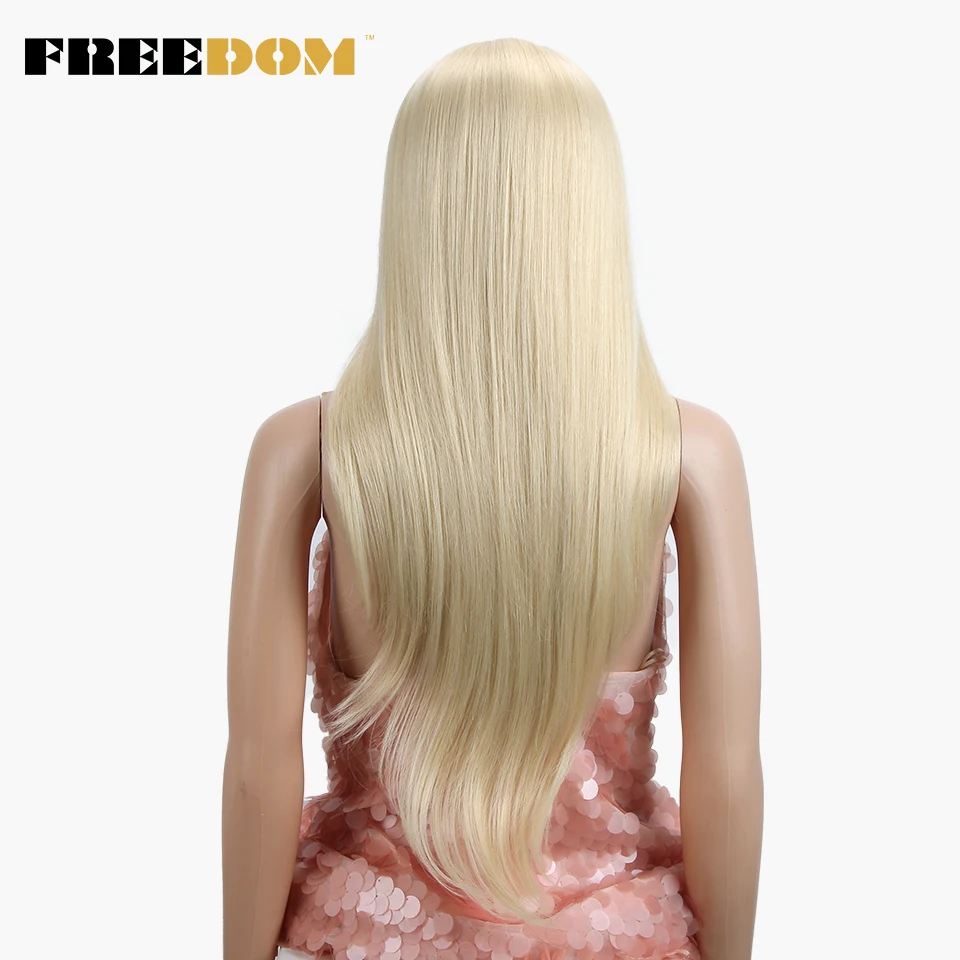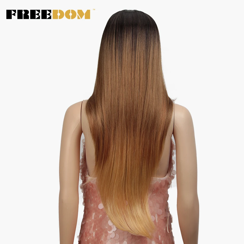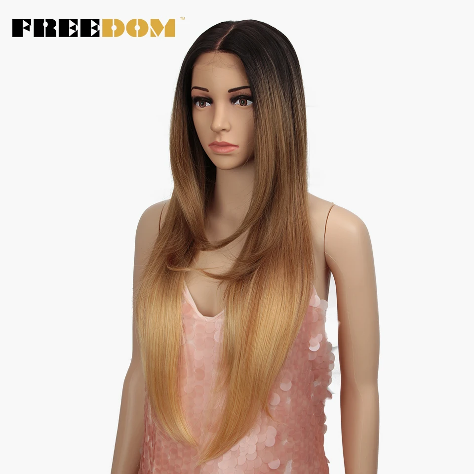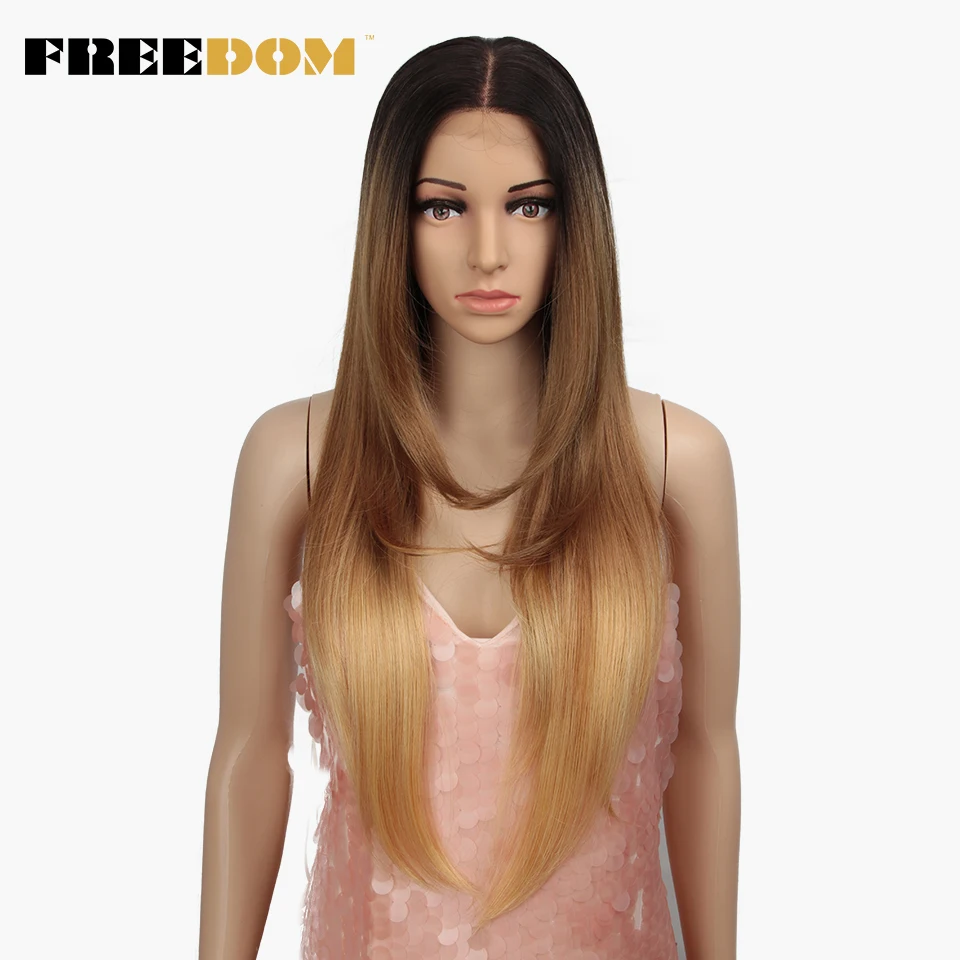 FREEDOM Synthetic Lace Front Wigs For Black Women Heat Resistant Straight 613 Orange Ombre Blonde 13×4 Lace Front Cosplay Wigs