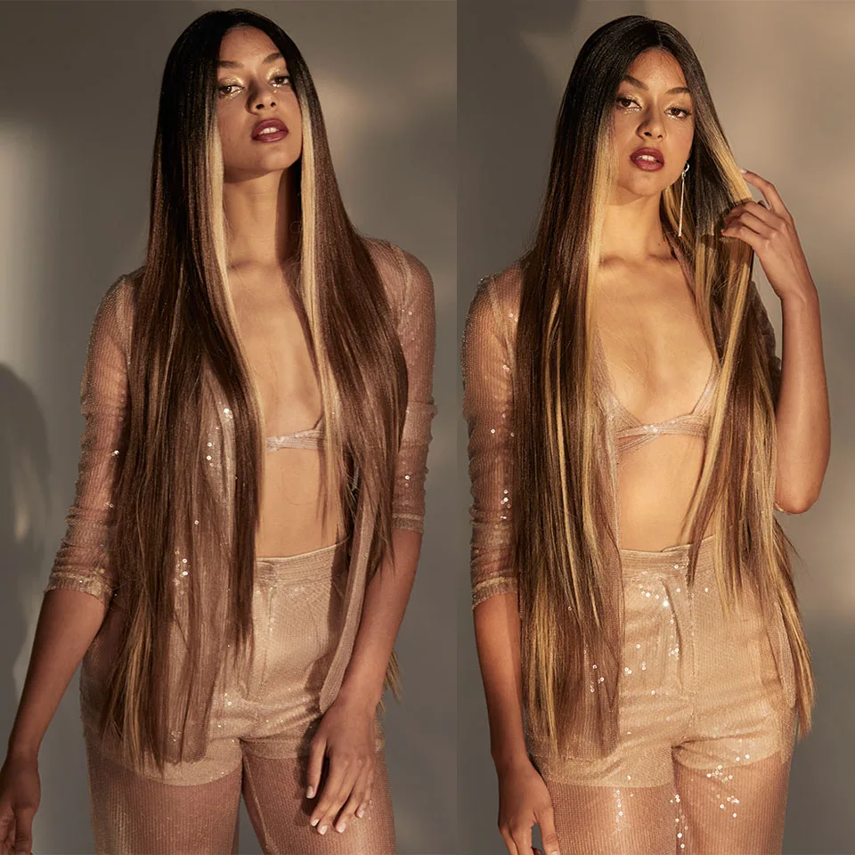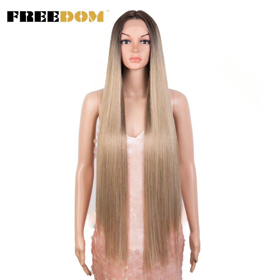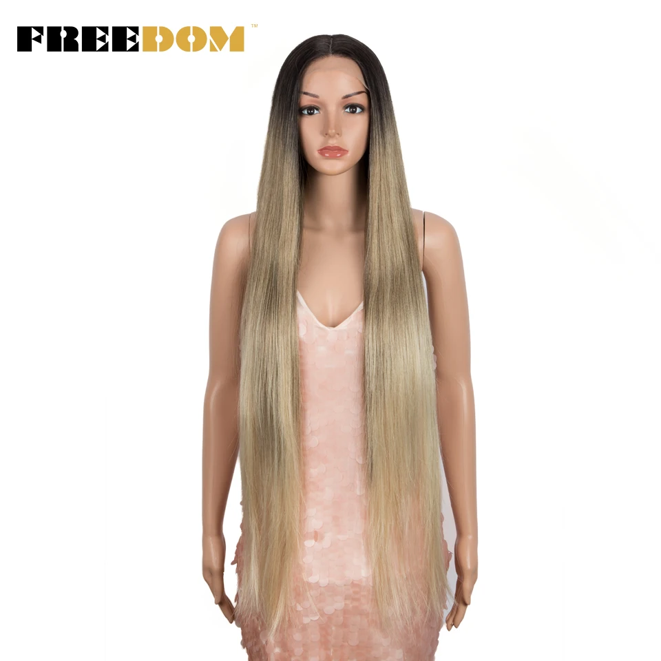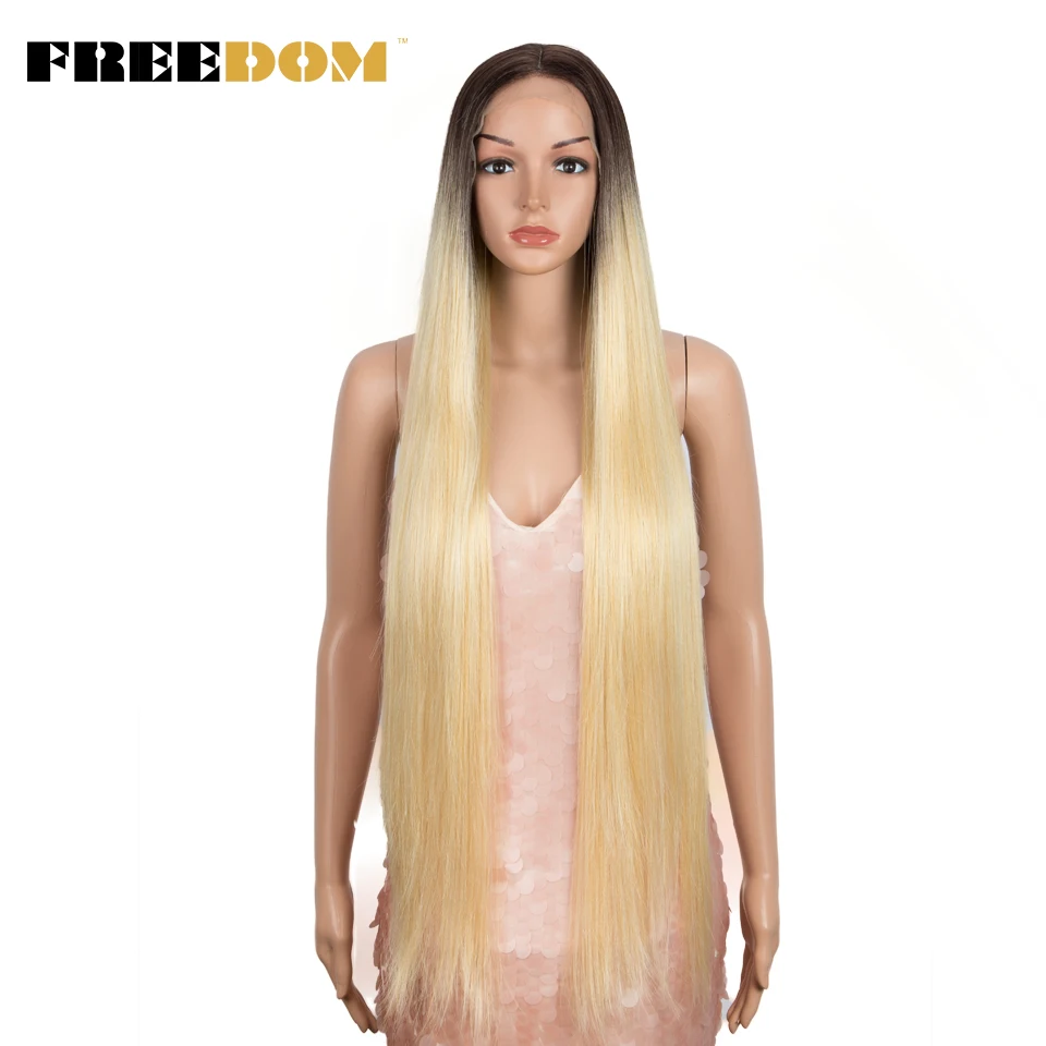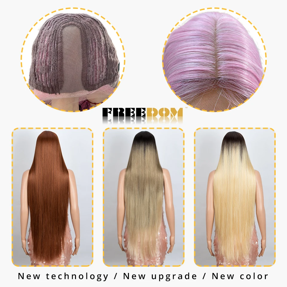 FREEDOM Synthetic Lace Front Wigs For Women Straight Hair Synthetic Lace Wigs 38 Inch Ombre Long Cosplay Wigs Blonde Pink Wig