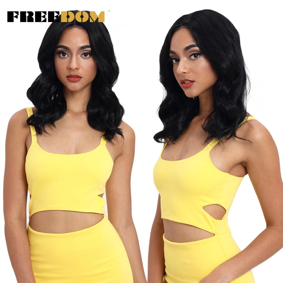 FREEDOM Synthetic Lace Front Wigs Middle Part Natural Wave Wavy Wig 20 Inch Wigs For Black Women Ombre Brown Mixed Cosplay Wigs
