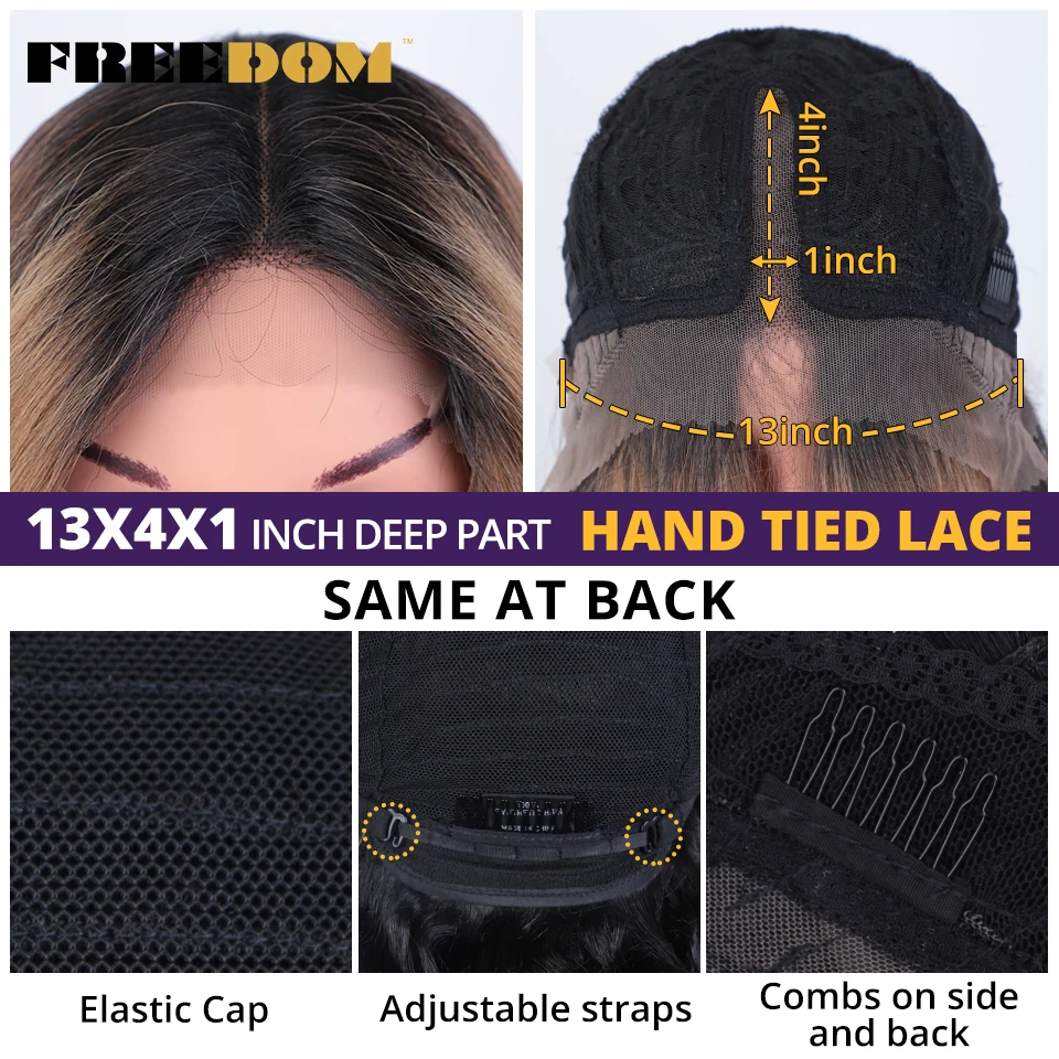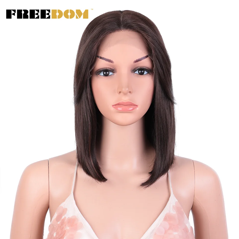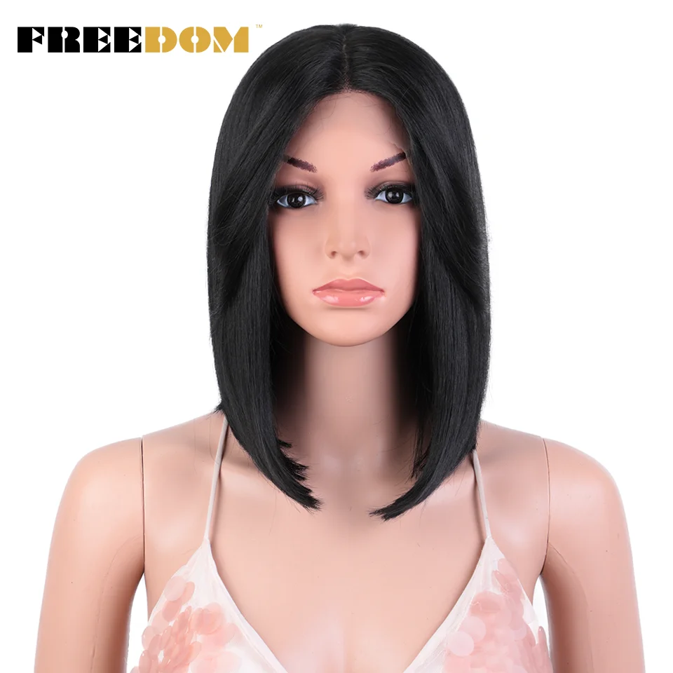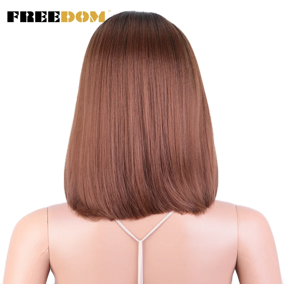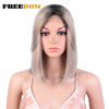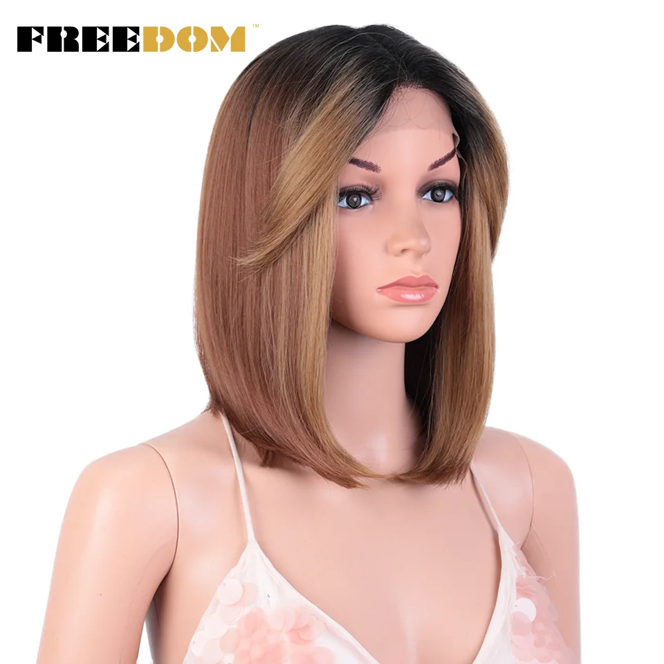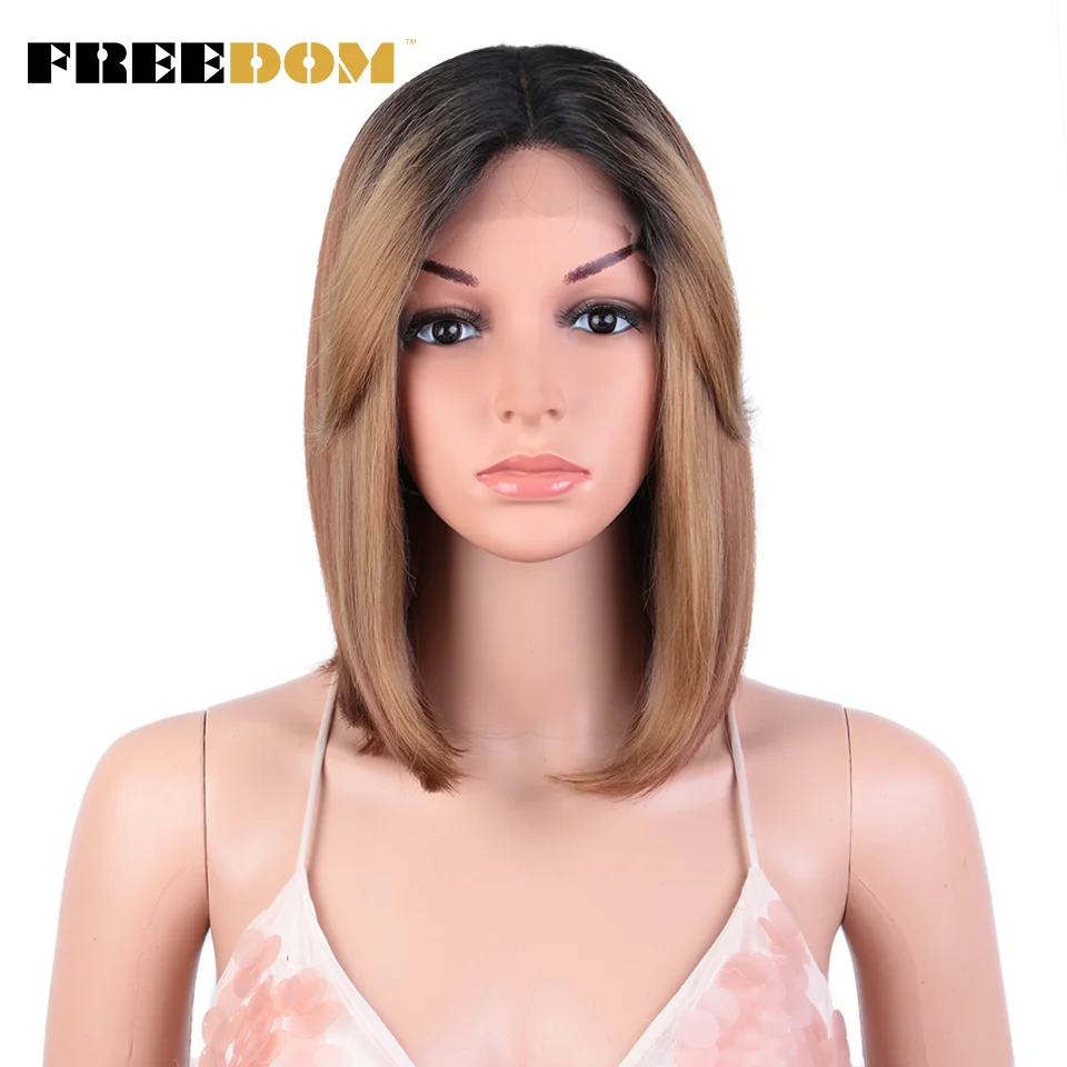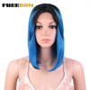 FREEDOM Synthetic Lace Front Wigs Straight Short Bob Wig With Bangs Ombre Blonde Blue Lace Wigs For Black Women Cosplay Wigs