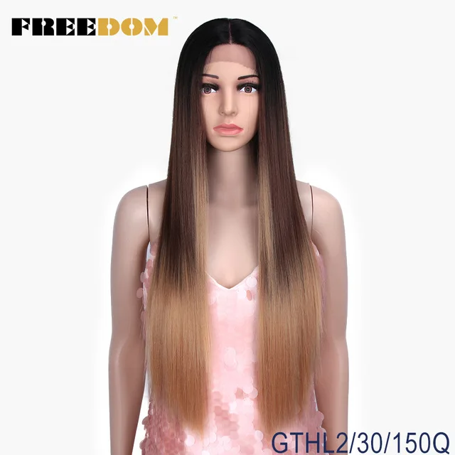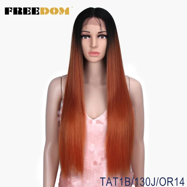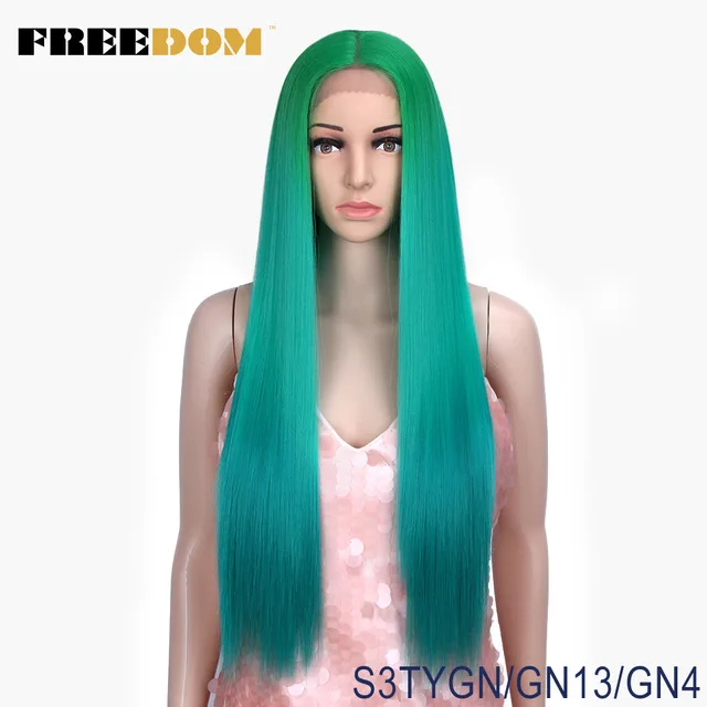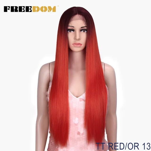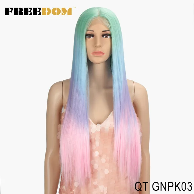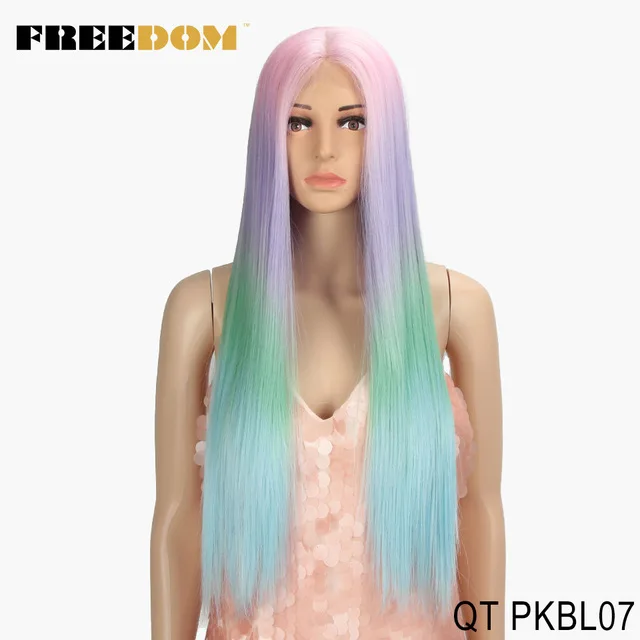 FREEDOM Synthetic Lace Wig 30 Inch Long Straight Wigs Soft Rainbow Colorful Blue Blonde Ginger Wigs For Black Women Cosplay Wig