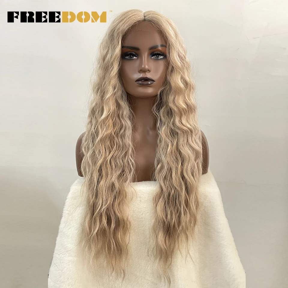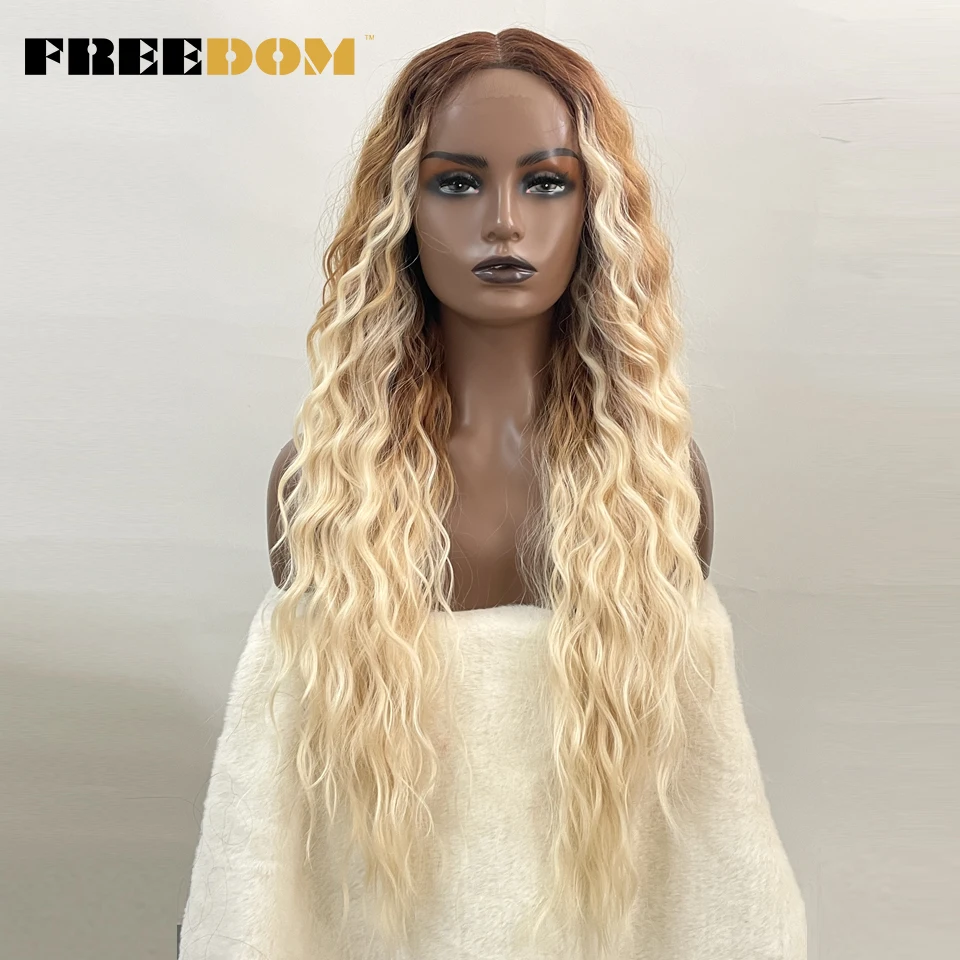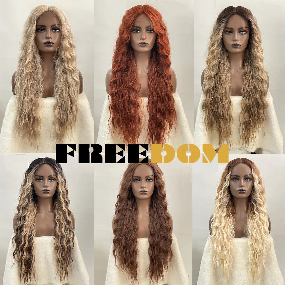 FREEDOM Synthetic Lace Wig Long Deep Wavy Ombre Blonde Ginger Lace Wigs For Black Women Heat Resistant Cosplay Wigs
