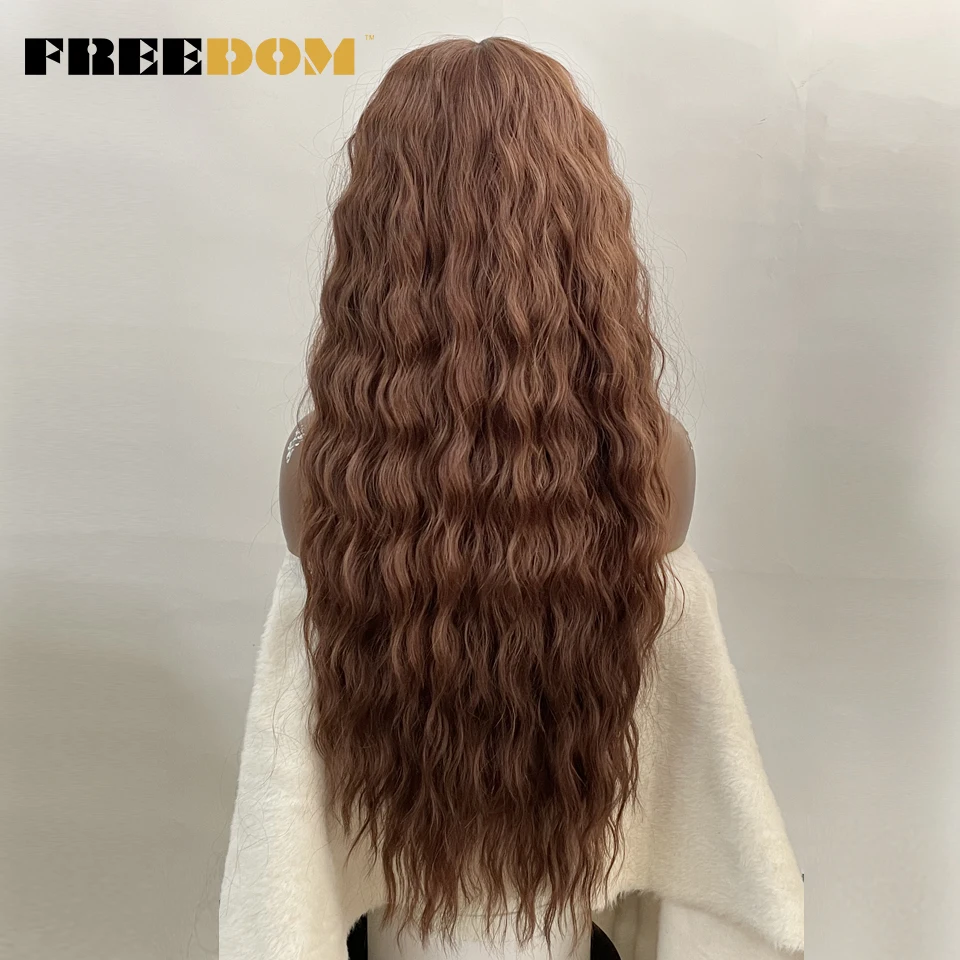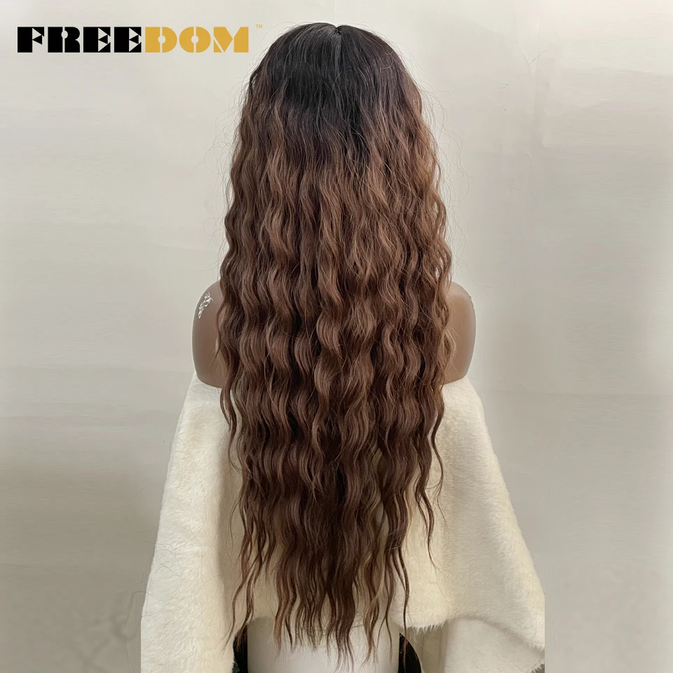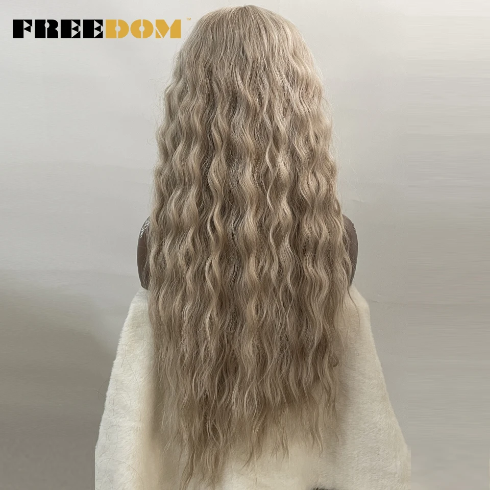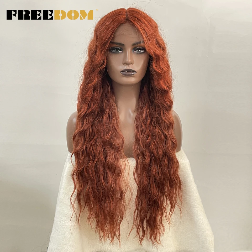 FREEDOM Synthetic Lace Wig Long Deep Wavy Ombre Blonde Ginger Lace Wigs For Black Women Heat Resistant Cosplay Wigs