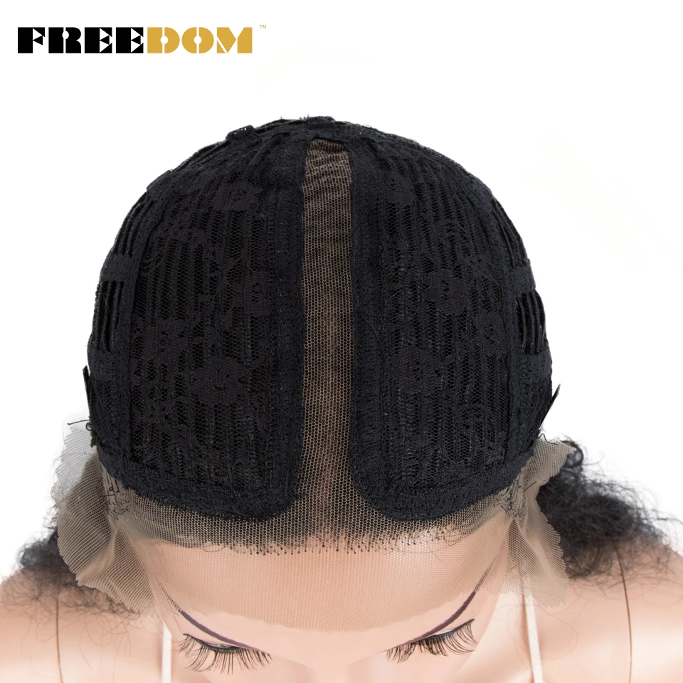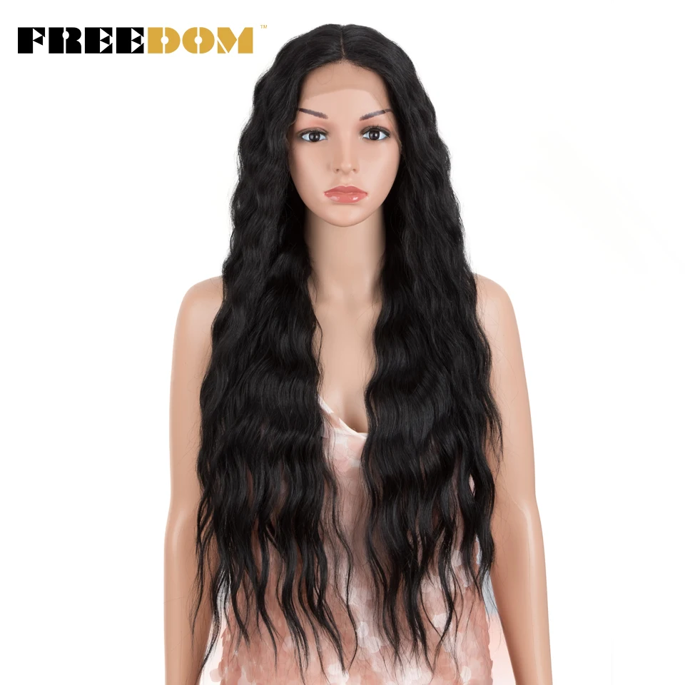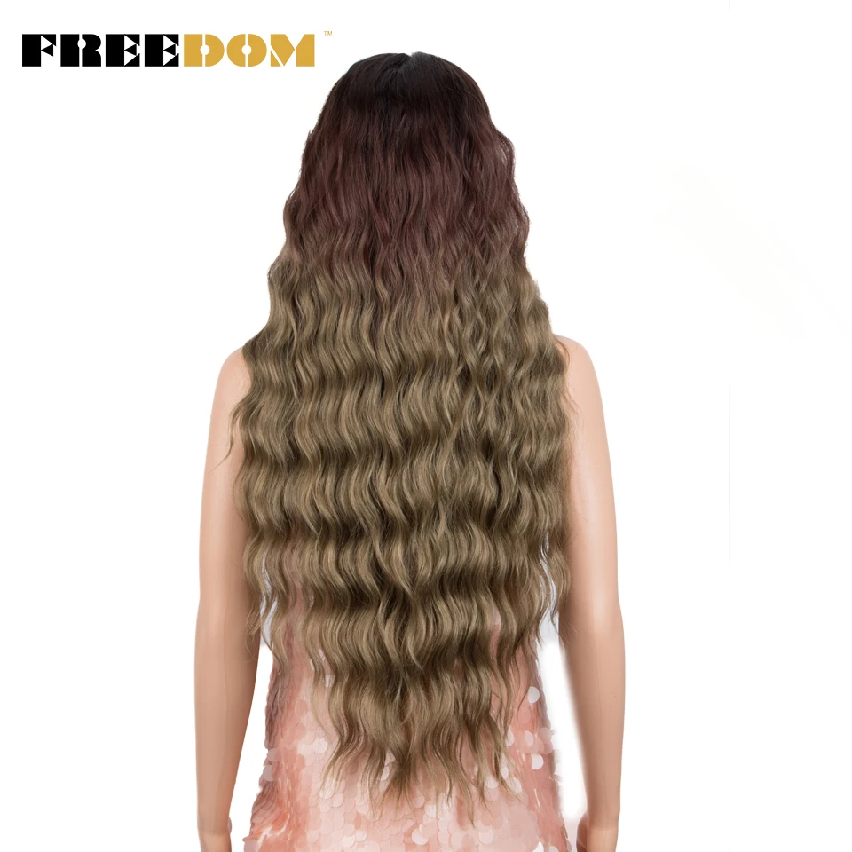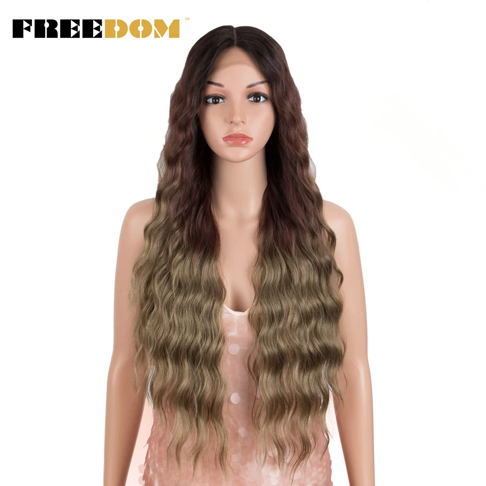 FREEDOM Synthetic Lace Wig Long Deep Wavy Ombre Blonde High Temperature Wigs Synthetic Wigs For Black Women Cosplay Wigs