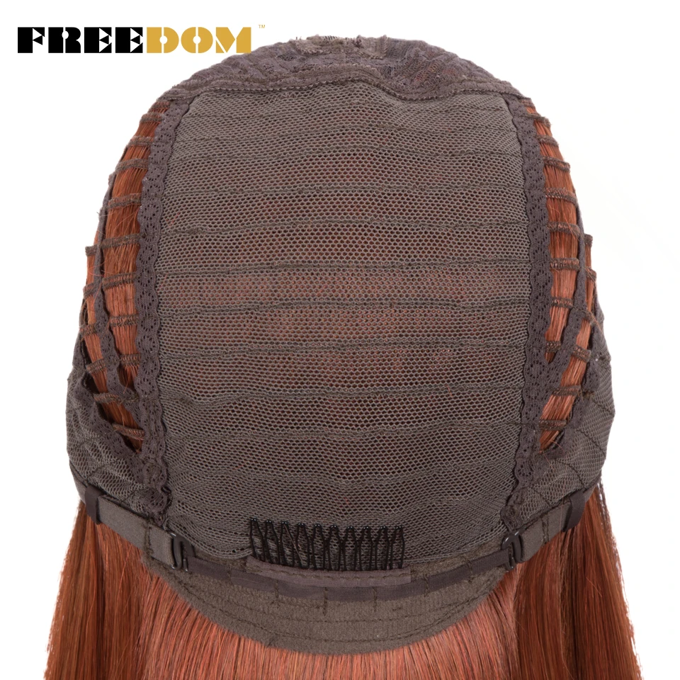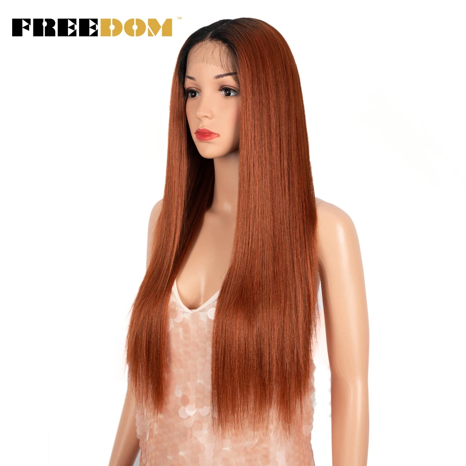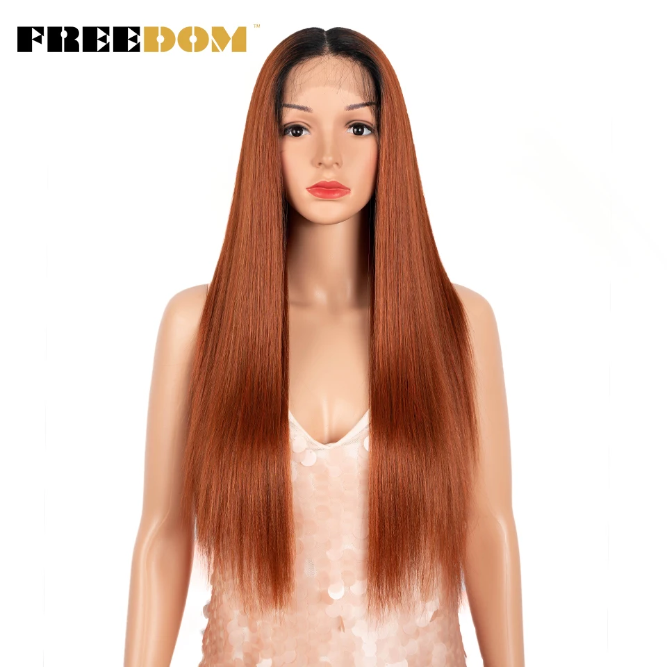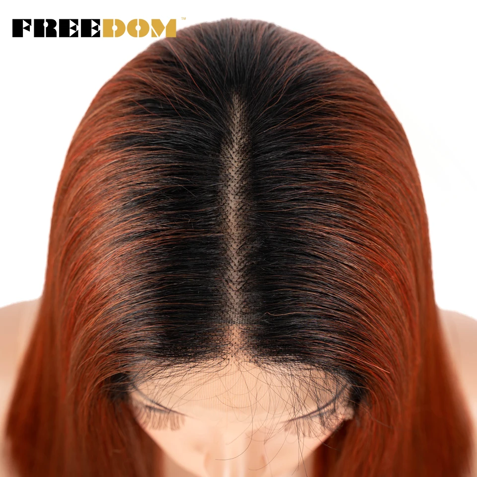 FREEDOM Synthetic Lace Wig Long Straight Lace Front Wigs Soft 99J Ombre Red Blonde Orange Ginger Wigs For Women Cosplay Wigs