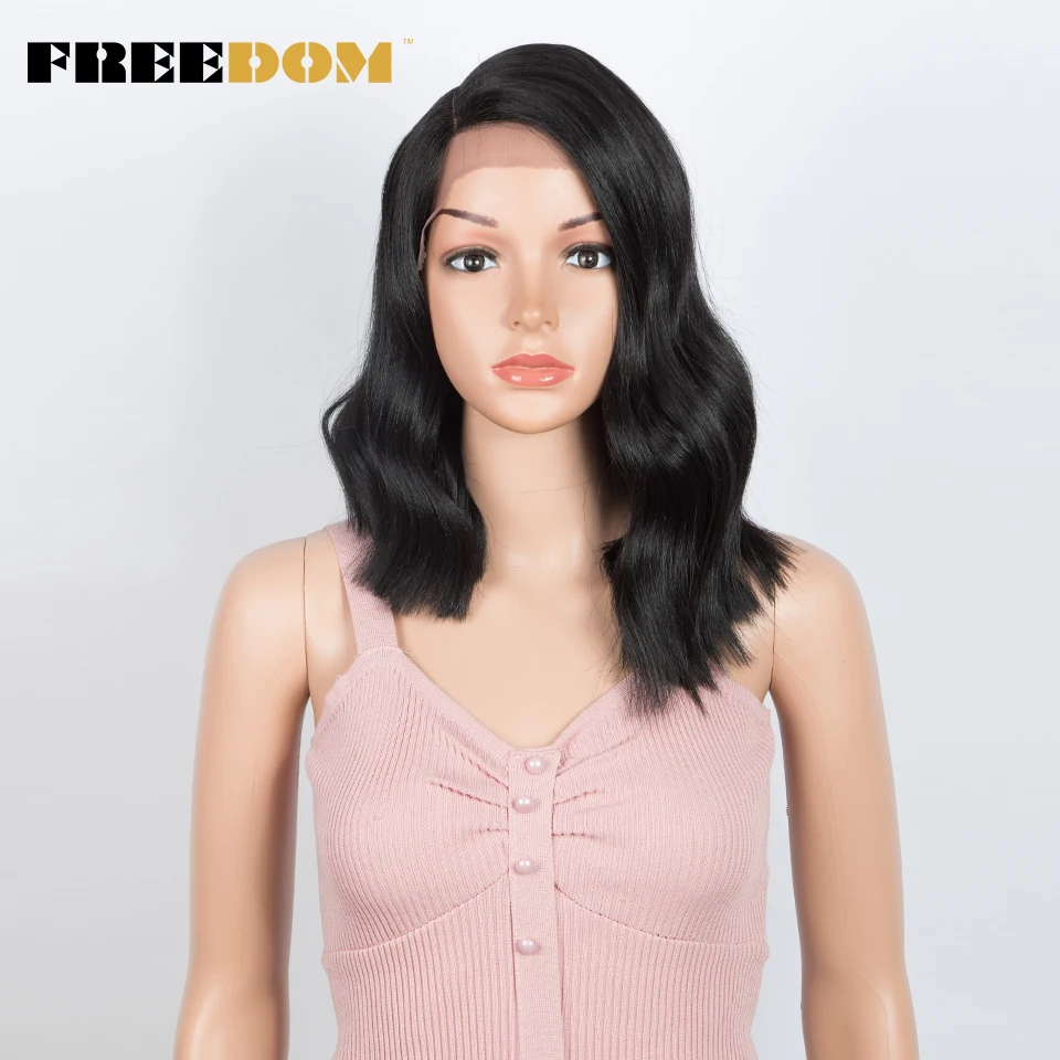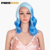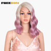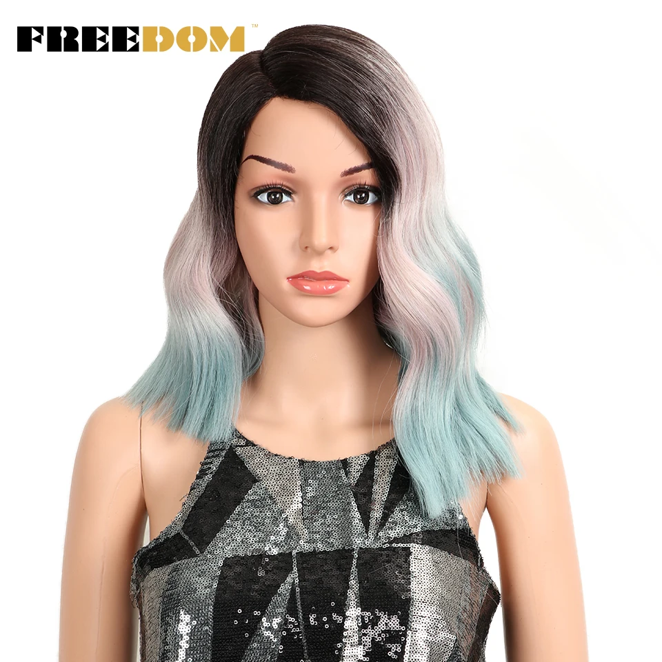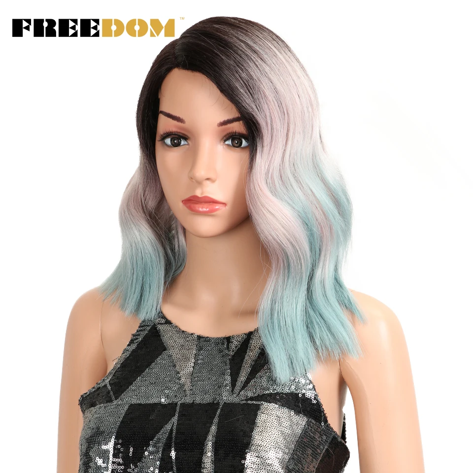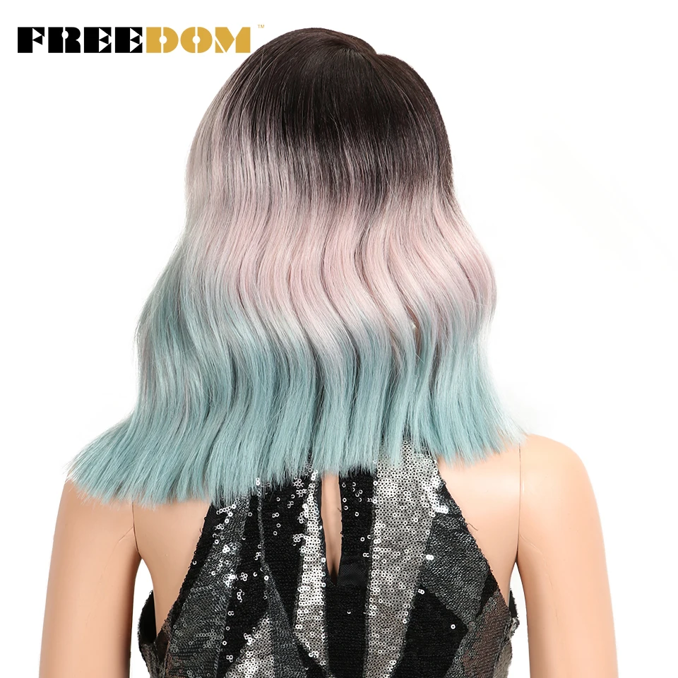 FREEDOM Synthetic Lace Wig Ombre Pink Green Wavy Side Part High Temperature Fiber Short Bob Wigs For Black Women Cosplay Wig
