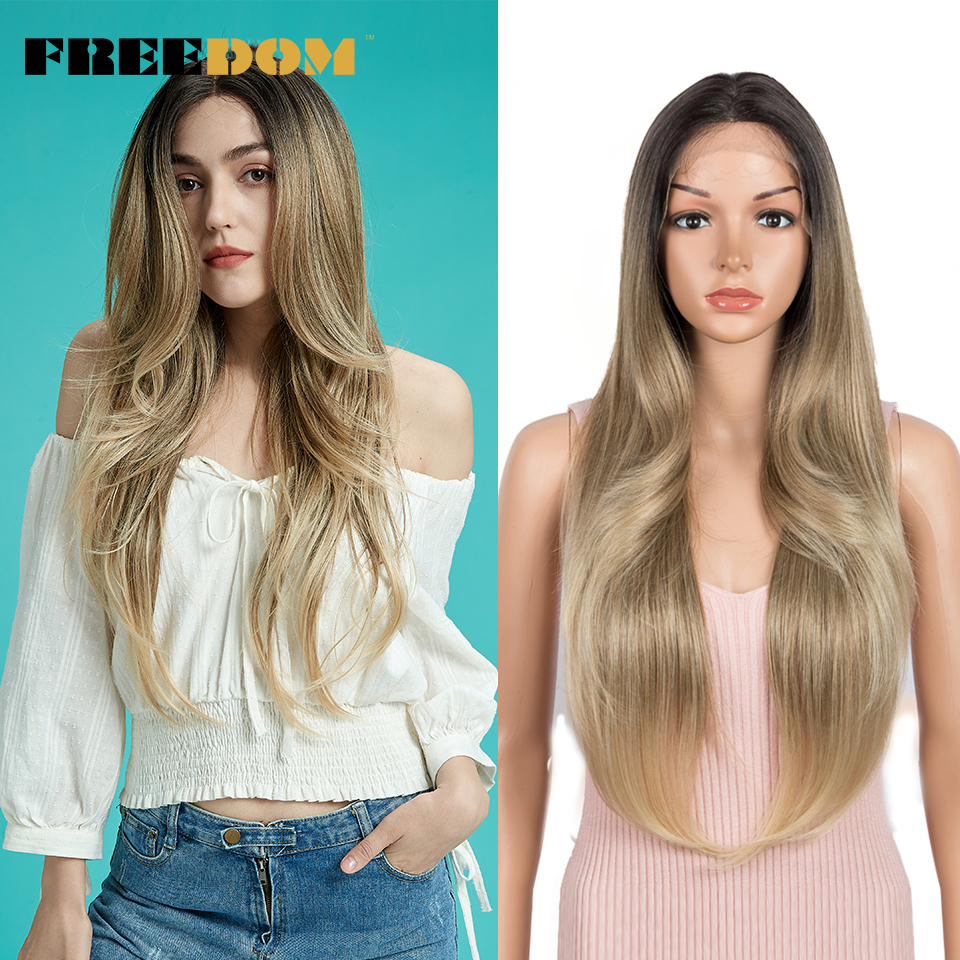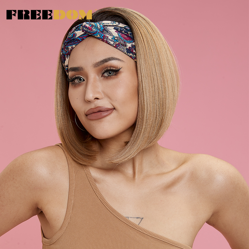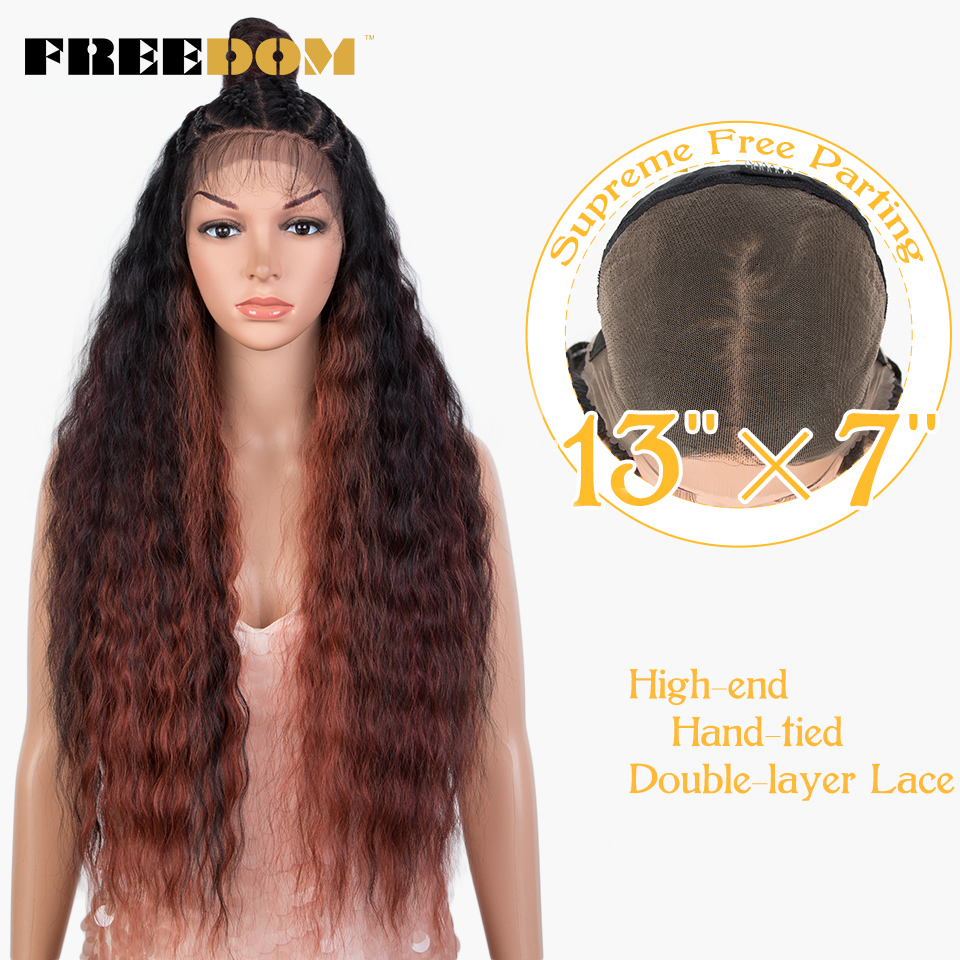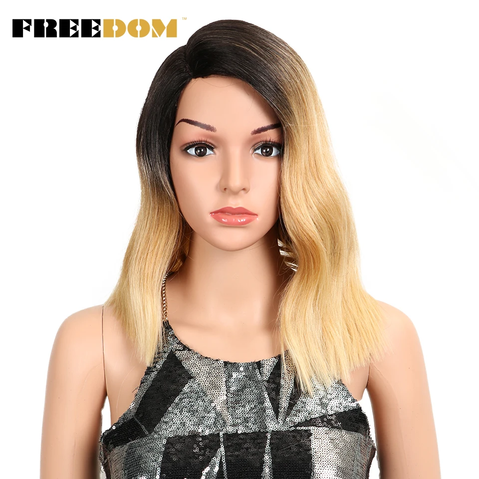 FREEDOM Synthetic Lace Wig Ombre Pink Green Wavy Side Part High Temperature Fiber Short Bob Wigs For Black Women Cosplay Wig