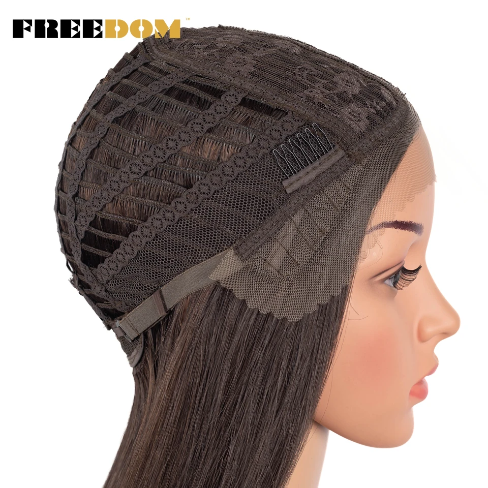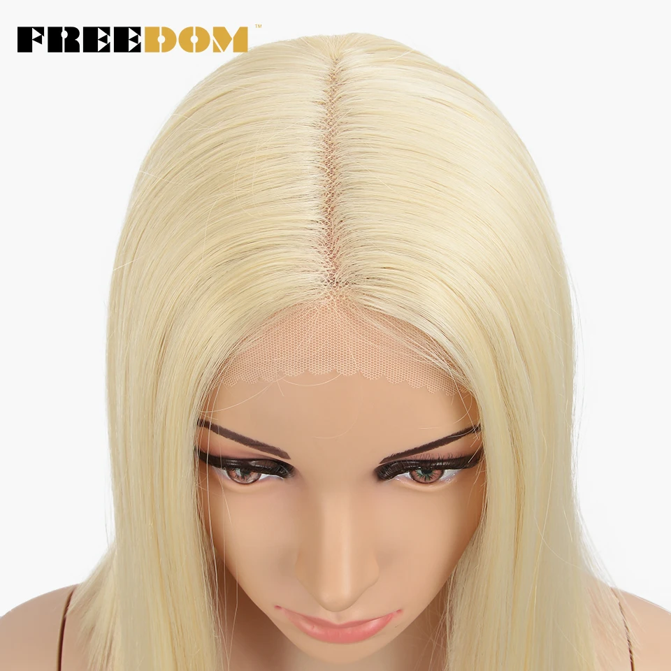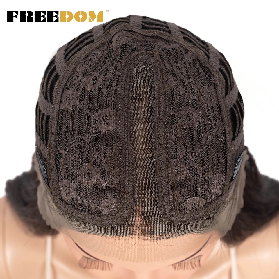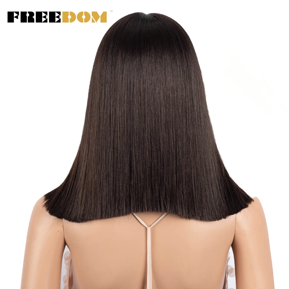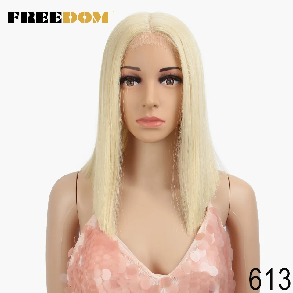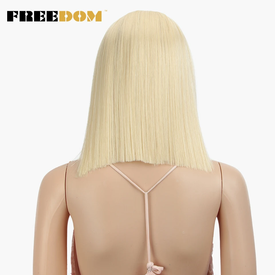 FREEDOM Synthetic Lace Wig Short Bob Straight 14 Inch Middle Part Wigs Blue Pink White Ombre Color Cosplay Wigs For Black Women