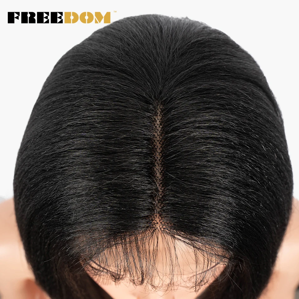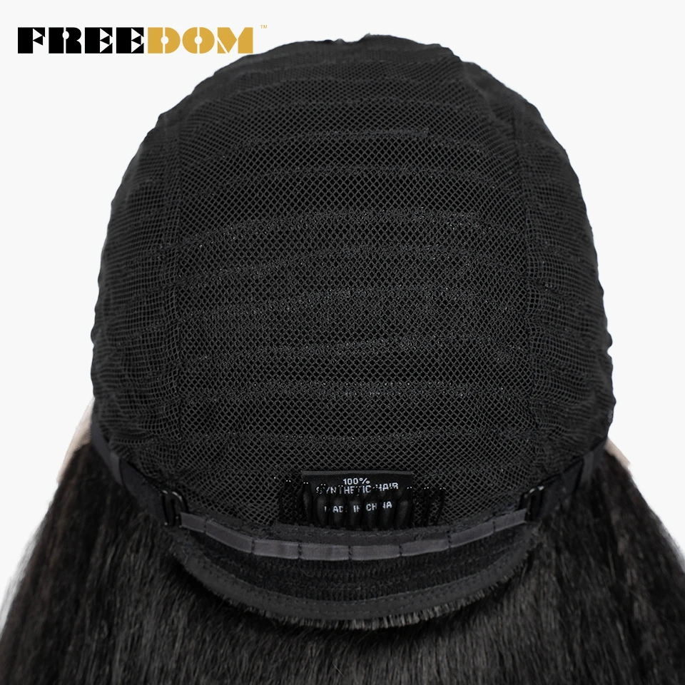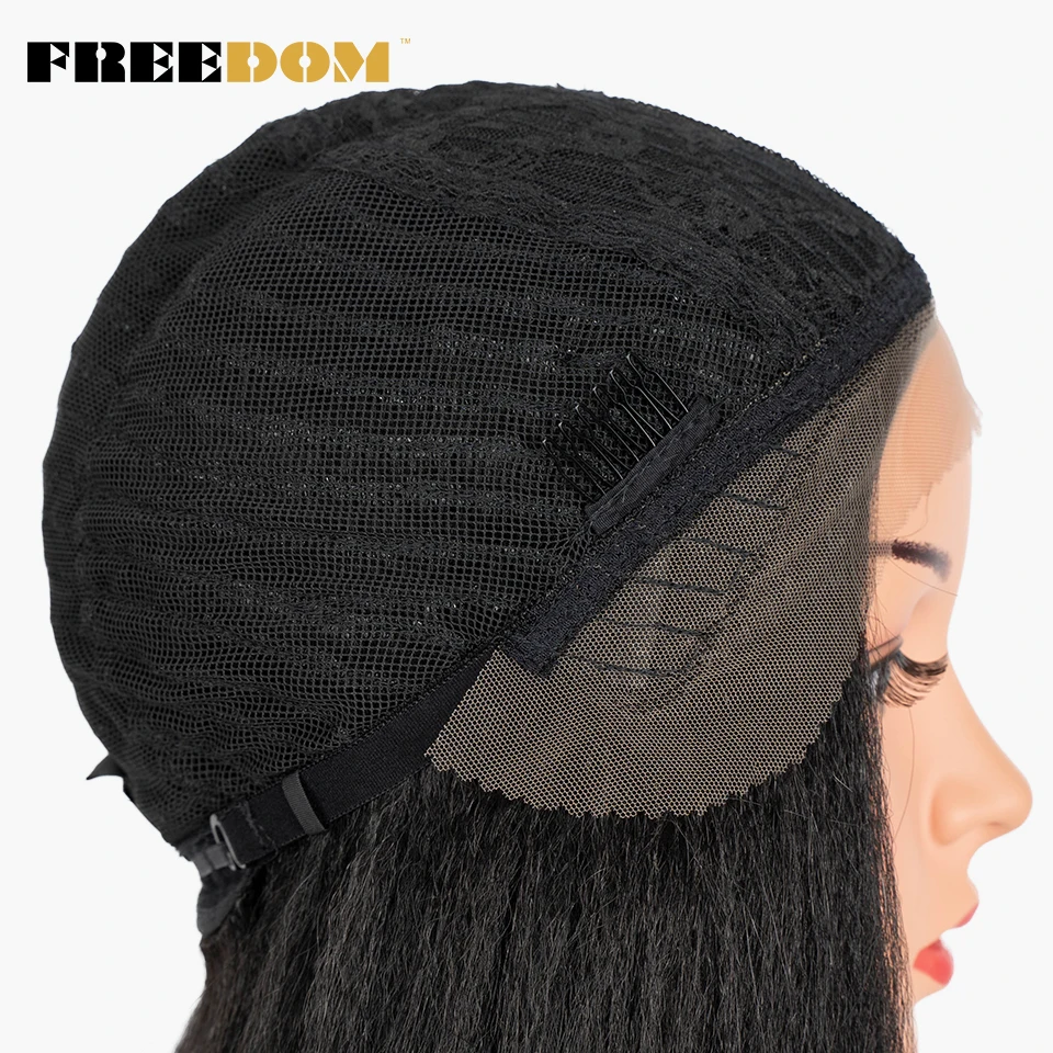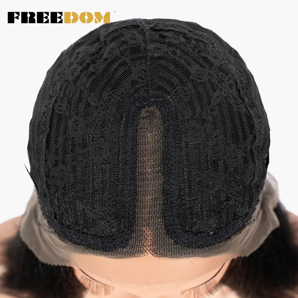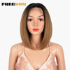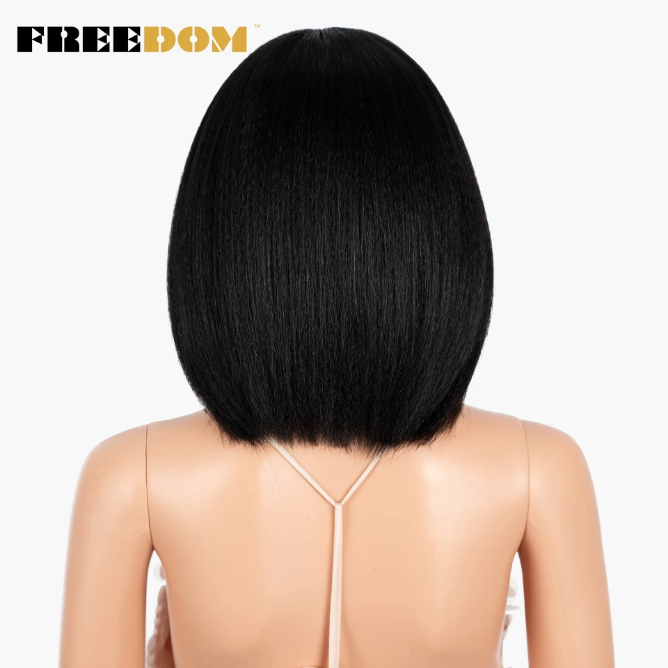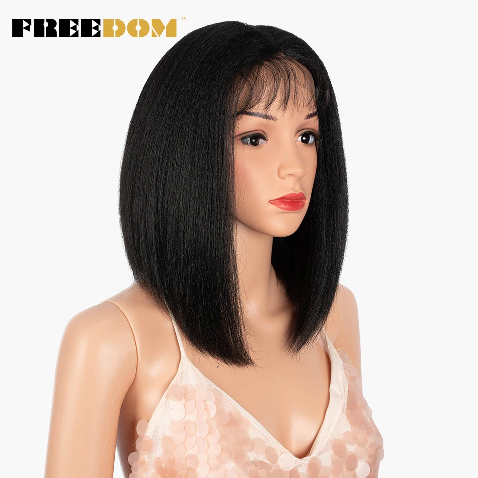 FREEDOM Synthetic Lace Wig Yaki Straight Short Bob Wigs Ombre Brown Red Middle Part Lace Wigs Cosplay Wigs For Black Women