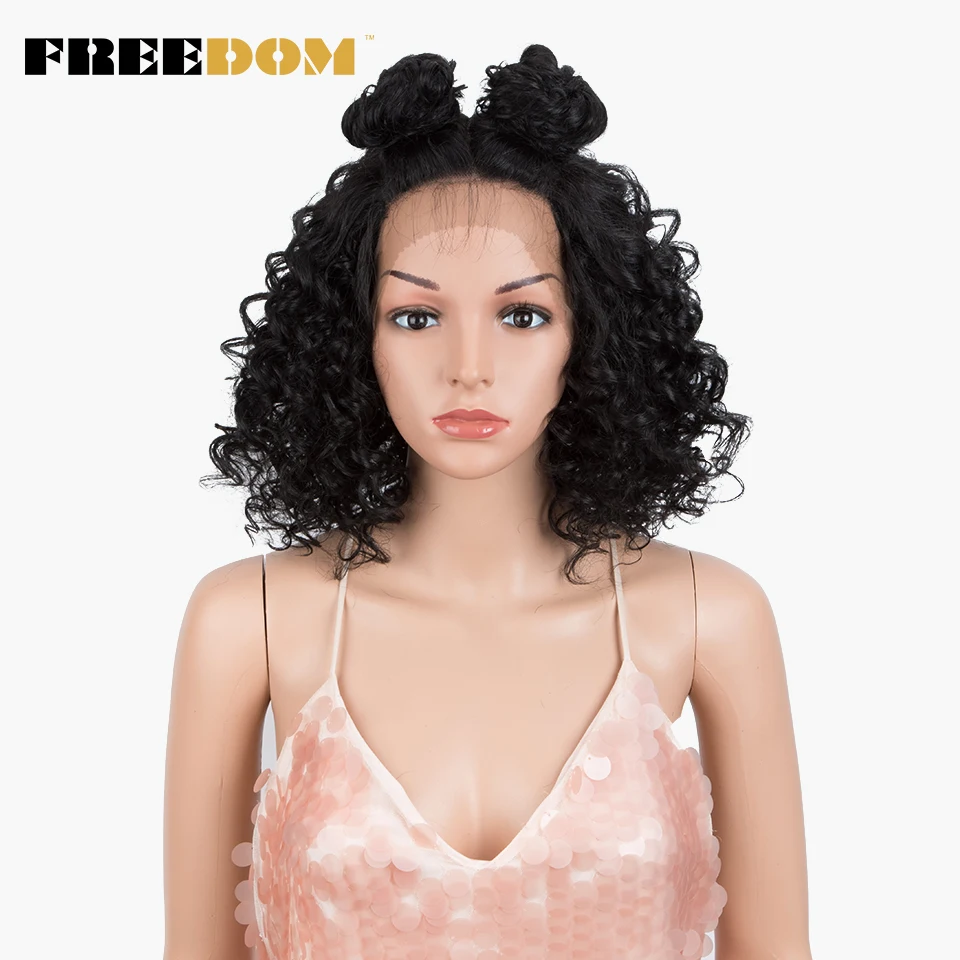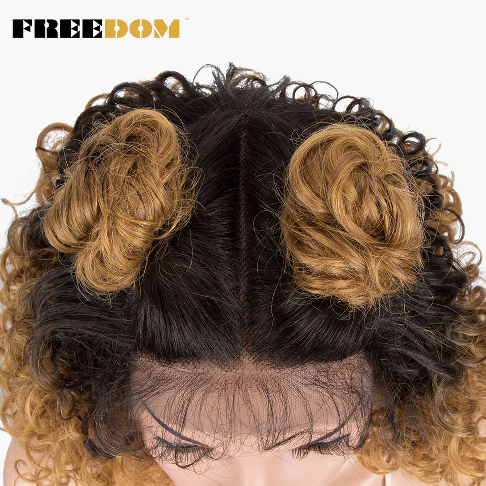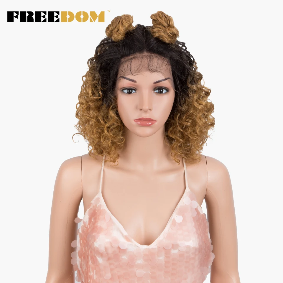 FREEDOM Synthetic Lace Wigs Curly Short Bob Cosplay Wig 14 Inch Synthetic Ombre Wigs For Black Women Synthetic Lace Front Wig