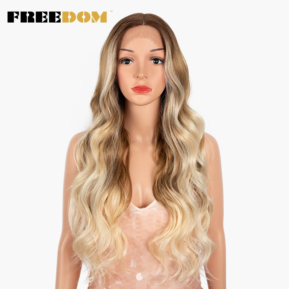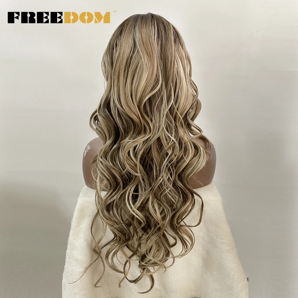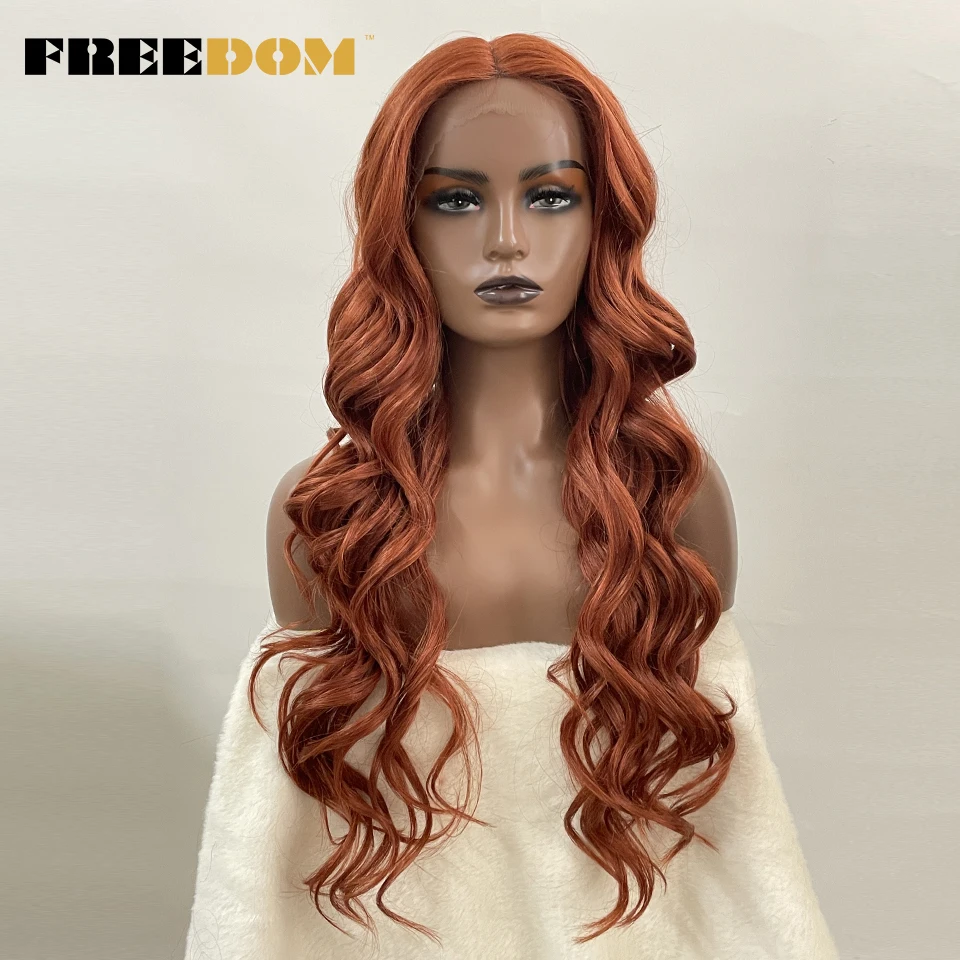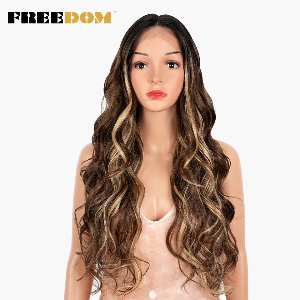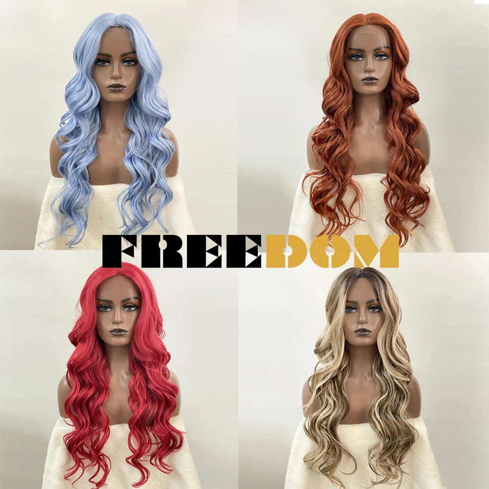 FREEDOM Synthetic Lace Wigs For Black Women Highlight Orange Ginger Blue Red T Part Lace Wig Ombre Brown Long Wavy Cosplay Wigs